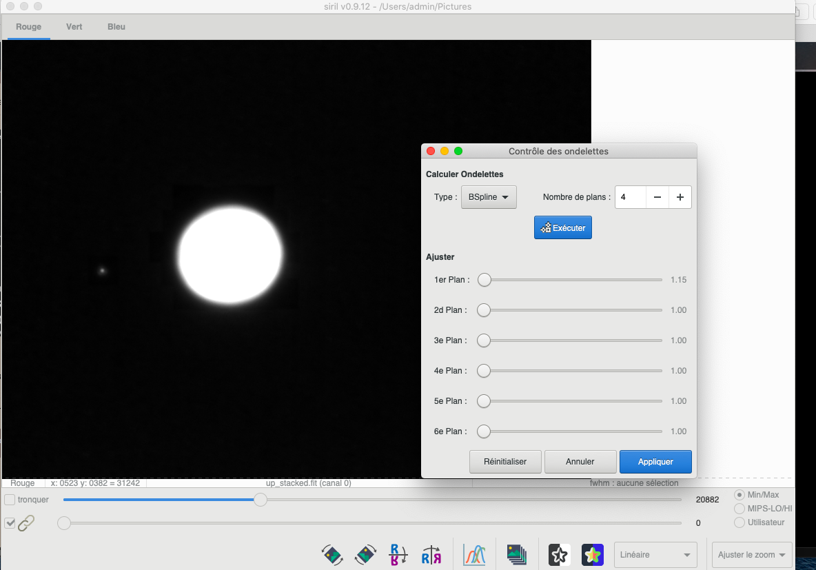 Drase Posté 11 juillet 2020 Posté 11 juillet 2020 Bonjour, J'ai un petit problème lors de la transformation rondelettes avec Siril depuis quelques temps, alors qu'avant ca fonctionnait niquel. Quand j'essaye de transformer, le disque planétaire est cramé de suite, peu importe le plan de transformation et peu importe la valeur, même avec des valeurs inférieures à celle de départ, et peu importe la méthode (linéaire ou BSpline). Quelqu'un aurait une idée du souci svp ?