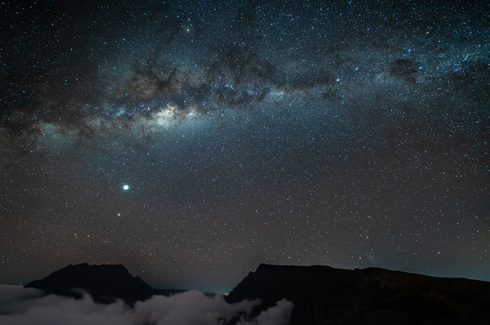 Oliv974 Posté 16 juillet 2020 Posté 16 juillet 2020 Salut à tous de La Réunion, Premier test de ma Star adventurer mini le 14/07, avec le coeur galactique autour du Scorpion. Pas facile la mise en station sur l'octant dans l'hémisphère sud, nous on a pas la polaire 😉 Mise en station sur une constellation invisible, vachement pratique... Photo prise à 2200 m d'altitude au Maïdo, pour ceux qui connaissent La Réunion. Nikon D750, samyang 35mm F1,4 fermé à 2,8, 3200 ISO, une seule pose de 120 sec. Traitement sous LR, puis PS pour retirer les aberrations chromatique, et Topaz Denoise pour le bruit. Pour un tout premier essai, je suis très satisfait du résultat. Merci la qualité du ciel de La Réunion 🤗 Je rajoute la voie lactée au 14mm F2.8 samyang, lever de Saturne et Jupiter sur le Piton des neiges (3070m). 90 sec, 3200 iso. Je suis preneur de toutes vos remarques ! (Je reposte ici mon message mis aussi dans le forum Astrophotographie, il doit y avoir une manip pour faire autrement je suppose...) Olivier 2