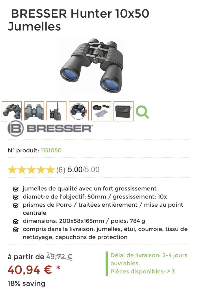 Un tout petit retour sur les jumelles Bresser Hunter 10x50 que je viens de recevoir.