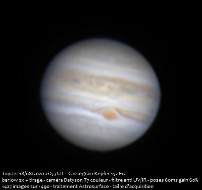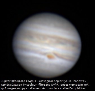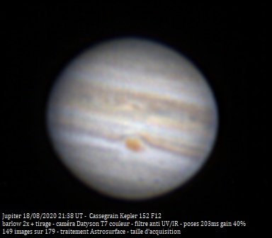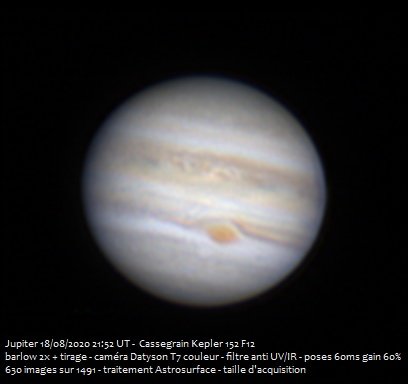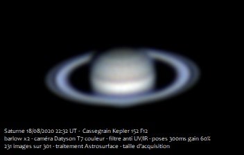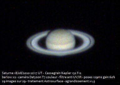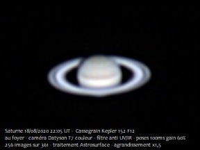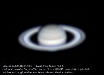 Jupiter et Saturne du 18 août 2020 au Cassegrain 6 pouces