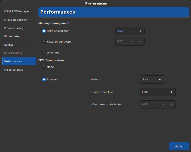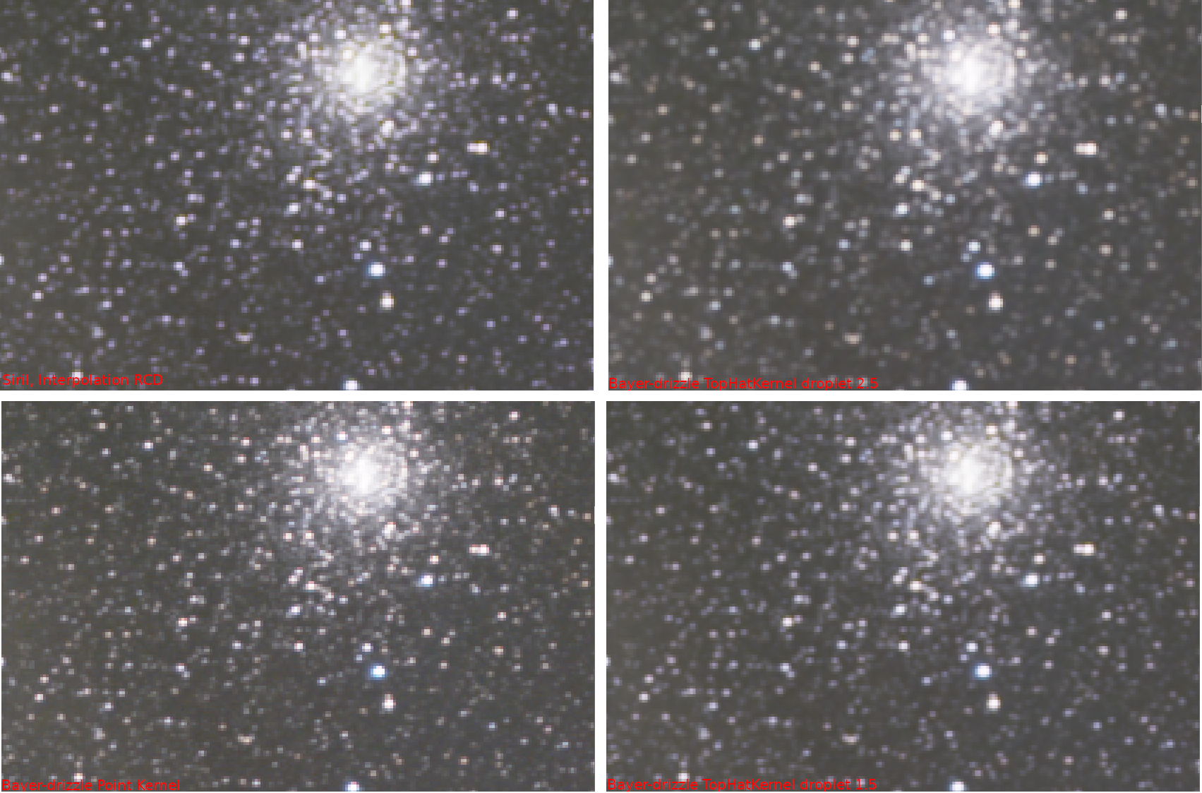 lock042 Posté 30 août 2020 Posté 30 août 2020 (modifié) Bonjour, ayant souvent des questions à ce sujet, j'ai eu envie de faire un "rapide" résumé des principales nouveautés de Siril. Gardez à l'esprit que ce petit texte est une ébauche, que je peux l'améliorer et que la version finale sera disponible sur notre site. Quoi de neuf dans Siril 0.99.4 ? 32bits natif Le changement le plus important et surtout le plus attendu est le passage au 32 bits flottant natif pour tous les calculs. Le format FITS par défaut est dorénavant de type TFLOAT. Les fichiers ont donc une taille deux fois grandes qu’avant et la mémoire utilisée est également deux fois plus importante. Cependant, là ou on aurait pu s’attendre à des temps de calculs deux fois plus long, un gros travail d’optimisation a été effectué dans tout le code. Pour comparaison, sur une machine avec un cœur I9, 32Go de RAM DDR4 (une bonne machine), un empilement de 47 images prend 5min 24s avec la version 0.9.12 alors que seulement 2min01s sont nécessaires pour empiler les images 32bits sous la 0.99.4. Nouveaux algorithmes de dématriçage. Avec l’introduction du 32bits flottant dans Siril, la nécessité de revoir complètement nos algorithmes de dématriçage s’est très vite imposée. En effet, ceux-ci travaillaient uniquement en 16bits. 9 nouveaux algorithmes de dématriçage ont donc été implémenté dans Siril. Bien sûr, un utilisateur aura rarement besoin de changer celui-ci et donc, le choix de l’algorithme par défaut s’est avéré crucial. Notre choix s’est porté sur l’algorithme RCD : algorithme très performant pour les objets circulaires, telles les étoiles. Il permet d’obtenir des images de qualité identique à d’autres logiciels qui utilisent la technique du Bayer Drizzle. Il remplace l’algorithme VNG qui était celui par défaut dans Siril jusqu’à la version 0.9.12. Dans cette illustration (Comparaison Siril / APP) l’algorithme RCD de Siril est comparé à différents résultats de Bayer Drizzle obtenu avec APP sur une centaine d’images. Seul le Bayer-Drizzle Point Kernel semble avoir une résolution nettement supérieure, cependant, ceci se fait au prix d’une introduction importante de bruit qui n’est généralement pas souhaitable et bien sûr d’un temps de calcul supérieur. Suppression des artefacts des capteurs X-TRANS Ces capteurs d’appareil photo Fuji sont connus pour avoir des artefacts lorsque l’on prend des images Bias ou Darks. En effet, un carré apparaît dans l’image et ce dernier se retrouve sur les images pré-traitées. Un algorithme a donc été introduit afin de supprimer cet artefact. Soit automatiquement pendant le prétraitement, soit en ligne de commande avant de pré-traiter. Image avant / après d'un master dark d'un Fuji X-T20 Compression des FITS Il est maintenant possible de travailler avec des FITS compressés. La compression peut être avec ou sans perte. Bien que la première option peut faire peur à l’astrophotographe exigent, il est très difficile (voir impossible ?) de constater une différence entre une image non compressée et une compressée avec des paramètres raisonnables. Le temps de prétraitement peut cependant être augmenté de façon plus ou moins grande en fonction des algorithmes choisis. Extraction de couche Ha, Ha/OIII Ces nouvelles fonctions permettent d’extraire directement des couches Halpha ou Halpha/OIII à partir des images CFA, non dématricées. Ceci est très pratique lorsqu’on utilise un filtre Ha, ou un tout nouveau Duo Narrowband avec une camera couleur (ou un APN). Image CFA prétraitée / Images Ha extraite à partir de ce fichier. Fonction Linear Match Avant de combiner des images prises avec différents filtres dans l’outil de composition RVB, il faut généralement faire en sorte que celles-ci soient cohérentes entre elles. Sans cela, l’image finale possède un fort déséquilibre qu’il est difficile de traiter. C’est le rôle de ce nouvel outil qui prend une image référence en paramètre et transforme l’image chargée pour la faire « correspondre » à la référence. Extraction de fond de ciel appliquée à une séquence L’extraction de gradient est quelque chose qui doit pratiquement être fait à tous les coups. Que cela soit à cause de la pollution lumineuse, de la Lune ou de n’importe quelle autre source de lumière, l’image empilée comporte un gradient qu’il faut enlever. Ce gradient est la somme des gradients de chaque image unitaire. Or, la monture bouge, l’intensité et la position de l’éclairage urbain changent dans le temps, etc … De fait, le gradient final est une somme complexe de différents gradients et par conséquent il peut être assez difficile de l’enlever. Pour remédier à ce problème, Siril permet de supprimer le gradient automatiquement sur chaque image pré-traitée (à faire avant alignement). Une nouvelle séquence est ainsi créée et l’image empilée sera beaucoup plus simple à traiter, même si un retrait de gradient peut encore être nécessaire. Transformation de l’histogramme appliquée à une séquence De la même façon, il est possible d’appliquer la transformation de l’histogramme à toute la séquence. Ici aussi, un seul bouton pour le faire. Nouveau format de fichier : Séquence FITS en fichier unique Le format FITS est un format de fichier très utilisé en astrophotographie. Développé par et pour la NASA, il a su prendre sa place au sein de la communauté d’astrophotographe amateur. Ce que l’on sait moins cependant, c’est qu’il est possible d’enregistrer plusieurs images au sein d’un seul fichier FITS : un peu à la manière d’un film. Siril permet dorénavant de travailler sur des fichiers FITS contenant une séquence. Pour cela il suffit de sélectionner Séquence FITS lors de la conversion, ou lors du pré-traitement. Dans les scripts, il s’agit de l’option -fitseq. Nouvel o