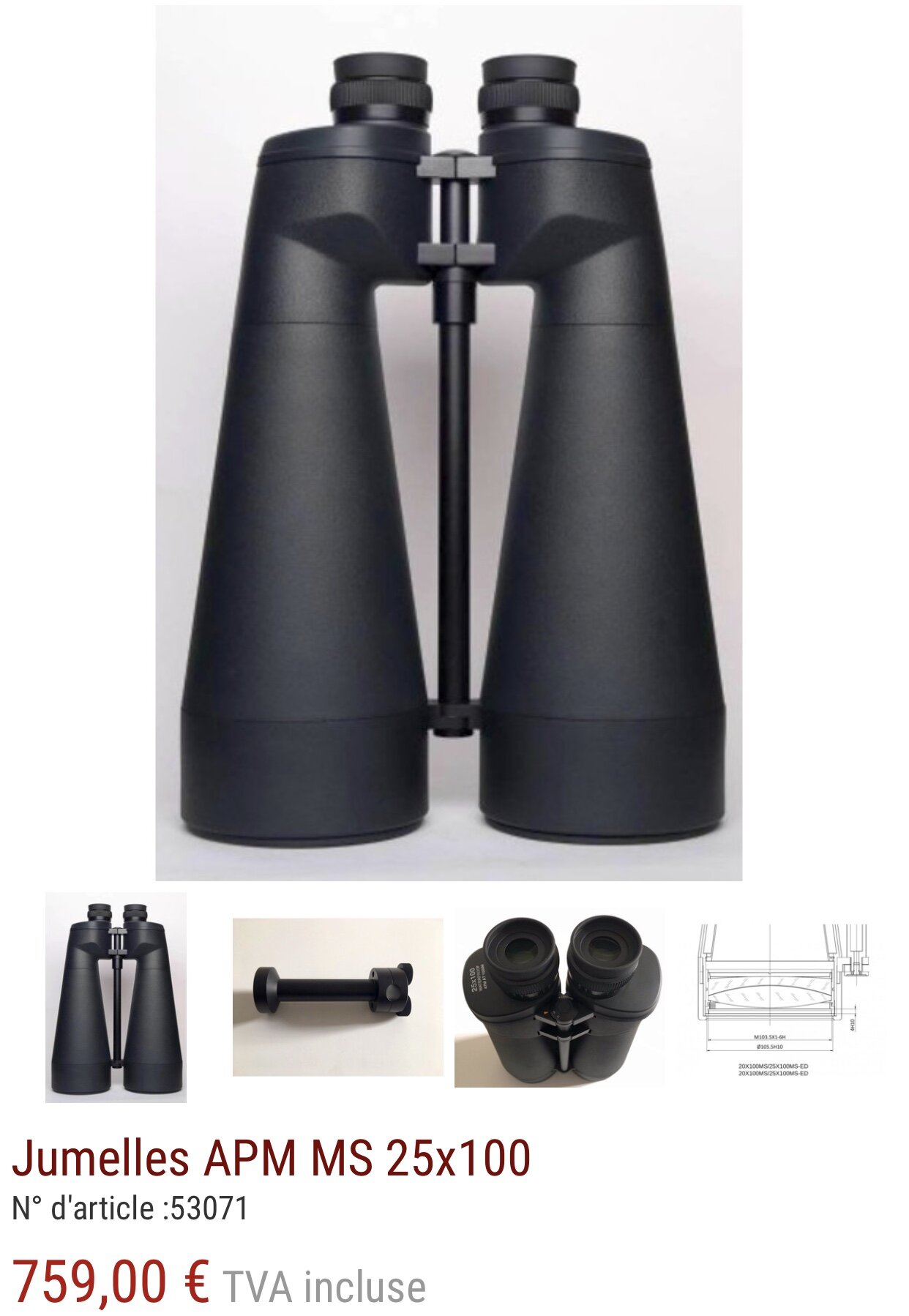 Oui quoique. Les omegon argus, vendues par Astroshop and co et aussi par APM sont au même prix (750€) chez les deux et le prix est identique aux APM 25x100.