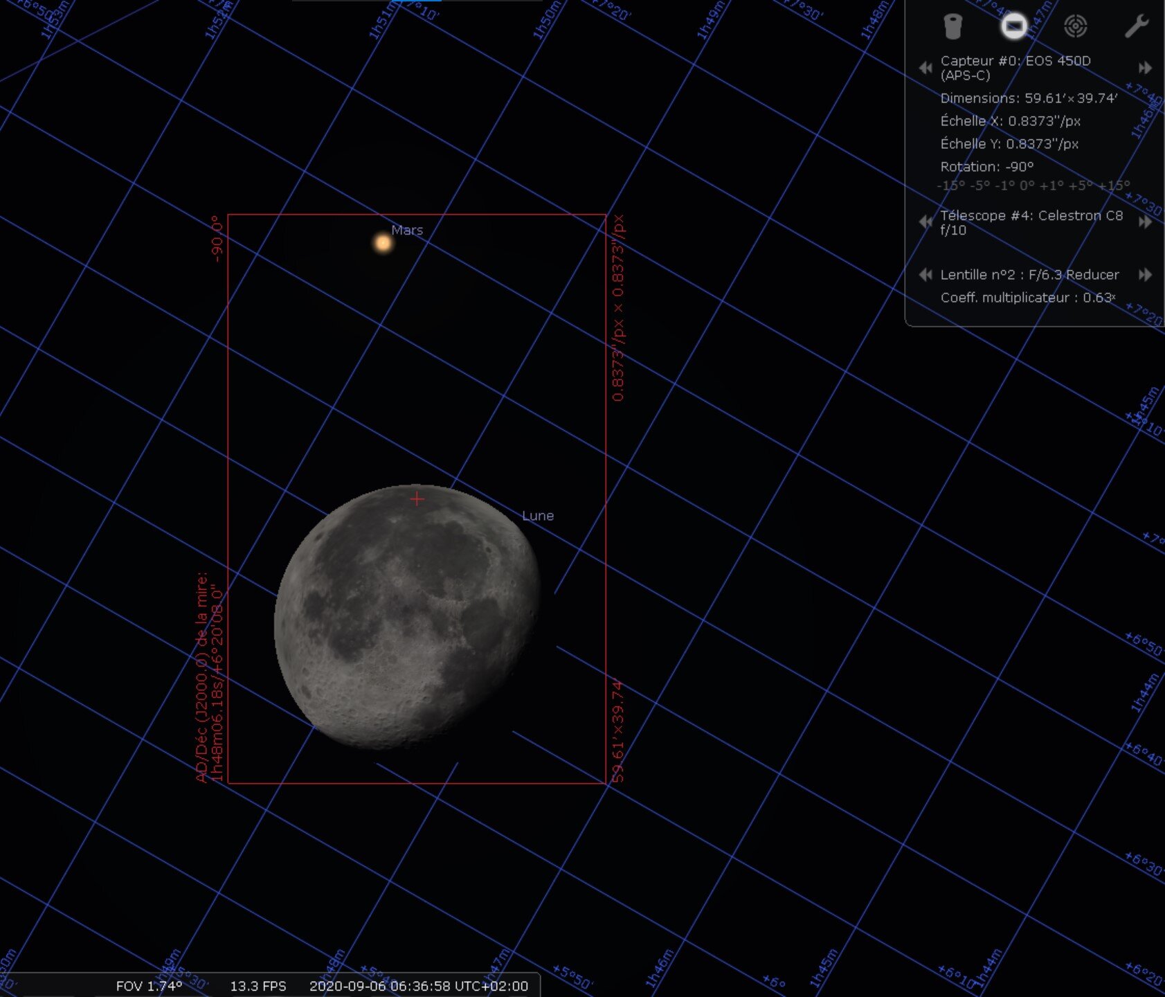 Dimanche 06/09 matin, rapprochement mars lune