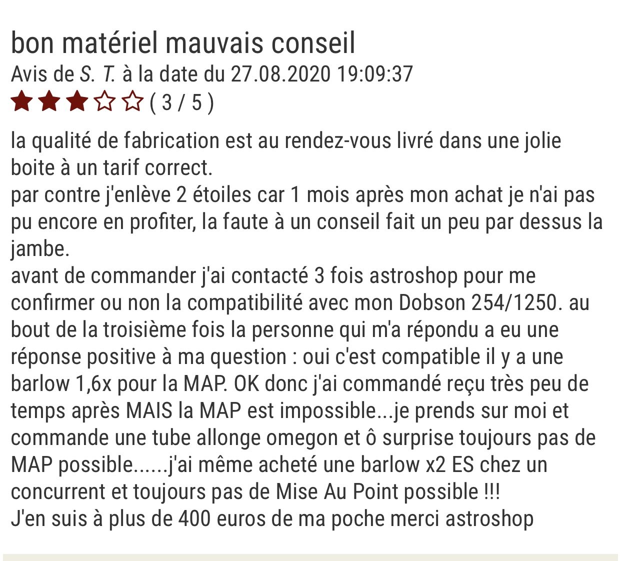 Concernant Astroshop, j'ai remarqué que dans la description de certains matériels "l'avis écrit de l'expert maison" est en contradiction avec la présentation du produit, comme par exemple pour des jumelles présentée comme des spéciale astronomie où finalement on vous conseille d'acheter un autre modèle.
