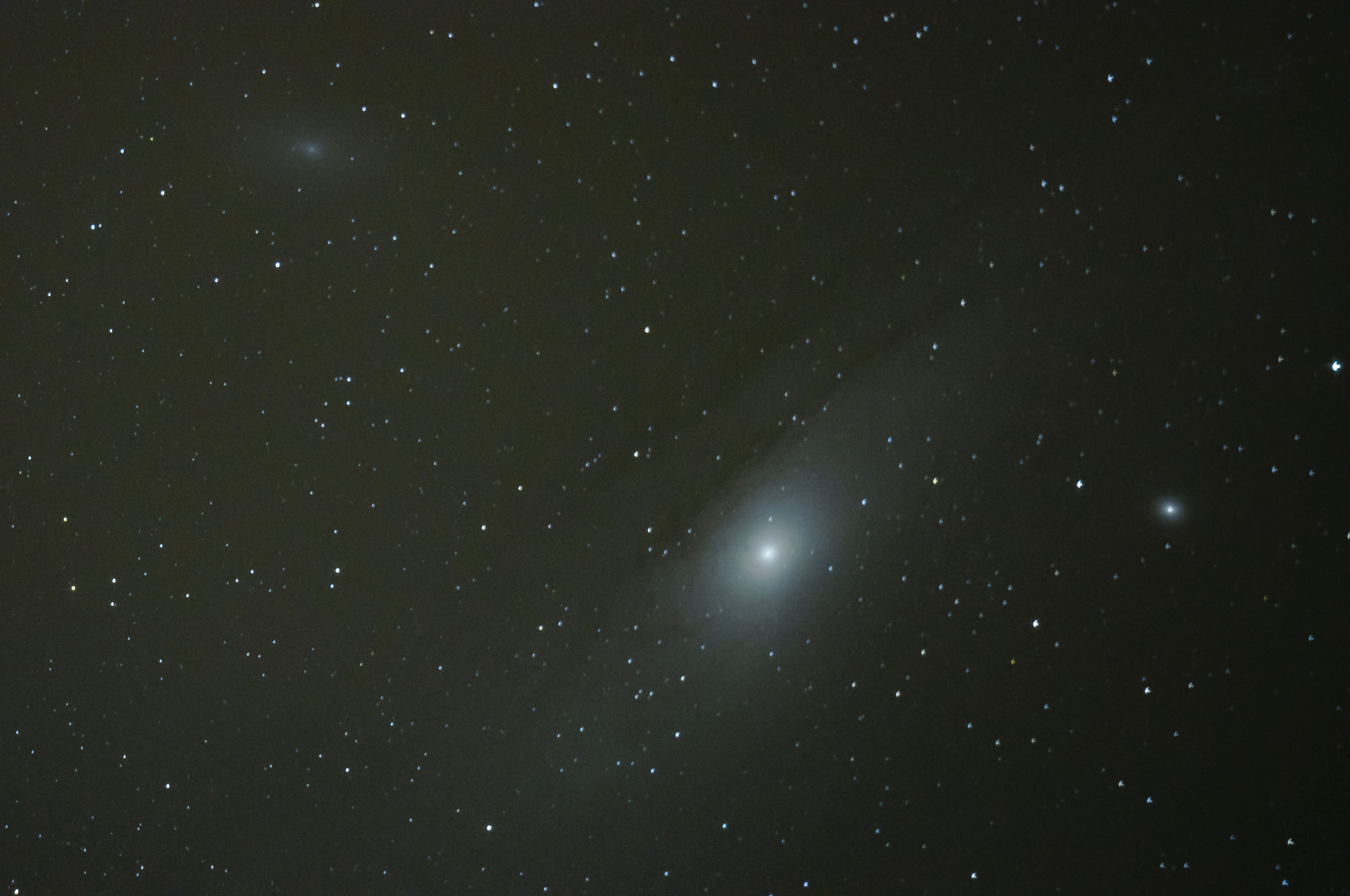 Ci-joint une photo de la galaxie d’andromède (pose de 60secondes à Iso 1000) en format NEF et puis une jpg avec un peu de modif pour faire ressortir tout ça. Comme vous pouvez le voir les étoiles ne sont pas ponctuelles!
