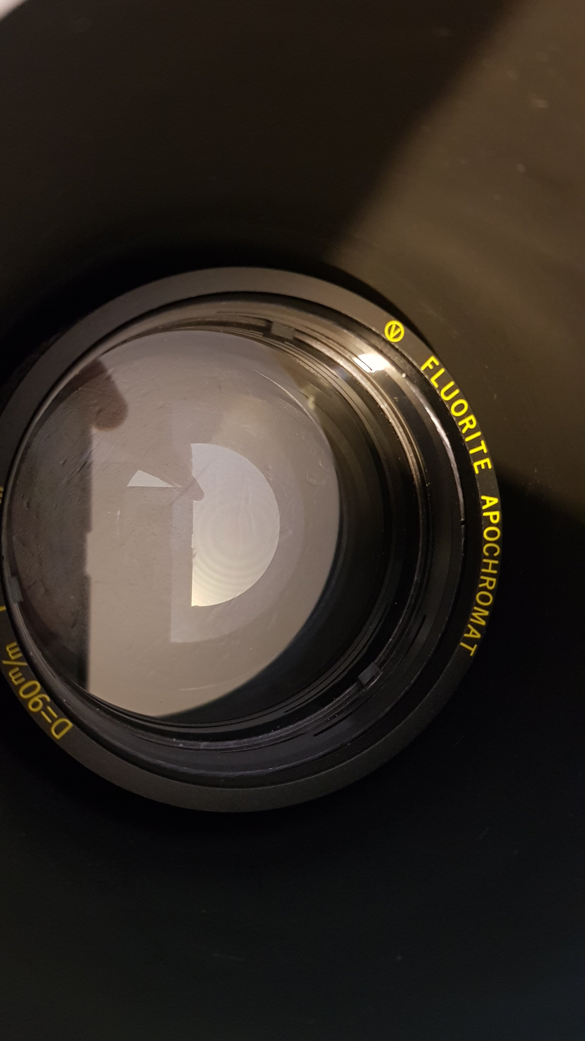 Jorris Posté 28 septembre 2020 Posté 28 septembre 2020 Mrs dames Voici la dernière, badgé Perl Vixen 90 810 Fluorite Journée de travail écourté aujourd'hui, tant mieux, ça m'a laissé le temps de nettoyer la bête, et de faire quelques photos. Je ne l'ais pas testé en terrestre, je ne me gâche pas la surprise, je veux mettre mon œil dedans pour la première fois, directement sur la lune, ou une planète. Le ciel est un peu dégagé aujourd'hui, peut être ce soir donc. Je ne connais pas du tout ce type de verre, a ce que j'en ais lu, ça marche plutôt fort. Présentation Le tube sur sa Super Polaris, je sais pas si a la base c'était pas vendu avec une DX 2 1