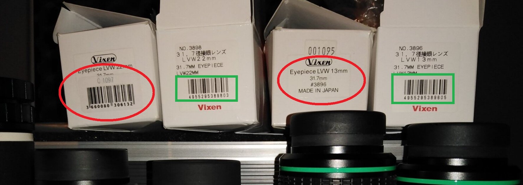 2 Oculaires Vixen LVW 22, pas de la même taille!!!