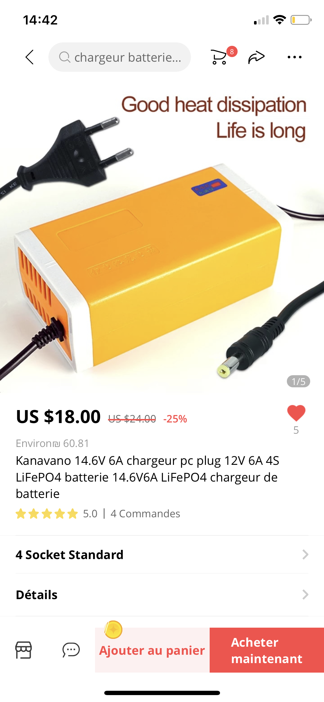 Il faut faire très attention aux batteries lithium (batteries de VTT, trottinette... ) vendu sur Aliexpress une 20000mAh affichée a plus de chance d'être une 5000mAh réelle. Pour les lifepo4, ça a l'air bien plus sérieux.
