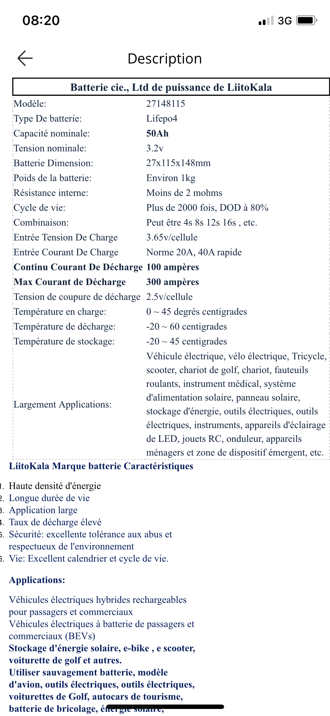 oui,le voltage est bon mais pas l’ampérage. ce sont des 40Ah.ils ne sont pas honnêtes. si tu veux des vraies 50Ah prends ceux-ci pour a peine un peu plus chers : https://fr.aliexpress.com/item/4001140813223.html?spm=a2g0o.productlist.0.0.276d4219SB0vOr&algo_pvid=89b1e1a7-0baa-452b-86b1-f1e09837ac38&algo_expid=89b1e1a7-0baa-452b-86b1-f1e09837ac38-42&btsid=0b0a0ae216023991917584713ea99f&ws_ab_test=searchweb0_0,searchweb201602_,searchweb201603_