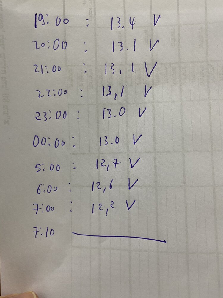 ce soir ,j'ai branché mon vieux pc portable DELL inspiron 17r 7720 intel I7. j'ai mis une video en boucle pour voir ce qu'elle a dans le ventre. le pc fonctionne en 19v avec un transfo 12v sur allume cigare. au démarrage, elle affichait 13.4v ,au bout de 5H ,elle affiche 13.3v ! confirmé au multimètre. je pense que la conso tourne autour de 3Ah. wait and see !