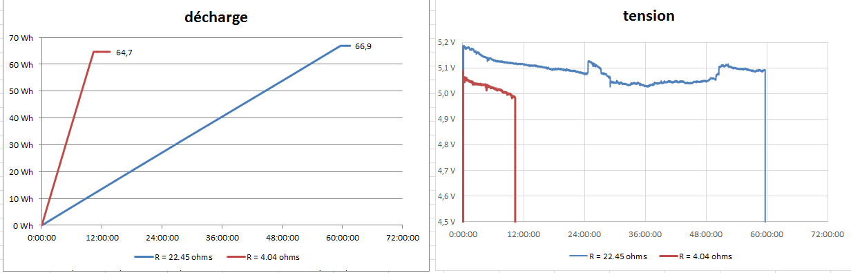 On voit là aussi que la tension de coupure se situe à 2.5V, comme pour les Liitokala.