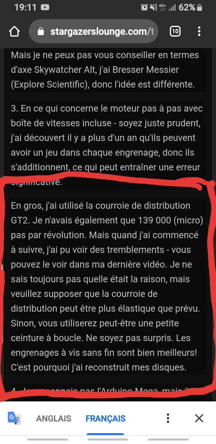 Entrainement pour motorisation Dobson Explorer Scientific Ultra Light Dobsonian 305mm Generation II