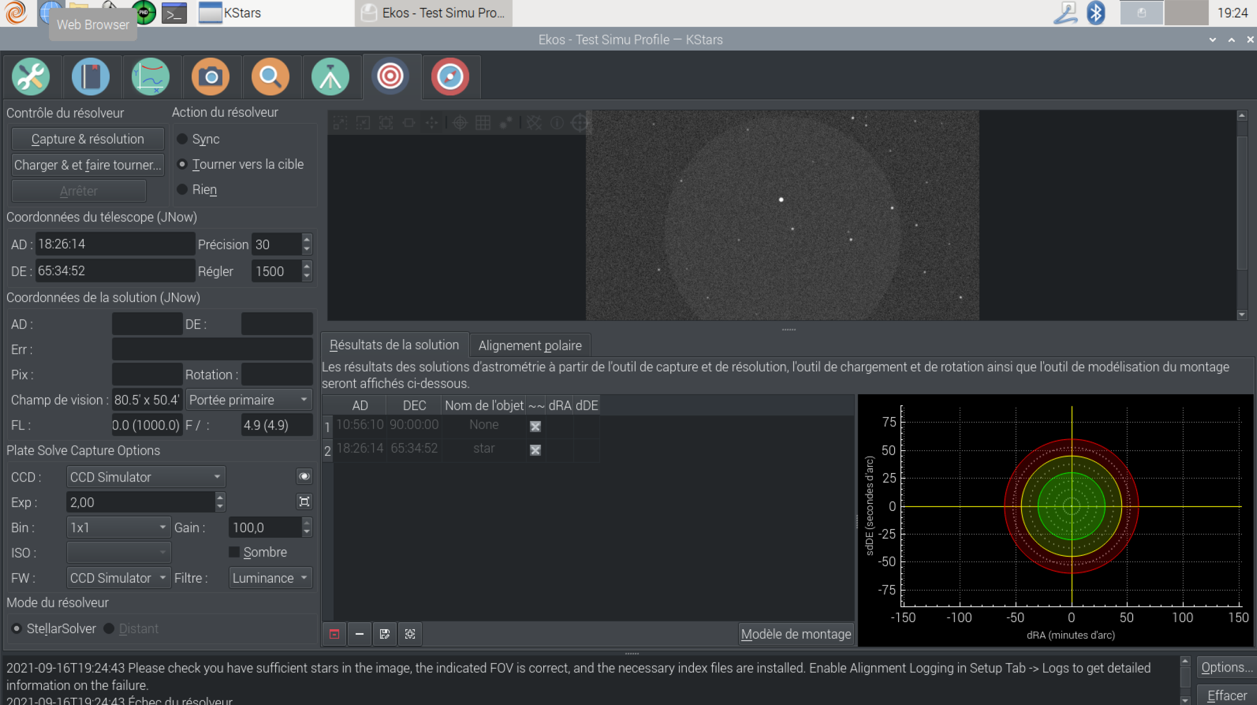 jpv84 Posté 15 septembre 2021 Posté 15 septembre 2021 bonjour tout nouveau sur le sujet j'essaye de faire tourner kstars avec stellarmate pour l'instant qu'avec des simulateurs et par contre impossible d'avoir un nombre suffisant d'étoiles pour pouvoir faire l'astrométrie idem sur capture d'un aperçu ( fond blanc sans étoiles) quelqu'un a t il déjà rencontré ce même soucis et comment l'a t il surmonté merci pour votre aide