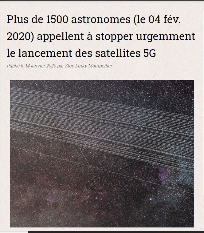 Plus de 1500 astronomes (le 04 fév. 2020) appellent à stopper urgemment le lancement des satellites 5G