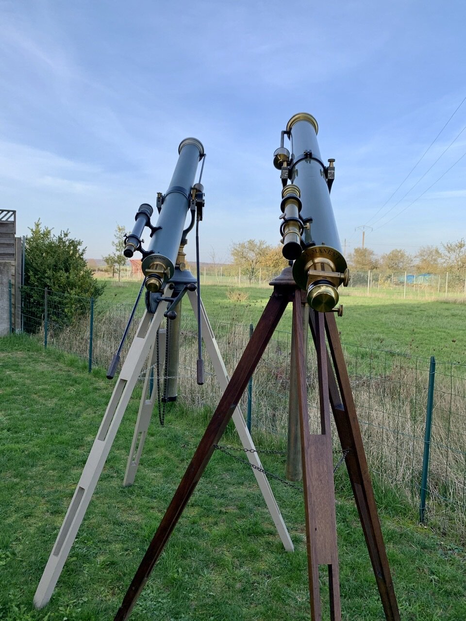 AstroSylv1 Posté 8 novembre 2020 Auteur Posté 8 novembre 2020 Après ces nettoyages, réglages, essais, et des heures à en profiter, je ne pourrai hélas pas garder les deux, je devrai choisir d’en garder une et vendre l’autre... mais que choisir ? Une 95 de 1930 tout en laiton, peu d’accessoires, mais esthétiquement canon, ou une 110mm de 1954 laiton et alu, avec lot d’accessoires, un tout petit moins jolie selon mes goûts ? Dur dur... ça va être un casse-tête !