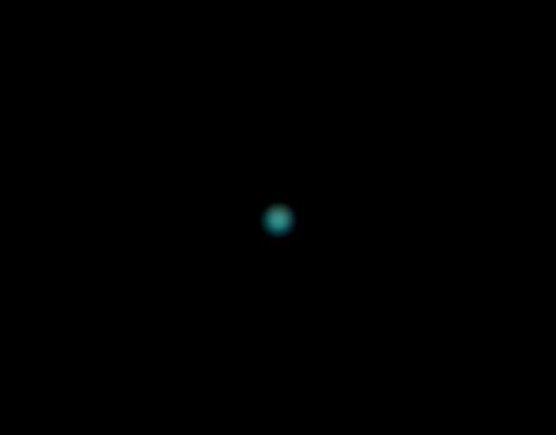 Avec un télescope de 200 mm et au plus fort grossissement on voit Uranus comme un minuscule petit disque bleu-vert,