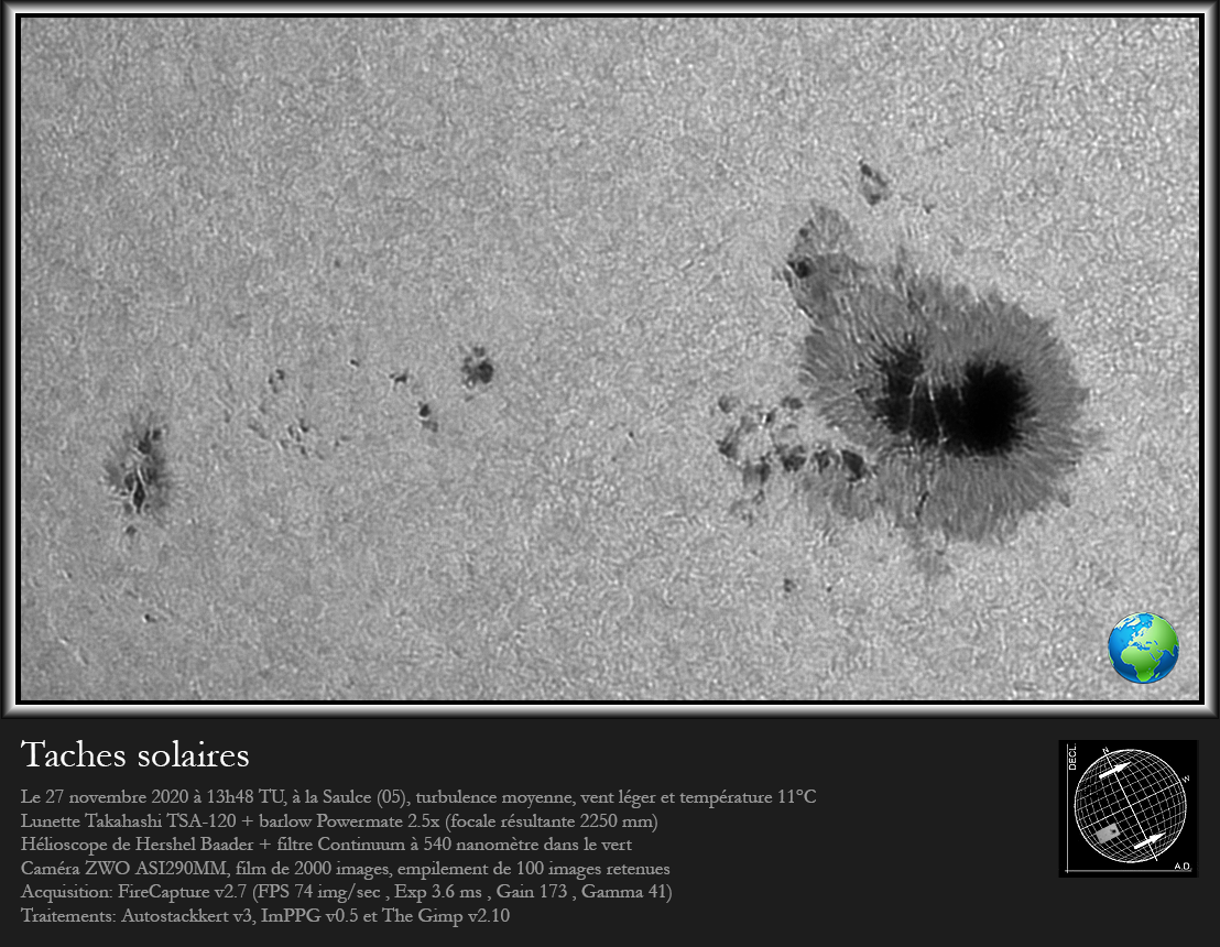 Taches solaire le 27 novembre 2020