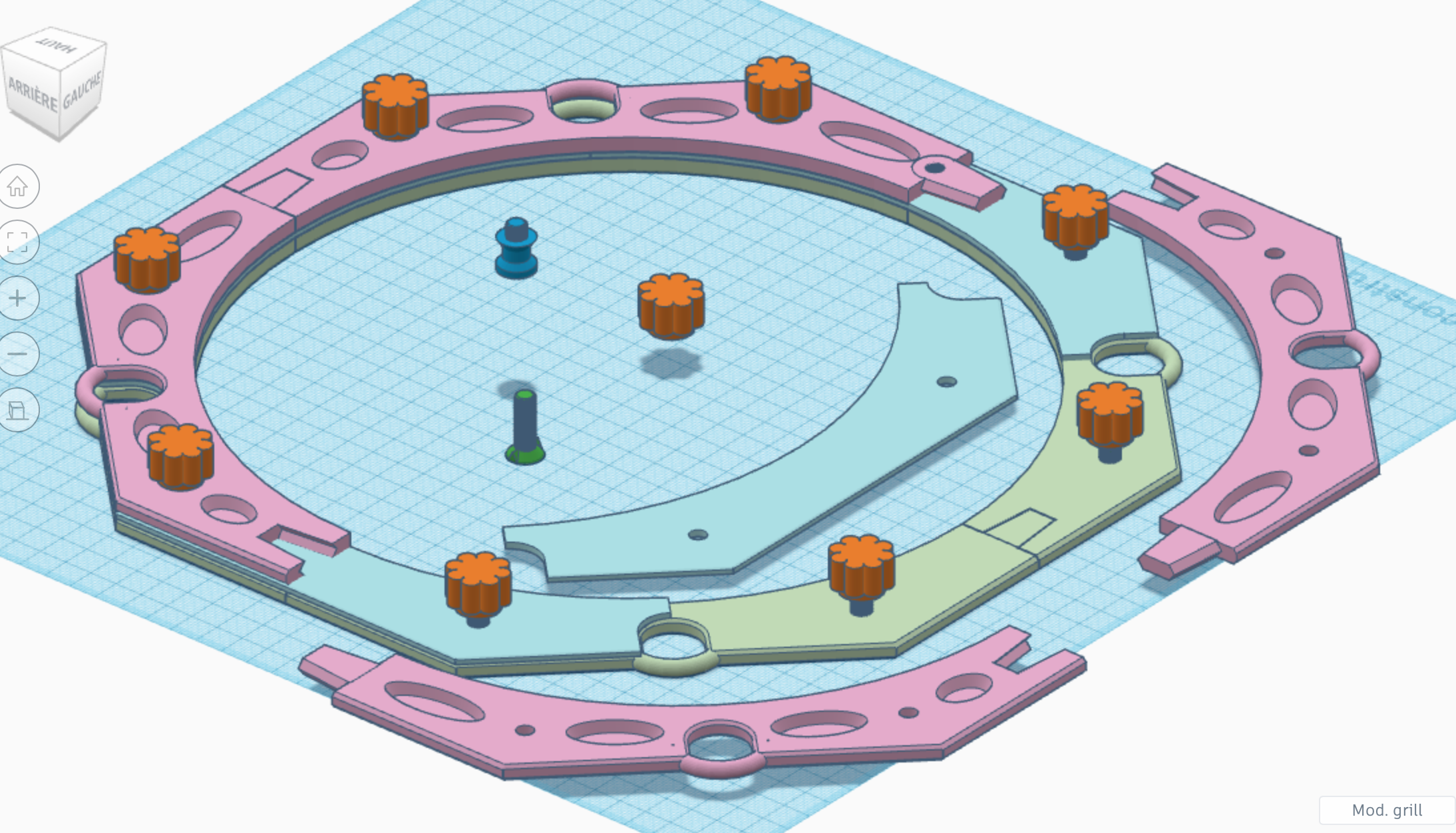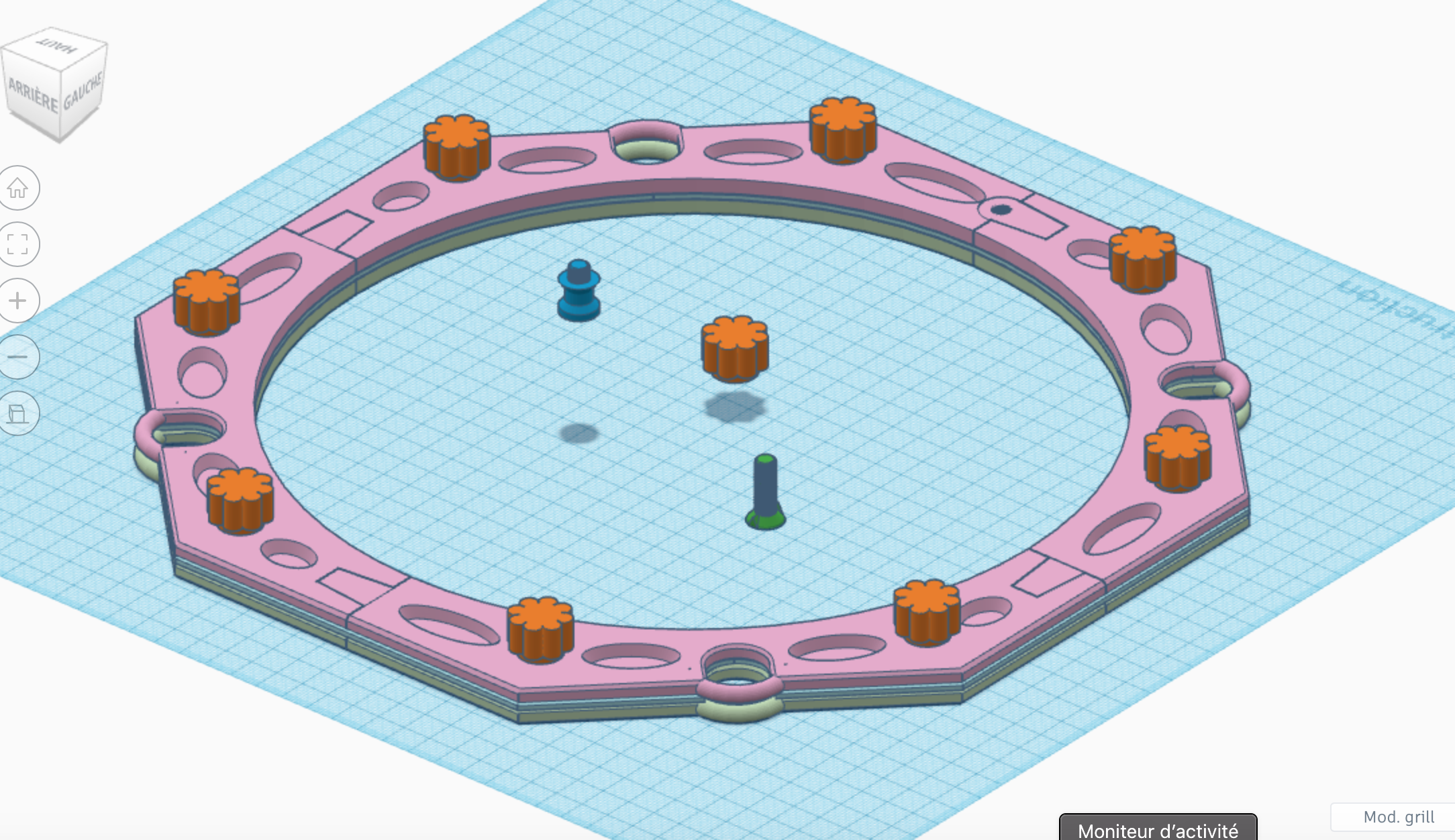 mario_18 Posté 13 décembre 2020 Auteur Posté 13 décembre 2020 il y a 25 minutes, keymlinux a dit : Concernant la taille disponible pour les impressions, la plupart des imprimantes "grand public" a prix abordable ont un volume disponible pour l'impression de 20x20x20cm à 30x30x30cm, cela me semble suffisant. Précision(s): - vu que je ne dispose pas d'un atelier ou d'un garage pour bricoler, le fait que l'imprimante garde un volume contenu était pour moi un critère de choix - on peut imprimer un objet plus gros en plusieurs pièces et les assembler Exemple, je dispose d'une surface d'impression de 25cm par 25cm. Je veux réaliser un filtre solaire pour mon newton 10pouces --> le support du filtre astro solar fera plus de 25cm de diamètre, dans les faits il tiens dans un carré de 32cm de coté, c'est supérieur à la zone d'impression. Donc j'ai réalisé une structure faite de 4 morceaux emboitables (pour avoir une ouverture centrale de 25cm) et j'en empile 3 étages pour avoir la rigidité nécessaire Sur les captures ci dessous, la taille de la grille (le plateau quadrillé bleu) c'est 40cm de coté Les éléments modélisés en 3 couches (rose, bleu clair, vert clair) pour faire le support. Avec en plus des "vis" (en vert foncé) et boulons moletés (en orange) pour assembler la structure. et bien voilà, il est super ton modèle tu as mis ça sur tinkercad avec les cotes ? je t'ai trouvé mais je n'ai pas vu tes plans sur le site. as tu un lien pour gagner du temps dans le futur je comptais modifier un dobson de 300mm c'est à dire refaire la cage du secondaire le barillet et tout le reste un peu comme ton strock qui est superbe en passant. c'est pour ça que j'hésitais sur cette machine