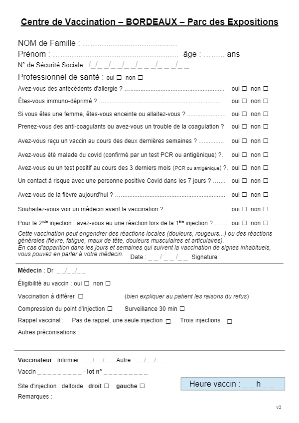 Le premier document était le questionnaire médical suivi du "consentement éclairé" classique à signer.