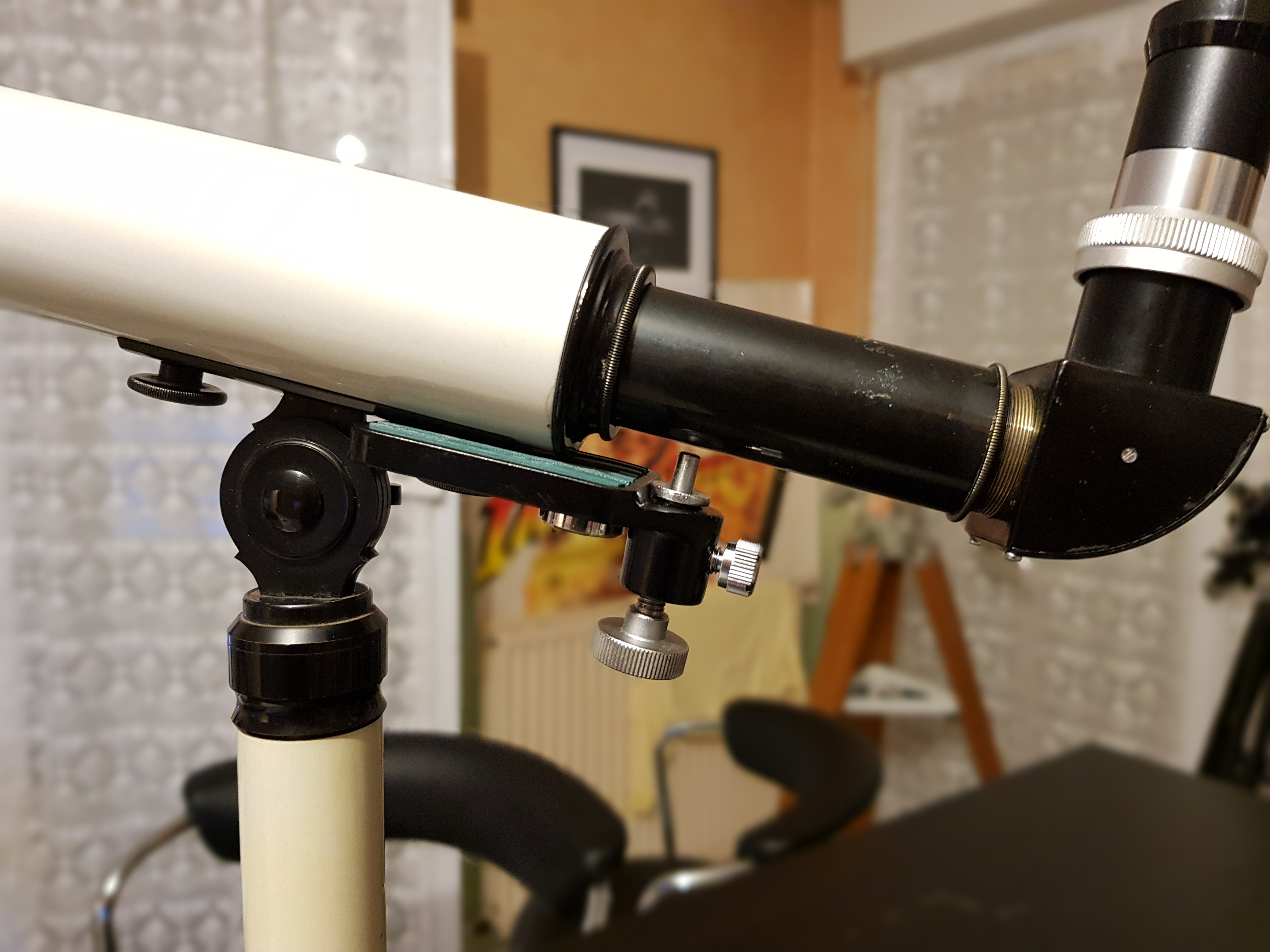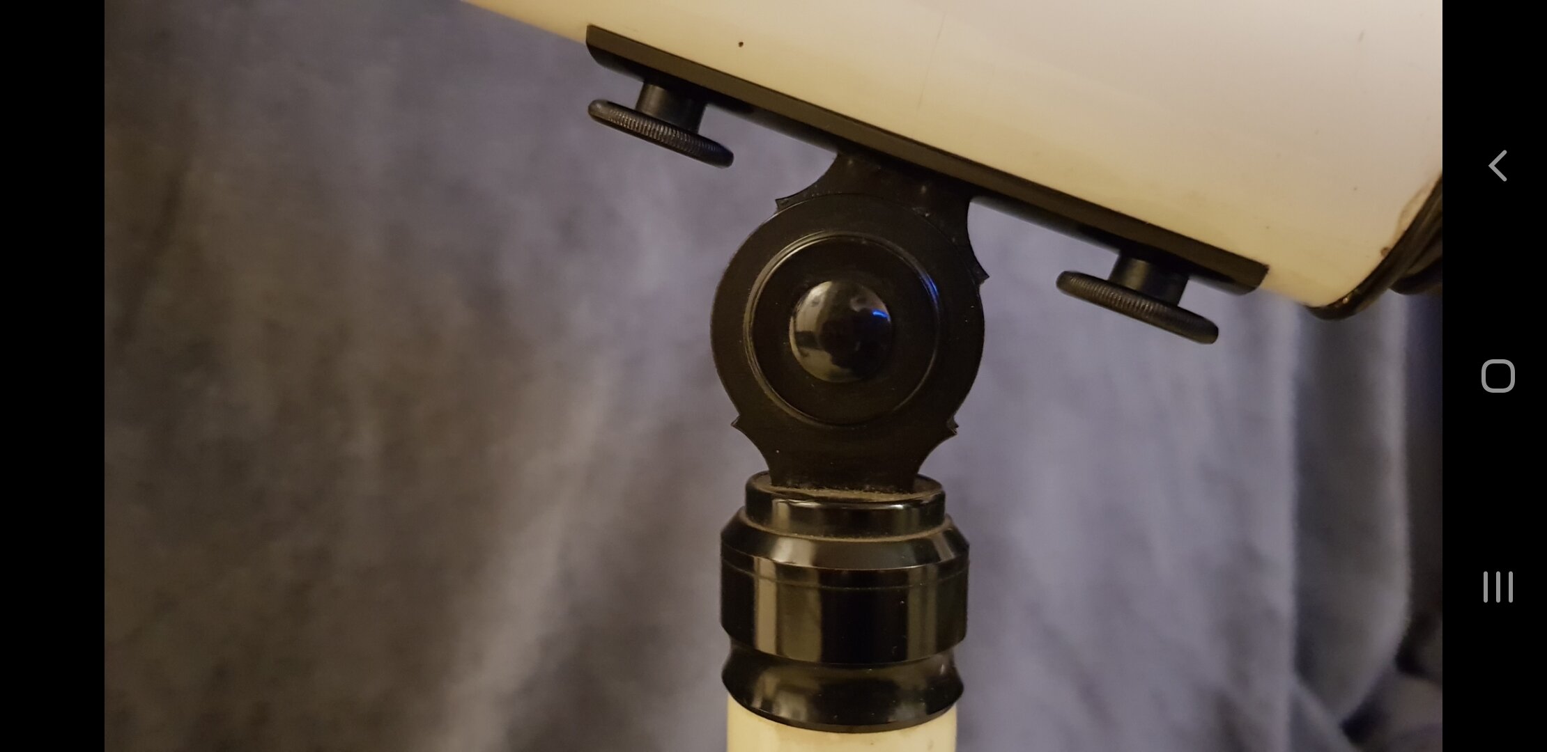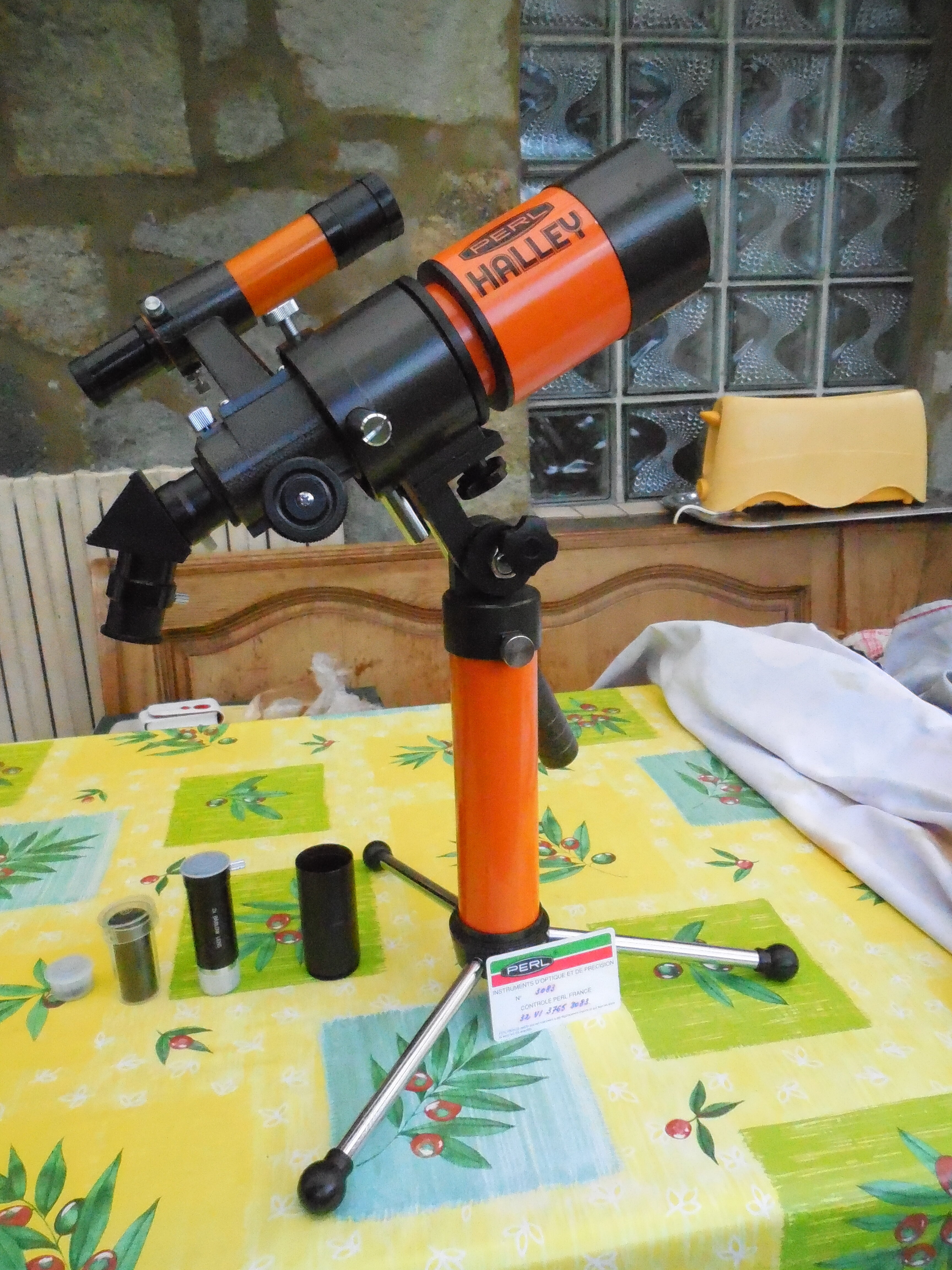 JonathanGrégoire Posté 21 janvier 2022 Posté 21 janvier 2022 Cette lunette Vion "des écoles" est une vraie tuerie, une esthétique terrible. Sa colonne centrale et la disposition des pieds me fait penser à ma Perl Vixen Halley 70, ils se sont peut-être inspiré au japon de la forme de ce modèle pour créer eux-mêmes leurs propres "lunettes de voyage". Pour comparaison une photo de ma Perl Vixen Halley 70 et une photo de la lune avec smartphone à l'oculaire. Ta lunette Vion et ma lunette Perl ont un air de famille... Je me demande si nos amis Japonais ne se sont pas inspirés de la Vion pour créer ce modèle. Les images lunaires sont moins "piquées" et "contratées" qu'avec nos vieilles lulu, mais cela reste correcte pour une lunette contemporaine de "poche". Sauf erreur de ma part, la Perl Halley a été crée à l'occasion du retour de la comète de Halley en 1986 ??? Et a connu ensuite un certain succès au début des années 1990. Astronomiquement vôtre Jonathan