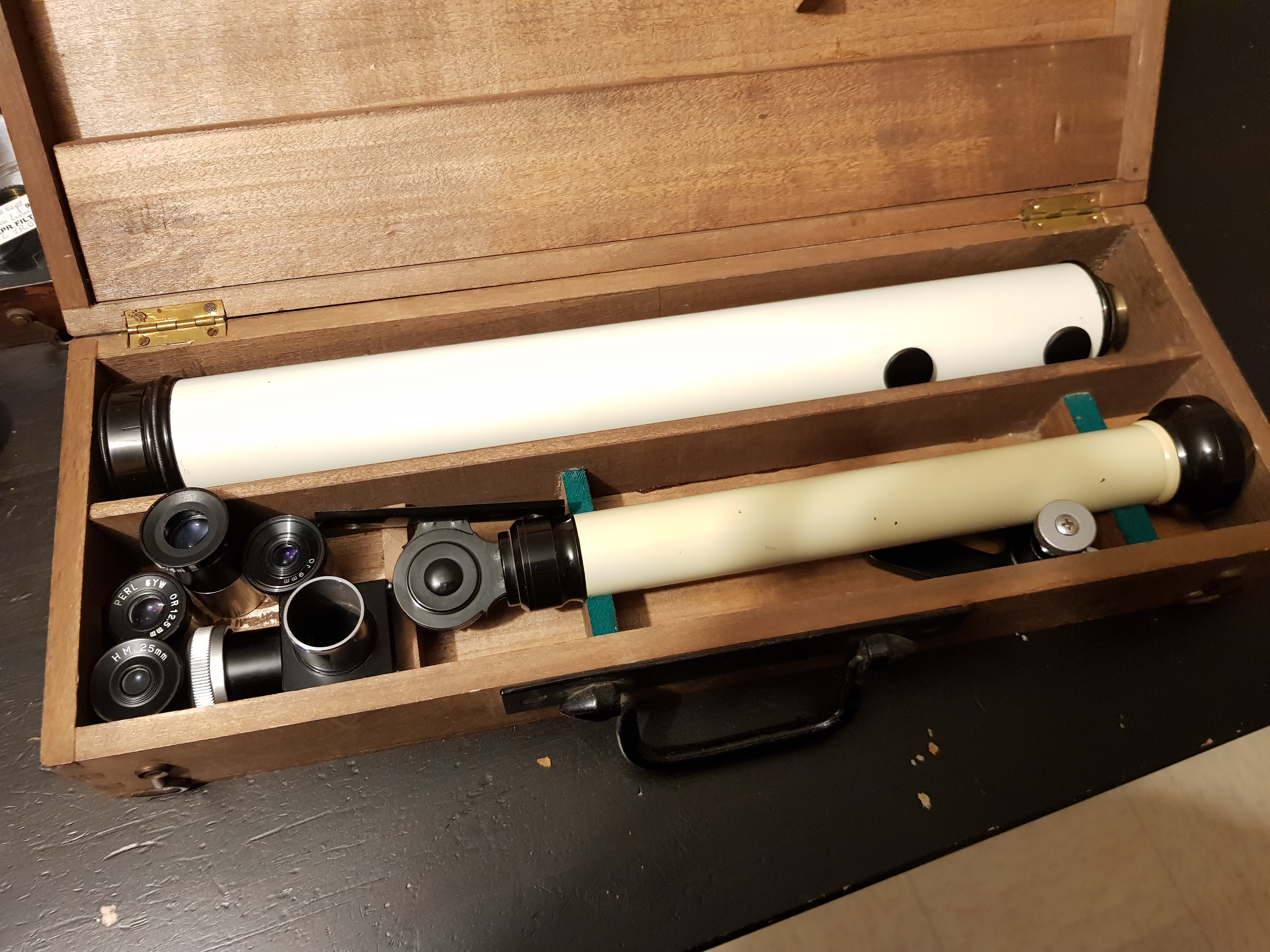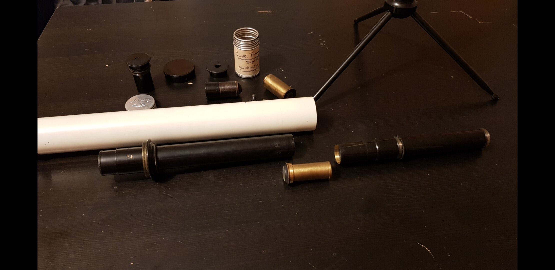 Jorris Posté 31 décembre 2020 Auteur Posté 31 décembre 2020 Merci @bosgi Précieuse information que tu m'apporte la, je n'aurais jamais trouvée seul, je pense, ca me permettre de retrouver des traces de ces lunettes. La tienne a l'air identique, saut tube allonge, pas en laiton sur la mienne (en fait il y a 2 tube allonge, je ne l'avais pas complètement déplié) J'avais trouvé hier soir pour le filtre solaire, il se visse par dessus l'oculaire (le pas de visse et sur le tube allonge). Il m'a semblé que l'autre oculaire était une loupe, en faisant coulisser les deux partie (une fois le filtre solaire enlevé), la mis au point ce fait sur les objet rapproché pour un rapport de ×3 à peu près. Jai récupérer la lunette hier soir, donc aucun test d'effectué. Jai seulement remarqué que je ne pouvais pas faire la map d'un bout à l'autre a l'intérieur de chez moi, avec la lentille du milieux inséré au début du dernier tube allonge. Et que sans la lentille, la map se faisait. Nettoyage, dans les jours à venir, puis test sur le ciel évidement Avec les différentes combinaisons d'oculaire et de lentille interne 😊