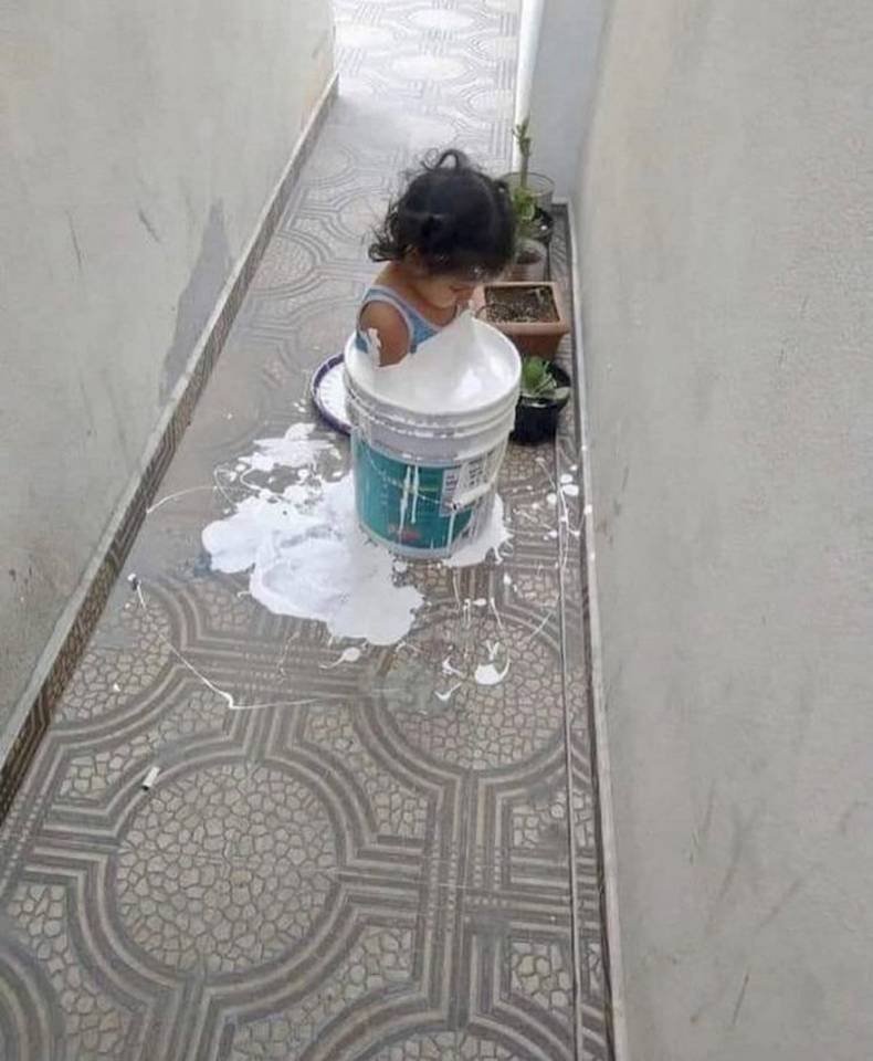 La gamine dans la peinture ... c'est une blague avec séquelles si c'est pas de la peinture à l'eau !!!!