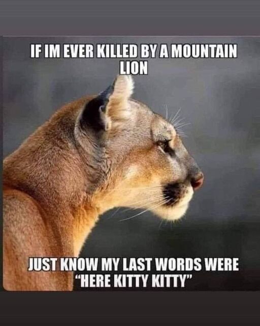 Au cas où je serais tué par un puma, sachez que mes dernières paroles auront été : "viens minou, minou !".
