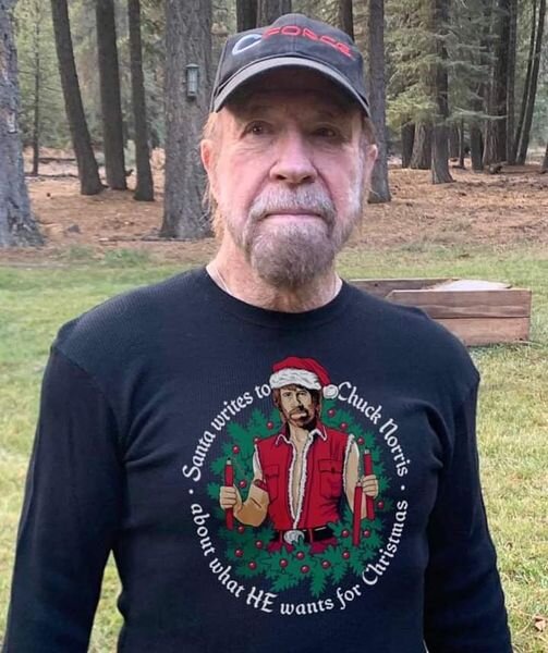 Le Père Noël écrit à Chuck Norris pour lui demander quel cadeau il veut.