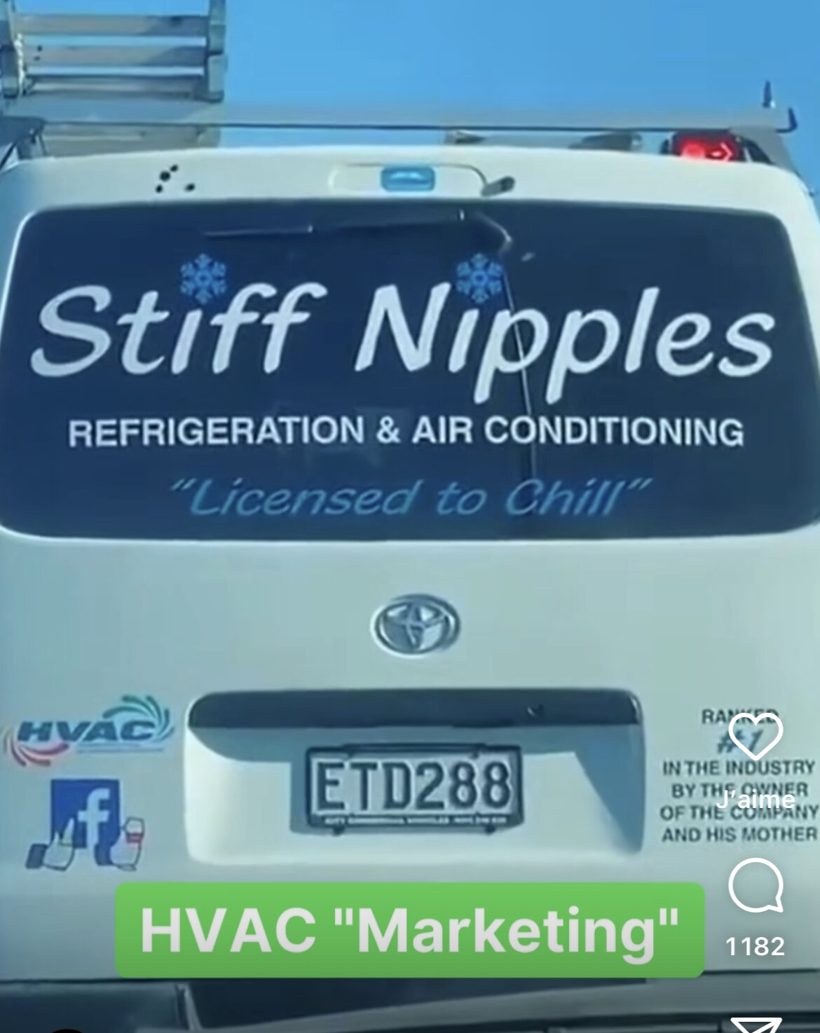 Traduction littérale : "Une voiture mue par des poulets élevés en plein air et conçue par une équipe de pommes de terres ramassées manuellement. Faites l'expérience de la conduite sous l'emprise des champignons et de la cocaïne".