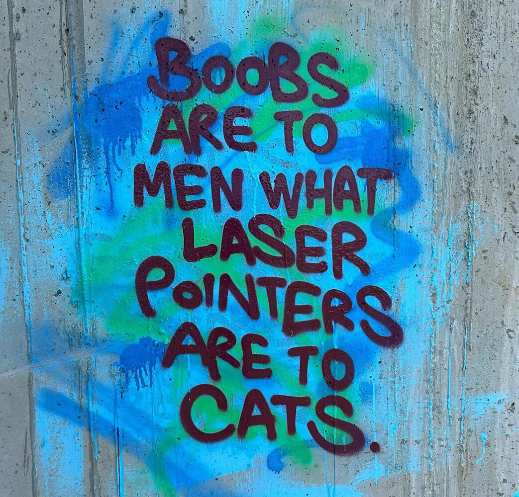 [traduction Les seins sont aux hommes ce que les pointeurs laser sont aux chats]