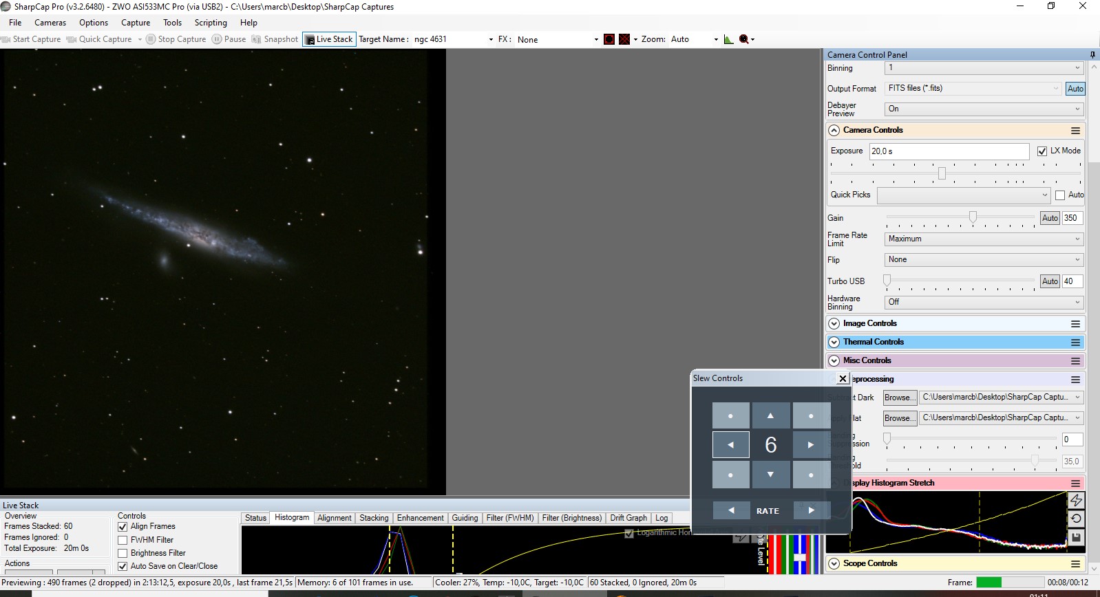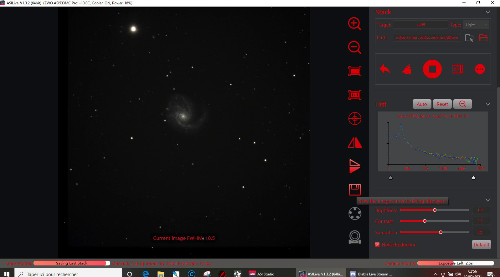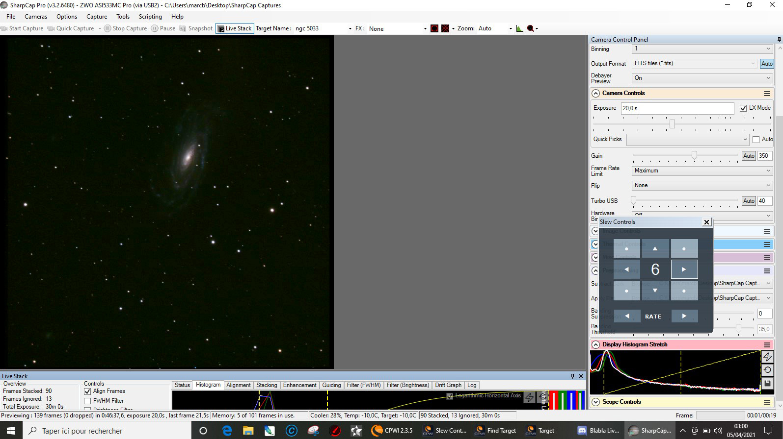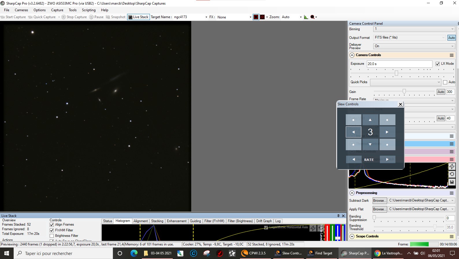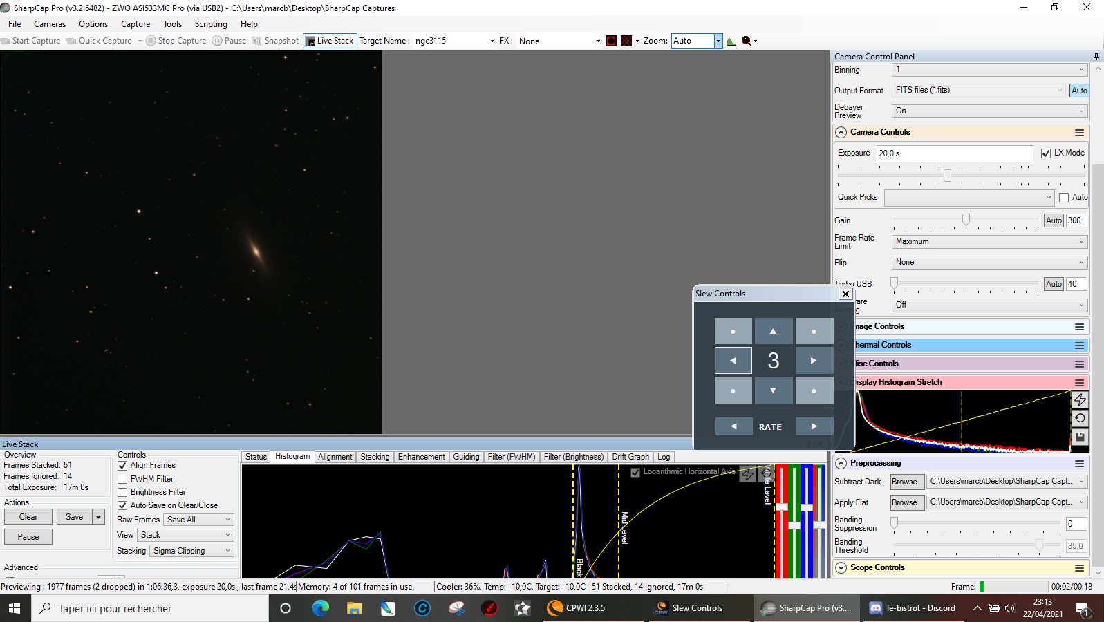 J'ai lancé sharpcap en live stack et j'ai été rebuté par le fait que le stack se lance immédiatement avant même que le moindre réglage de gain ou de temps d'expo ai pu être réalisé.