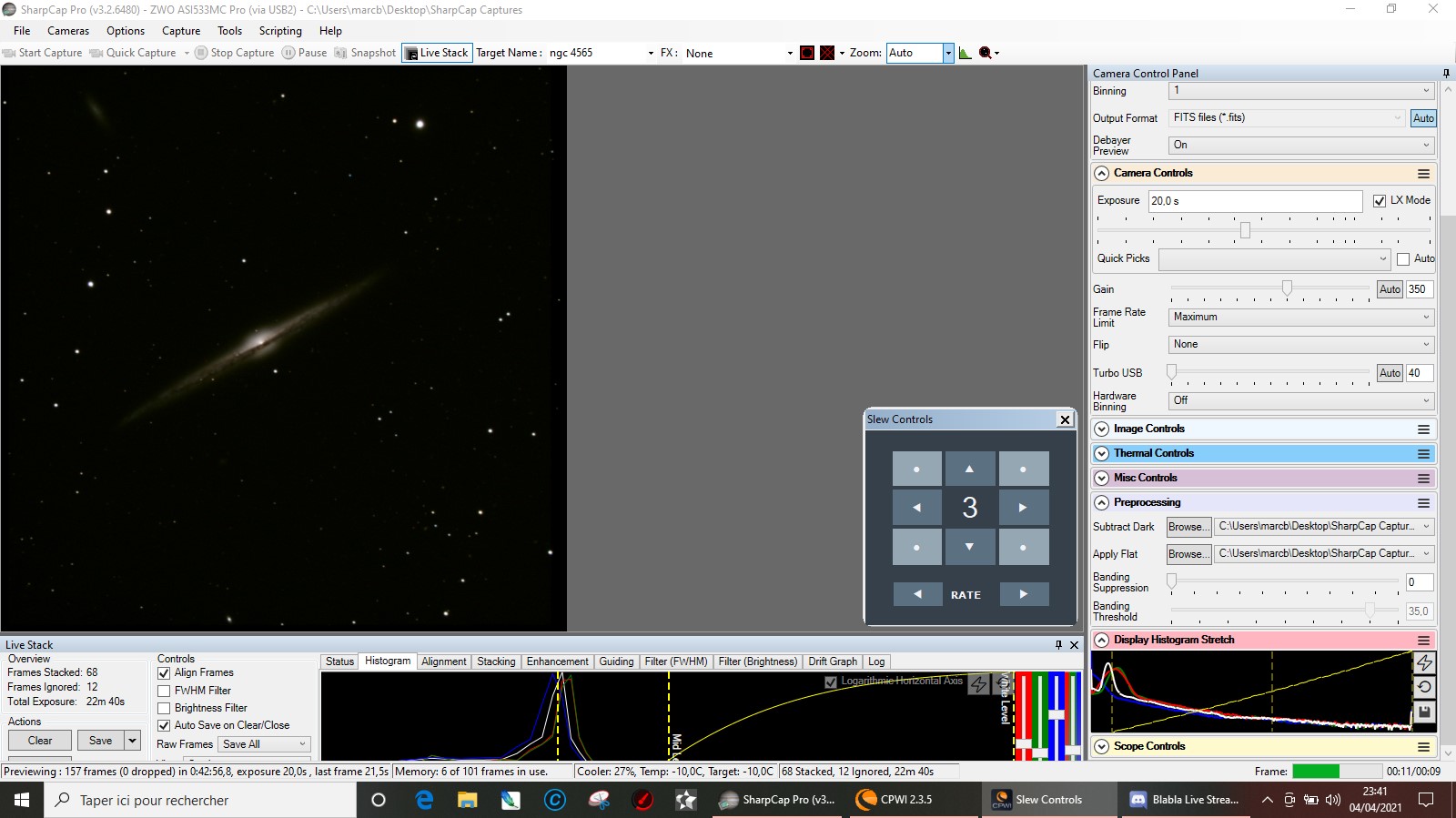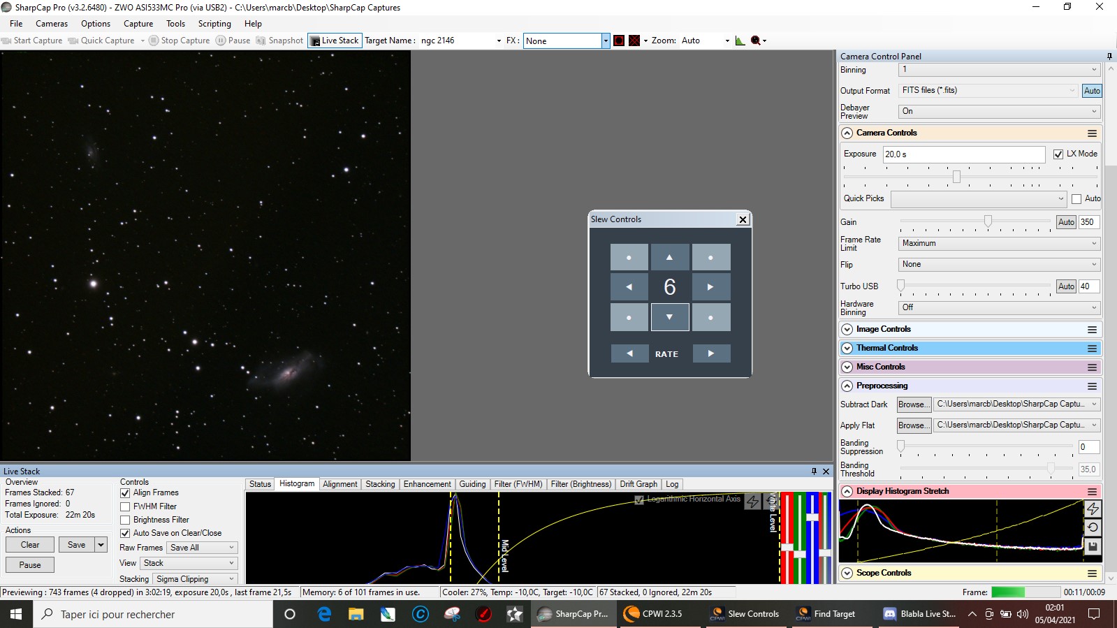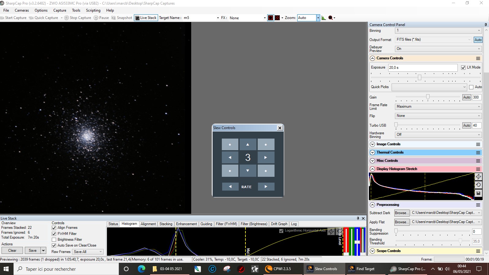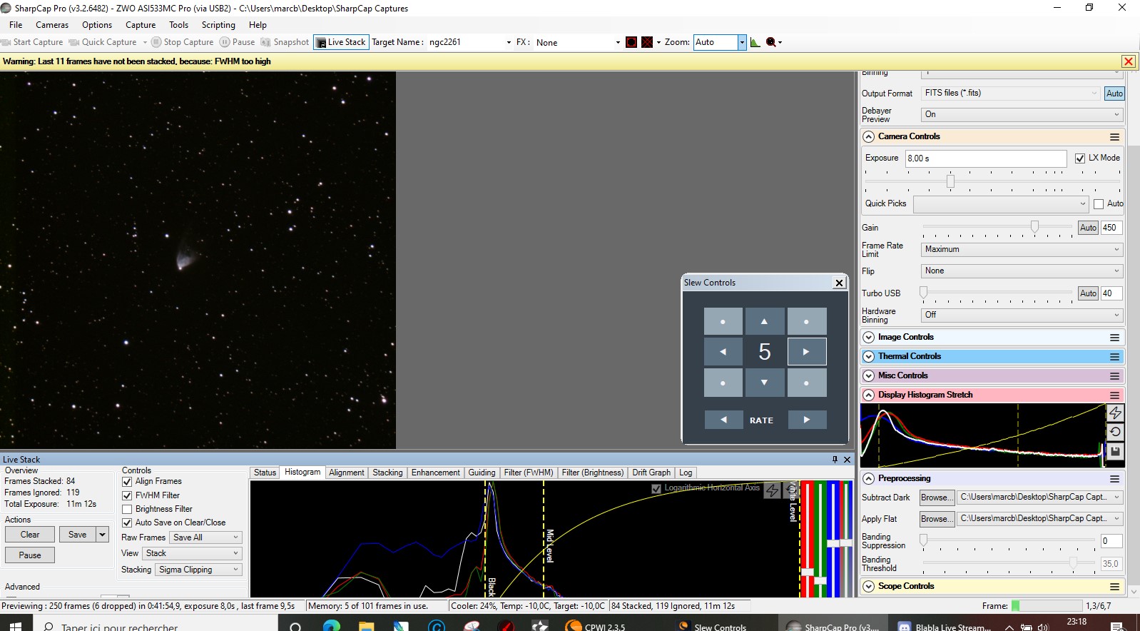 J'ai lancé sharpcap en live stack et j'ai été rebuté par le fait que le stack se lance immédiatement avant même que le moindre réglage de gain ou de temps d'expo ai pu être réalisé.