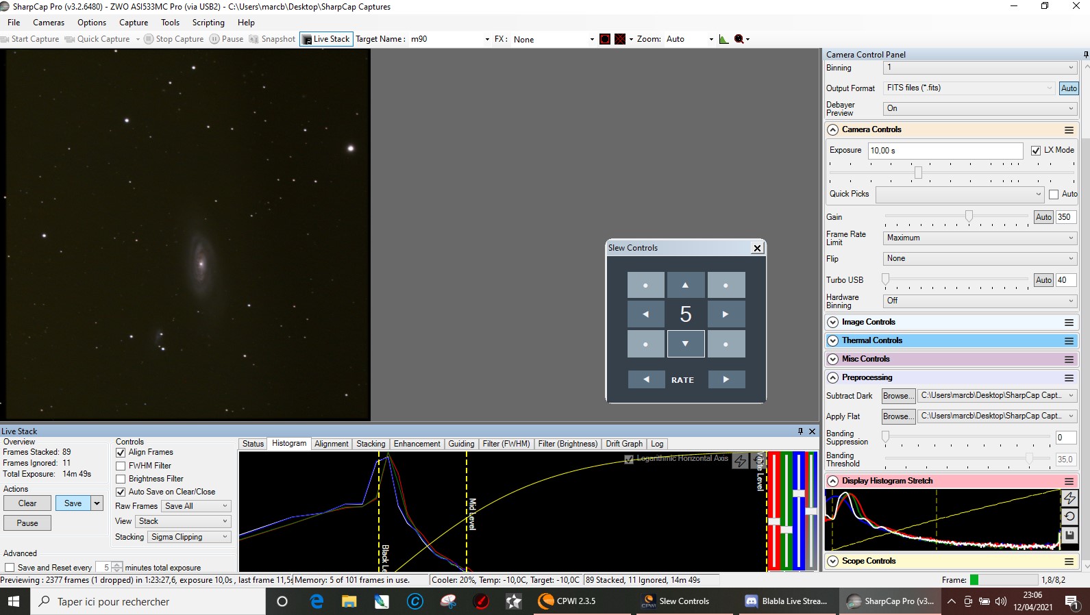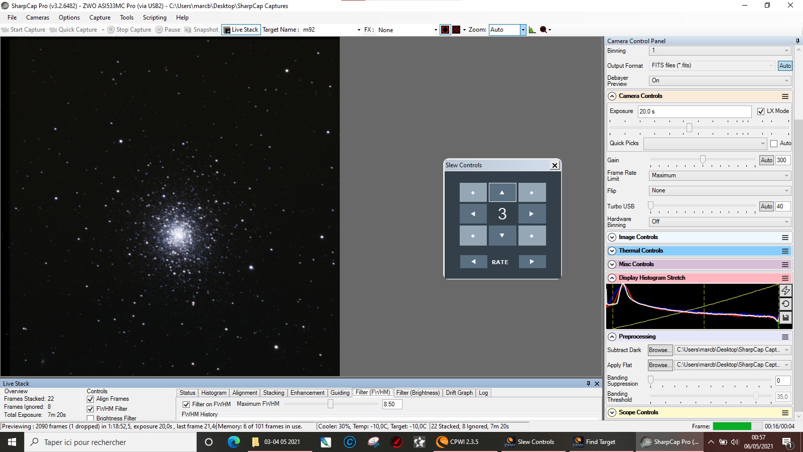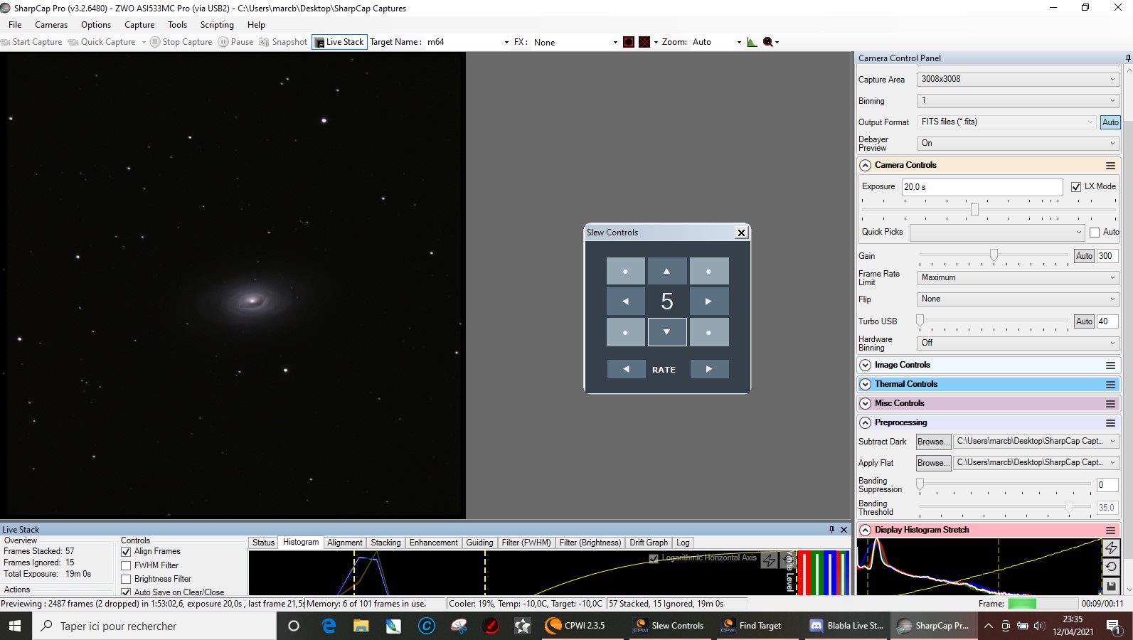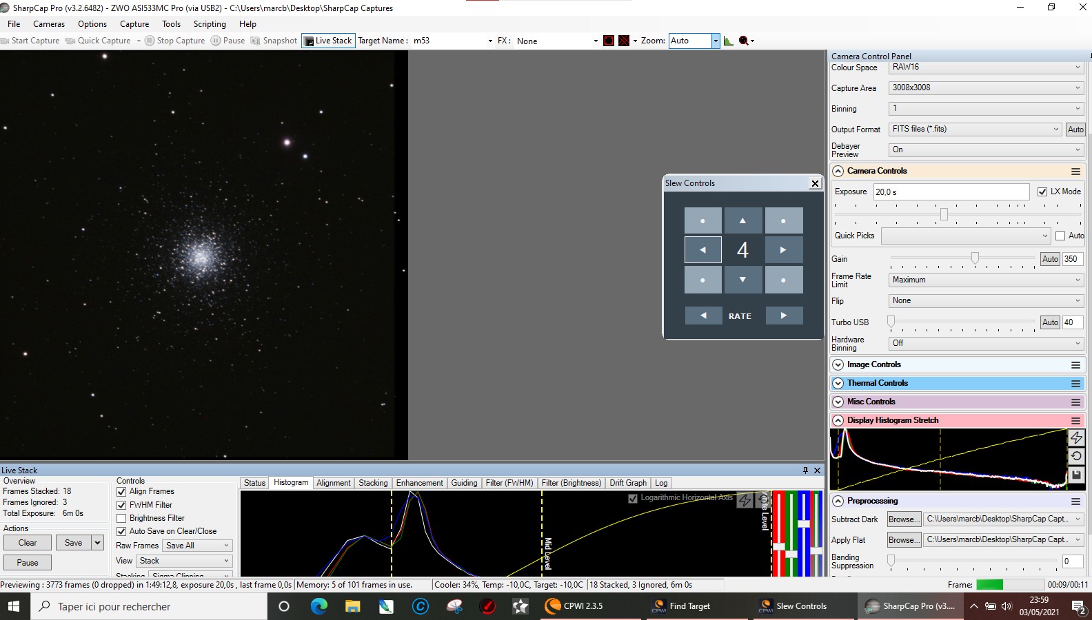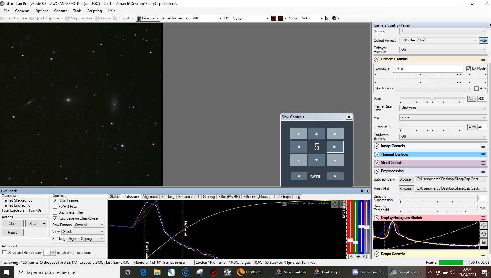 J'ai lancé sharpcap en live stack et j'ai été rebuté par le fait que le stack se lance immédiatement avant même que le moindre réglage de gain ou de temps d'expo ai pu être réalisé.
