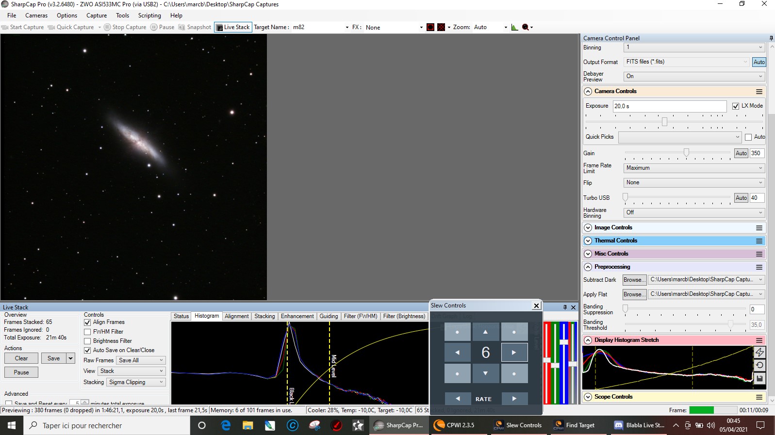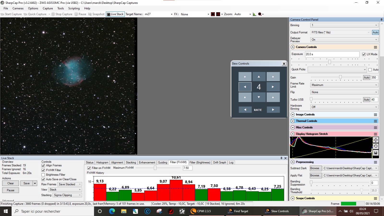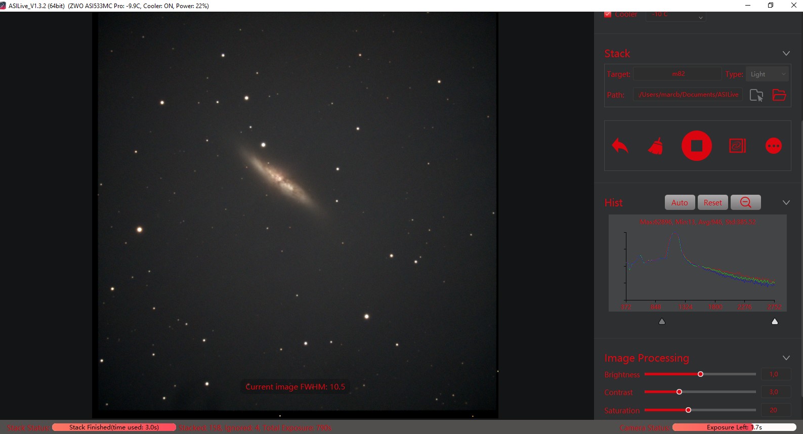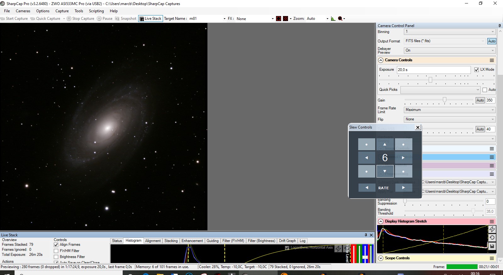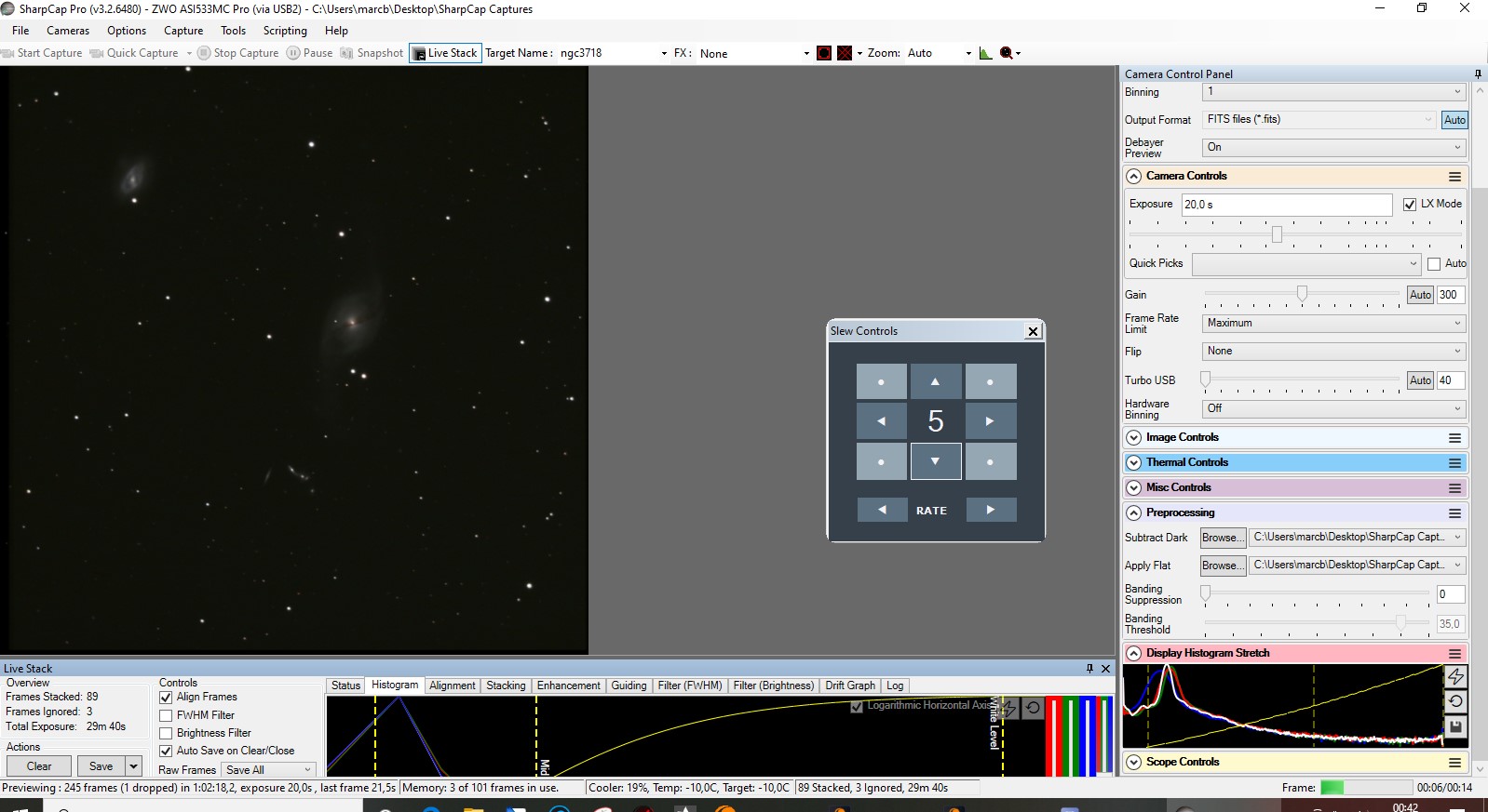 - de te faire la main avec les différents softs, mais si tu investis du temps, Sharpcap est la meilleure solution actuelle et tu auras
