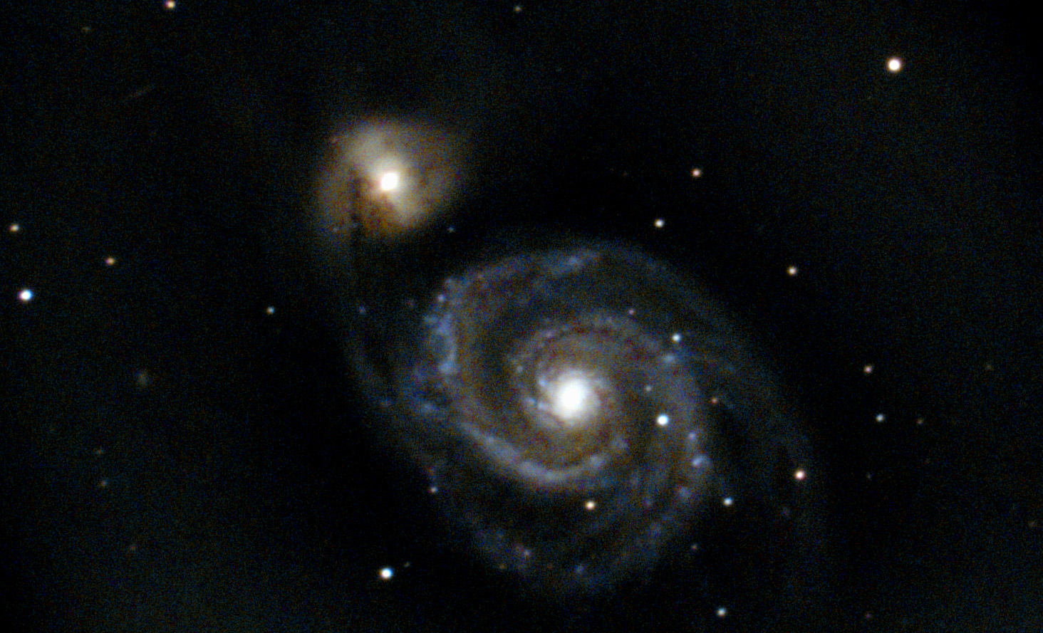 Et si on n'a pas la chance d'avoir un bon ciel (comme c'est mon cas), un petit coup de traitement rapide (rien à voir avec l'usine à gaz et la difficulté technique du traitement en AP !) fait "sortir" les photons cachés dans les images recueillies en direct - et on est tout content de notre "photo souvenir". Cela n'a largement pas la qualité d'une astrophoto, surtout celles réalisées par les ténors du domaine, mais c'est incomparable à ce que l'on pourrait voir à l'oeil nu (en fait, sous un ciel comme le mien, à l'oeil nu, on ne verrait rien - ou pas grand chose d'autre que les AG, la lune et les planètes)...
