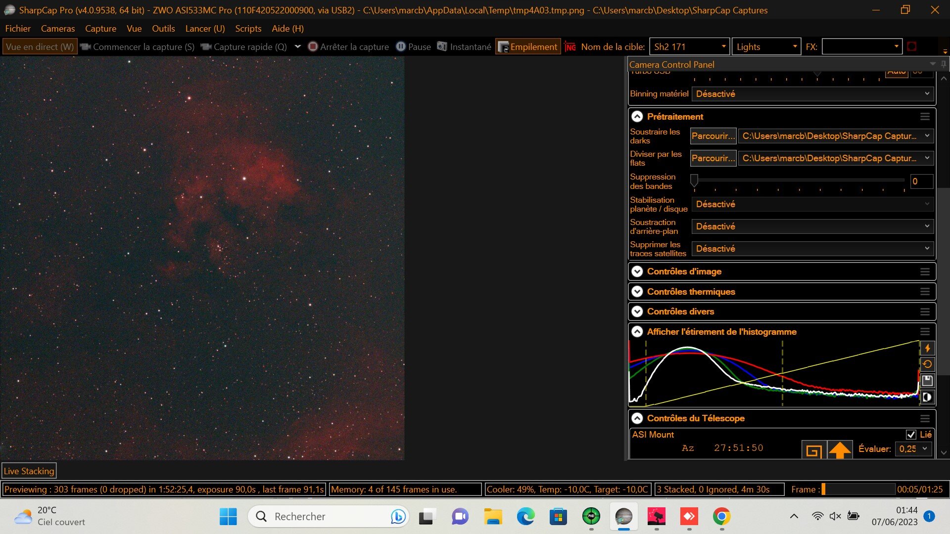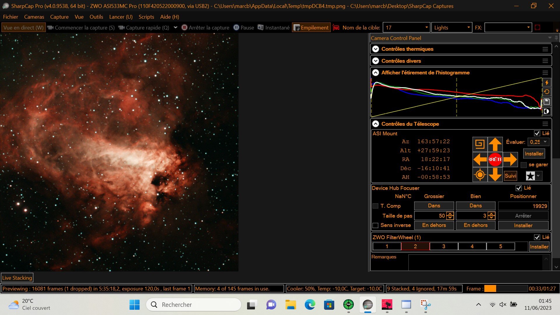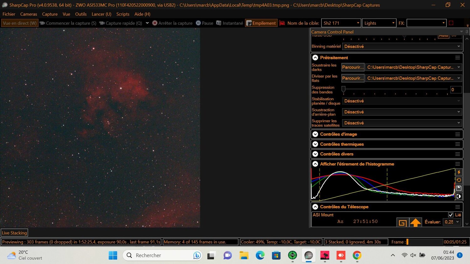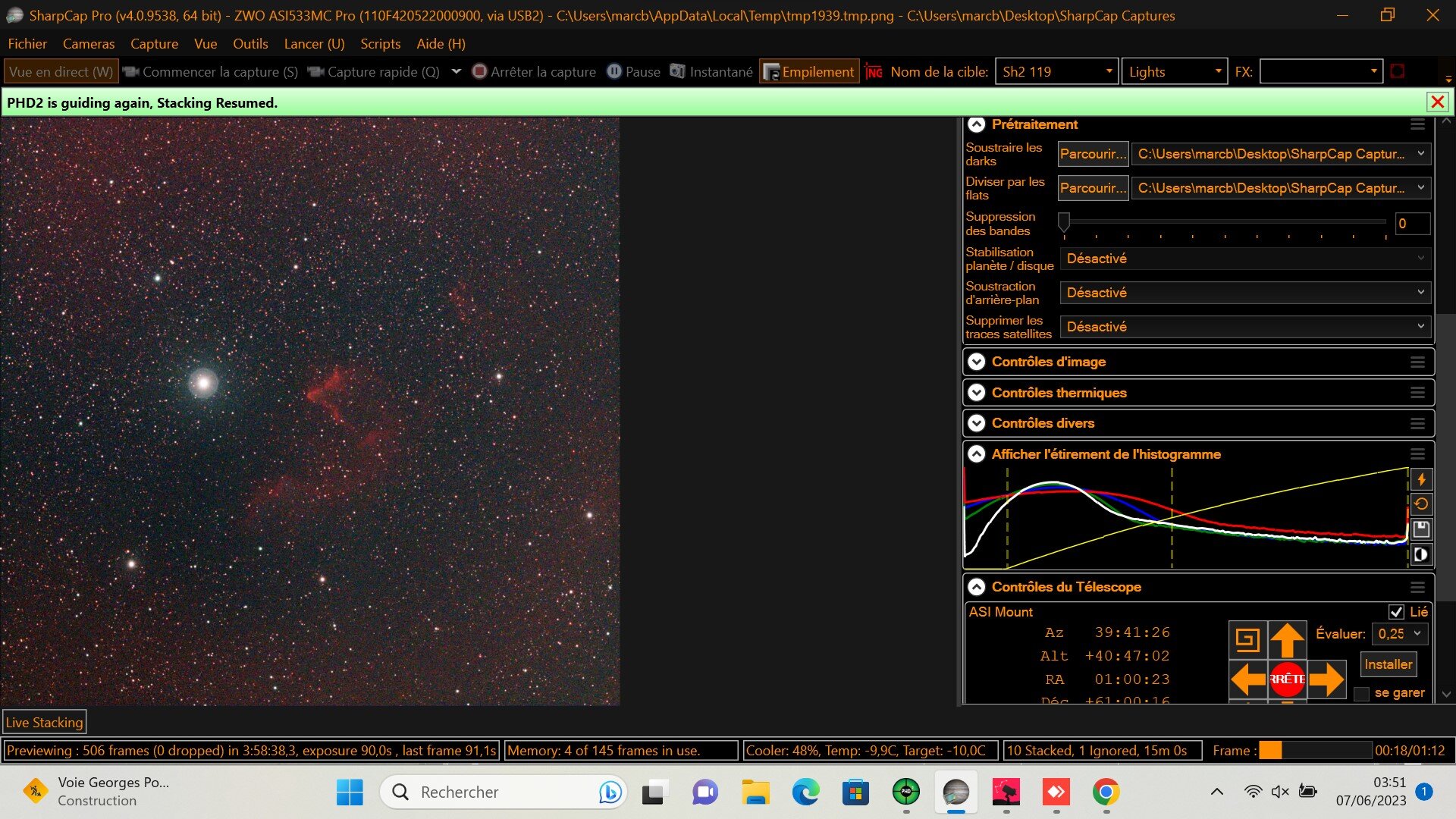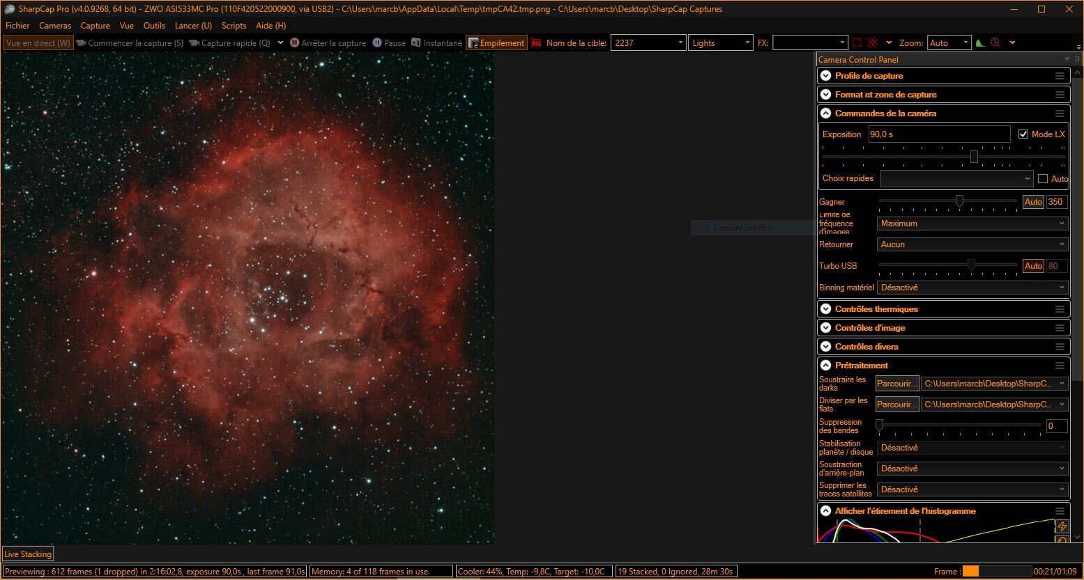 Bravo ! , j'aime beaucoup faire également du V.A avec sharpcap, d'ailleurs on peut mettre des flats et des darks assez facilement et utilisé l'analyse sensor permet aussi d'améliorer la rapporte gain/temps de pose.