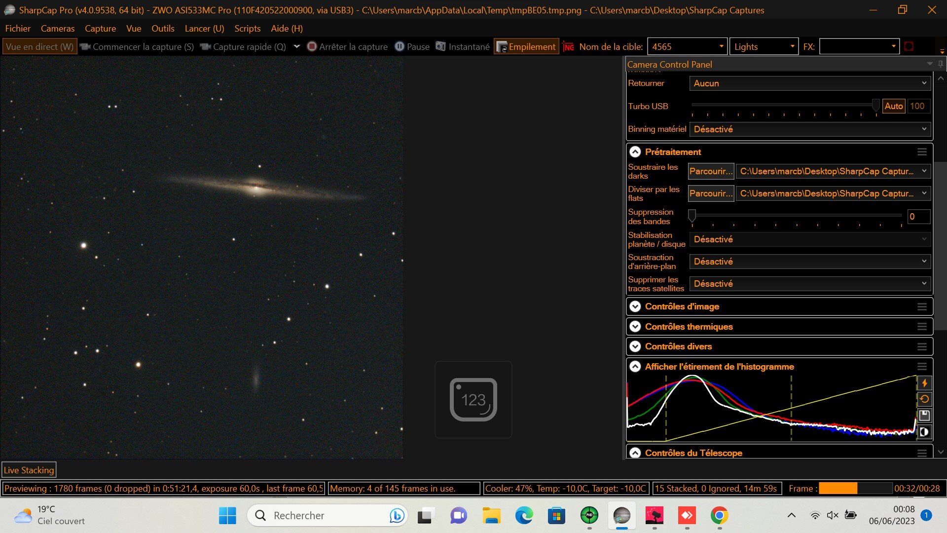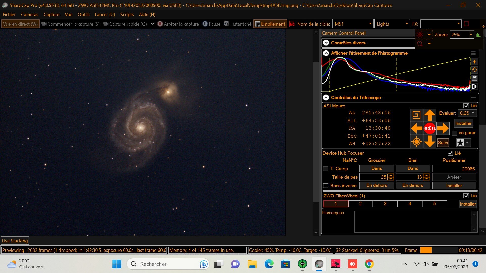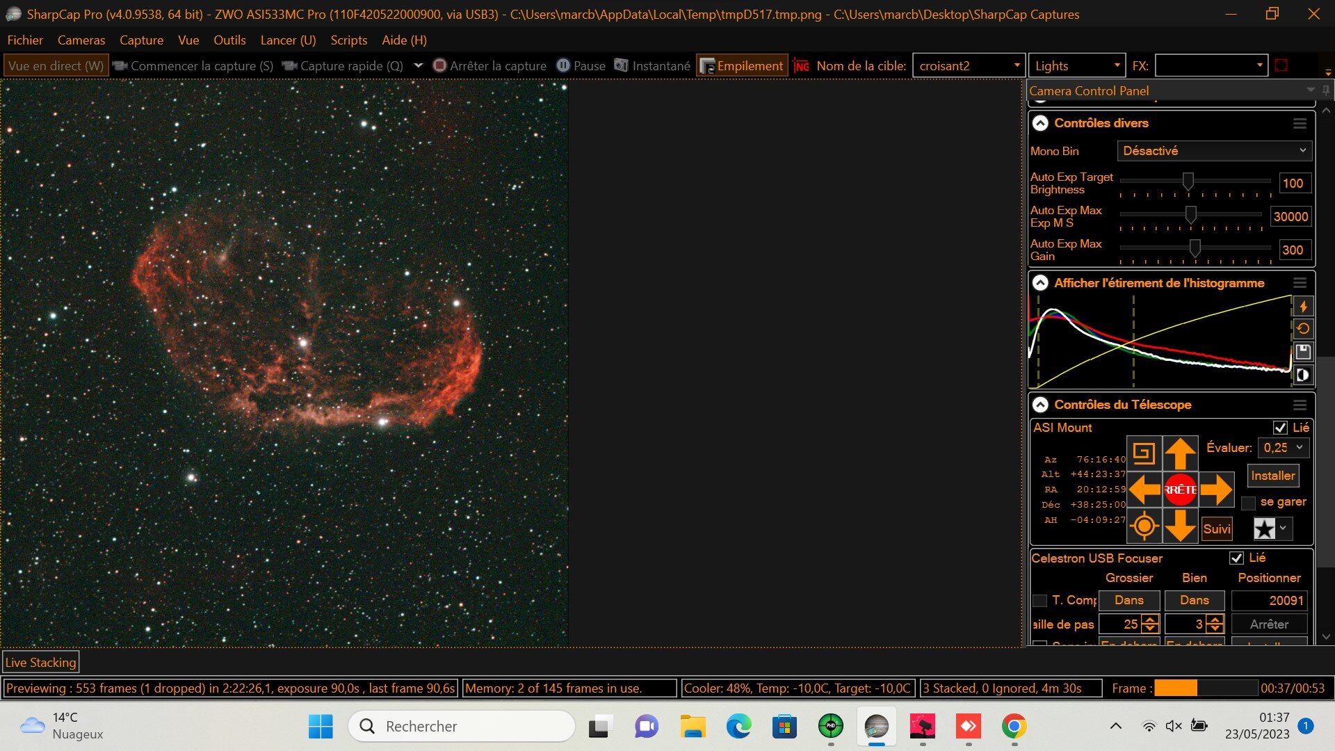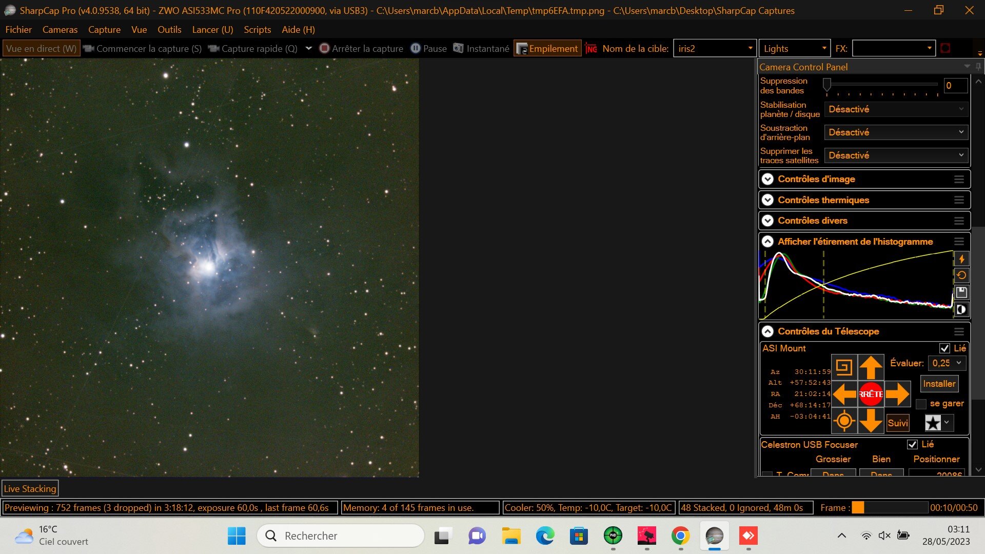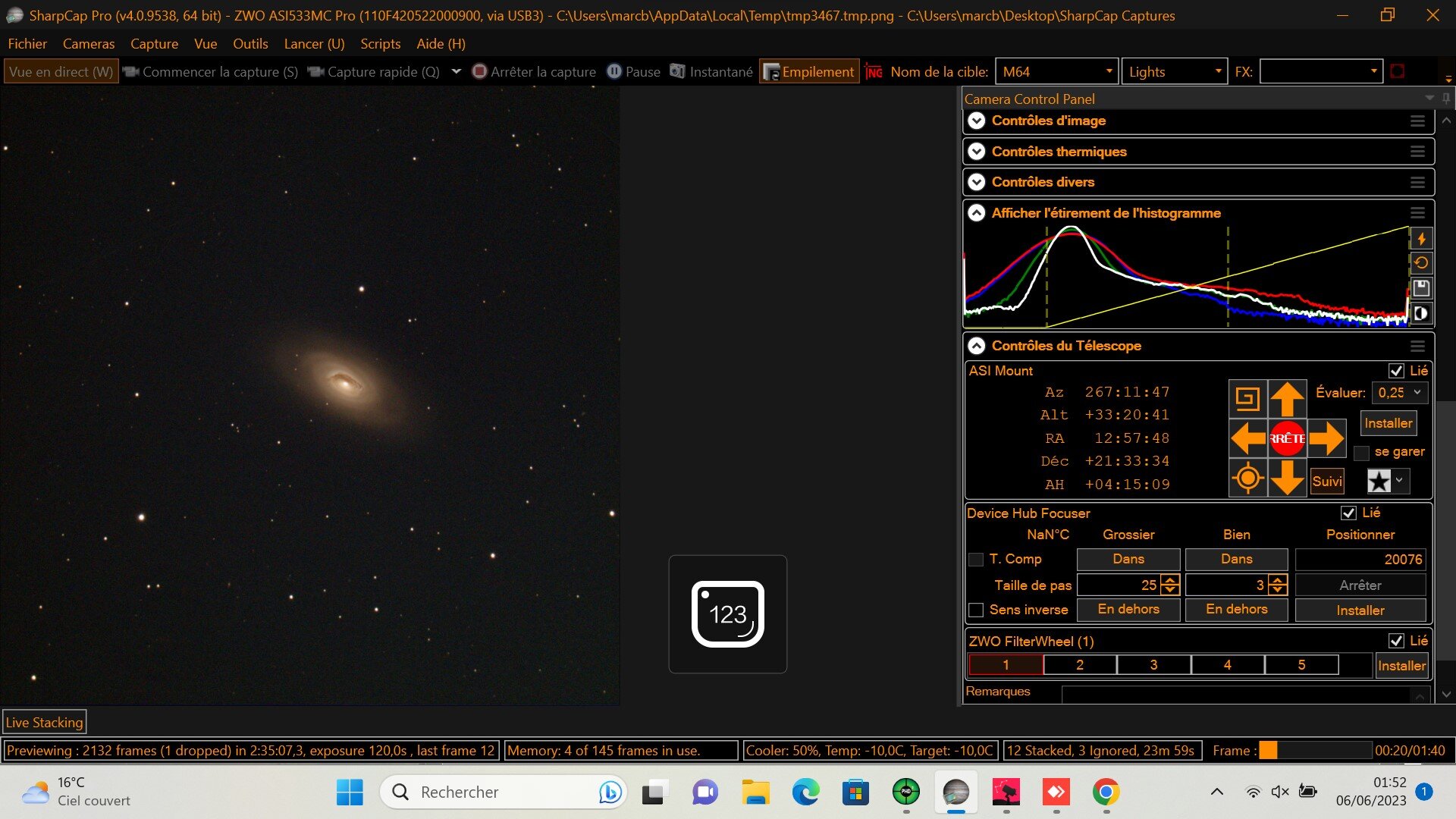 Bravo ! , j'aime beaucoup faire également du V.A avec sharpcap, d'ailleurs on peut mettre des flats et des darks assez facilement et utilisé l'analyse sensor permet aussi d'améliorer la rapporte gain/temps de pose.