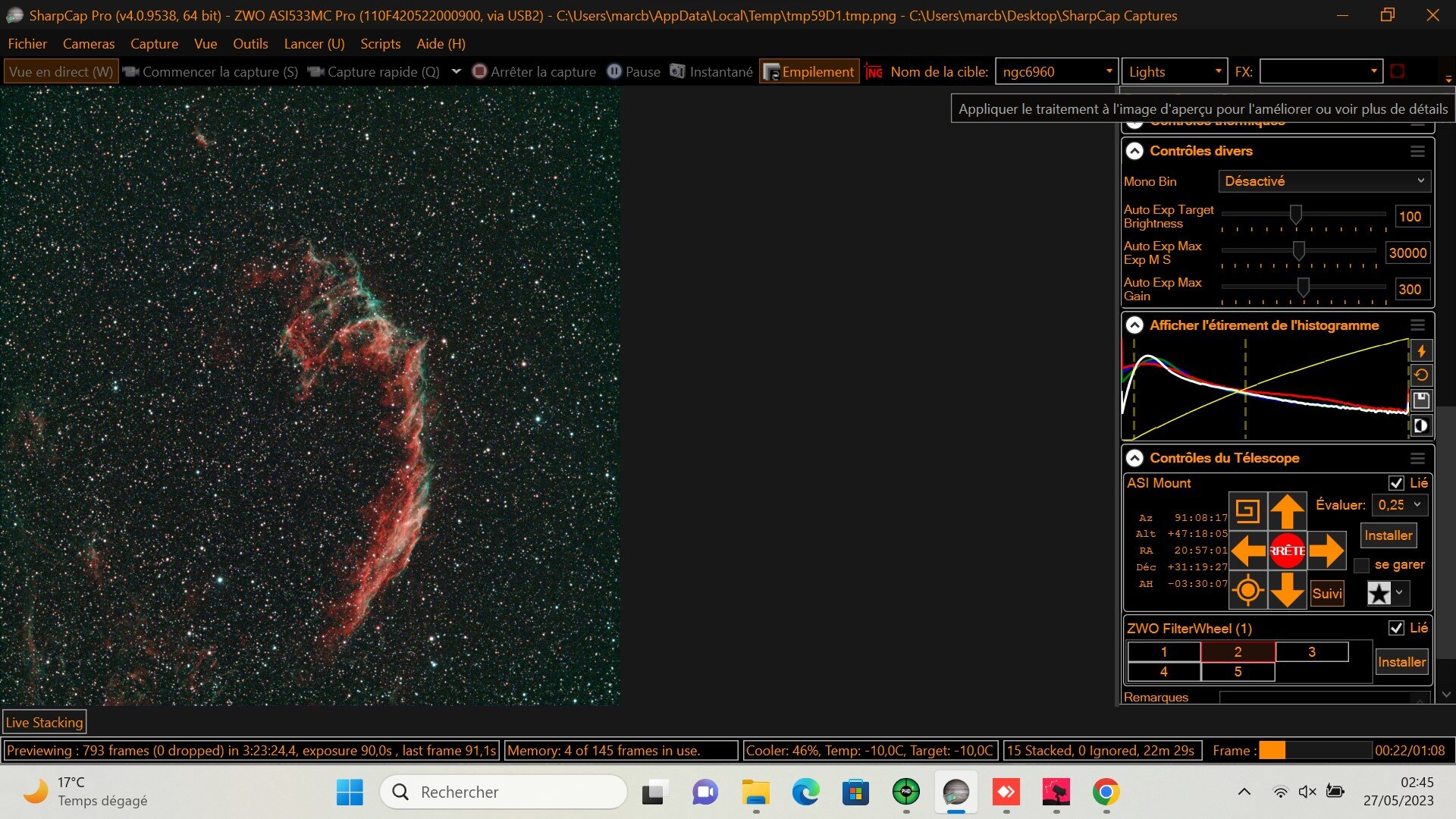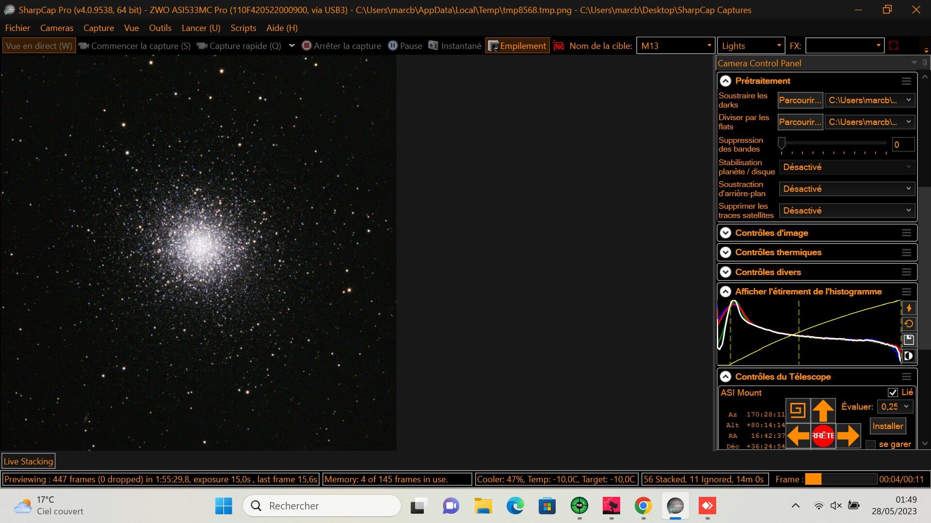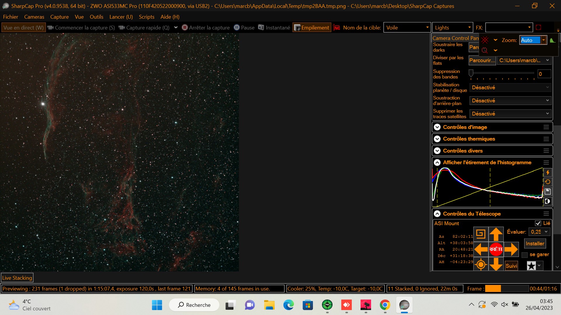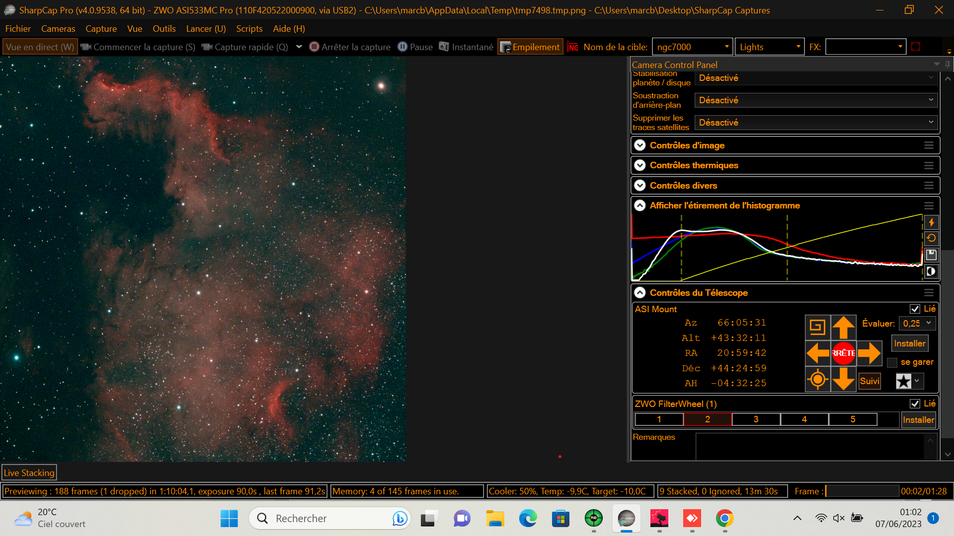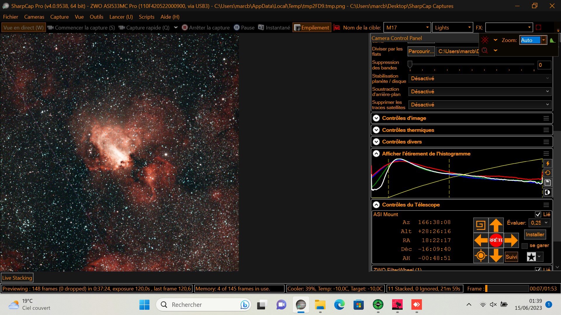 Bravo ! , j'aime beaucoup faire également du V.A avec sharpcap, d'ailleurs on peut mettre des flats et des darks assez facilement et utilisé l'analyse sensor permet aussi d'améliorer la rapporte gain/temps de pose.