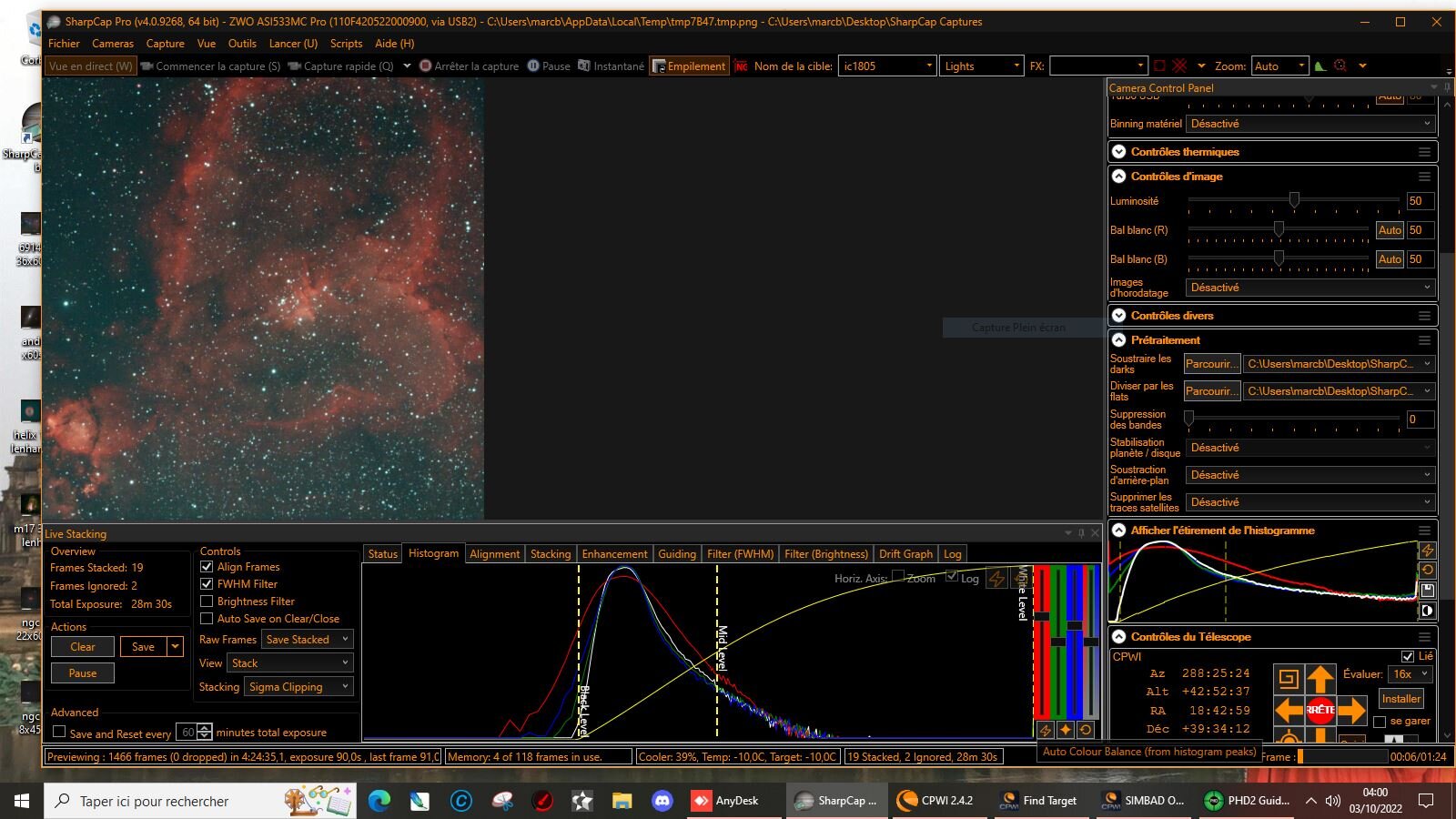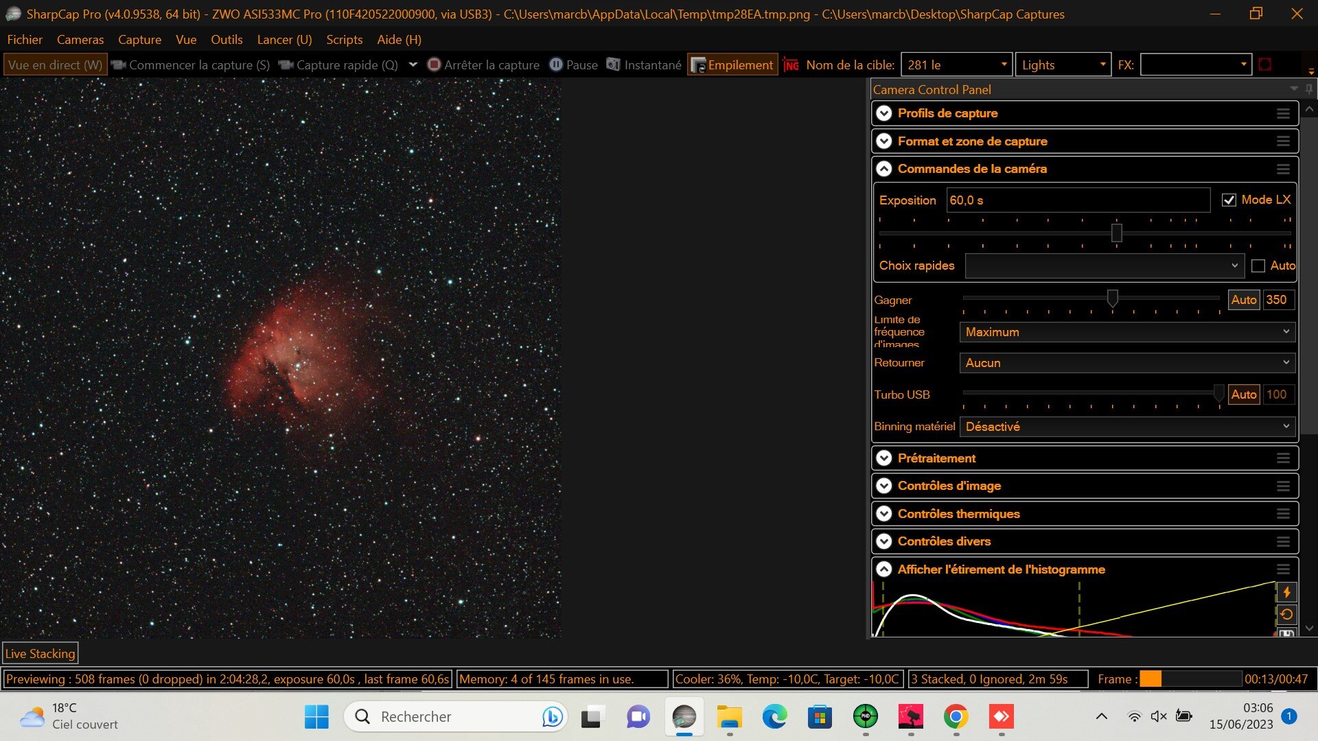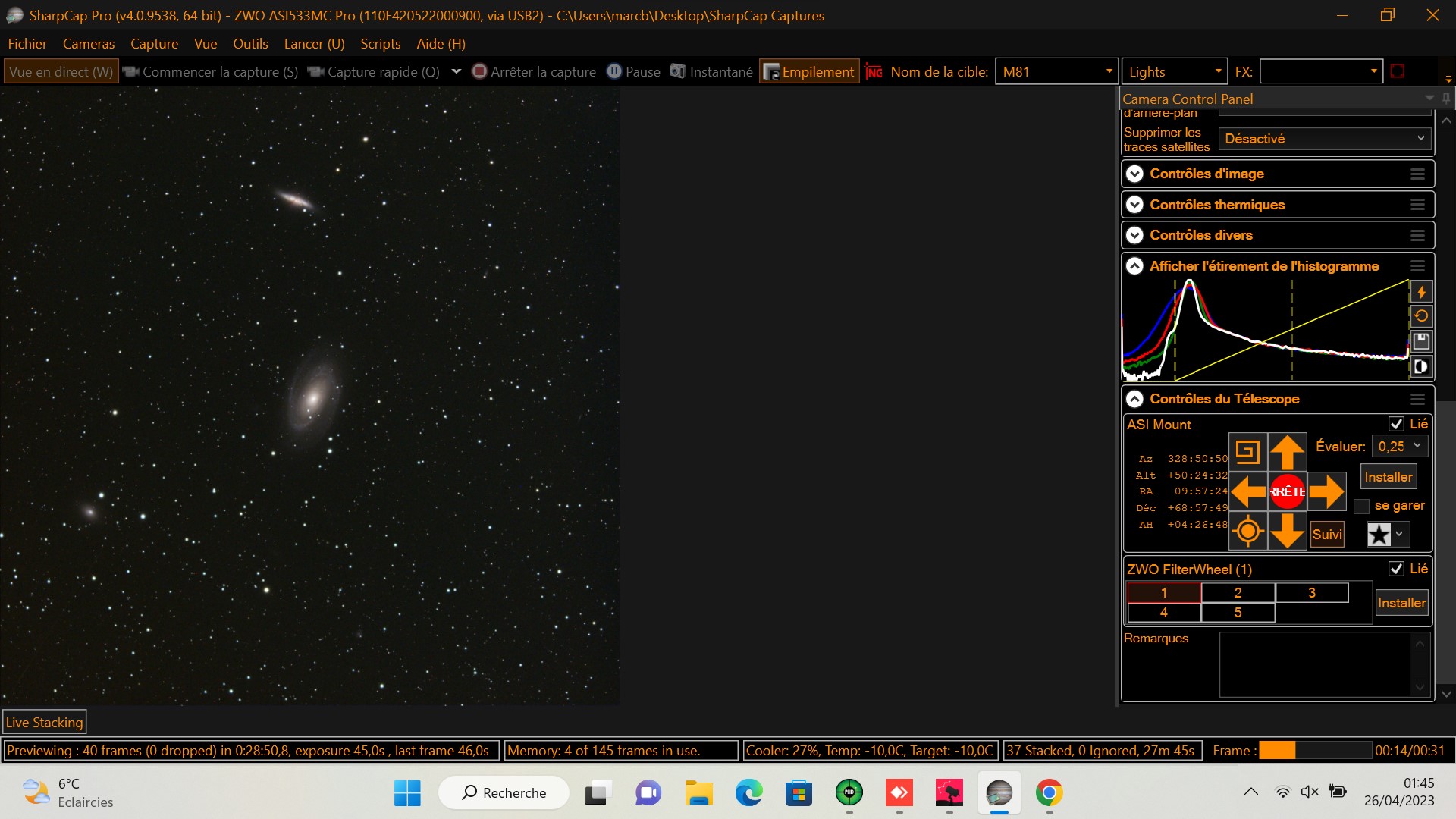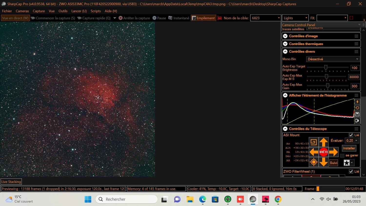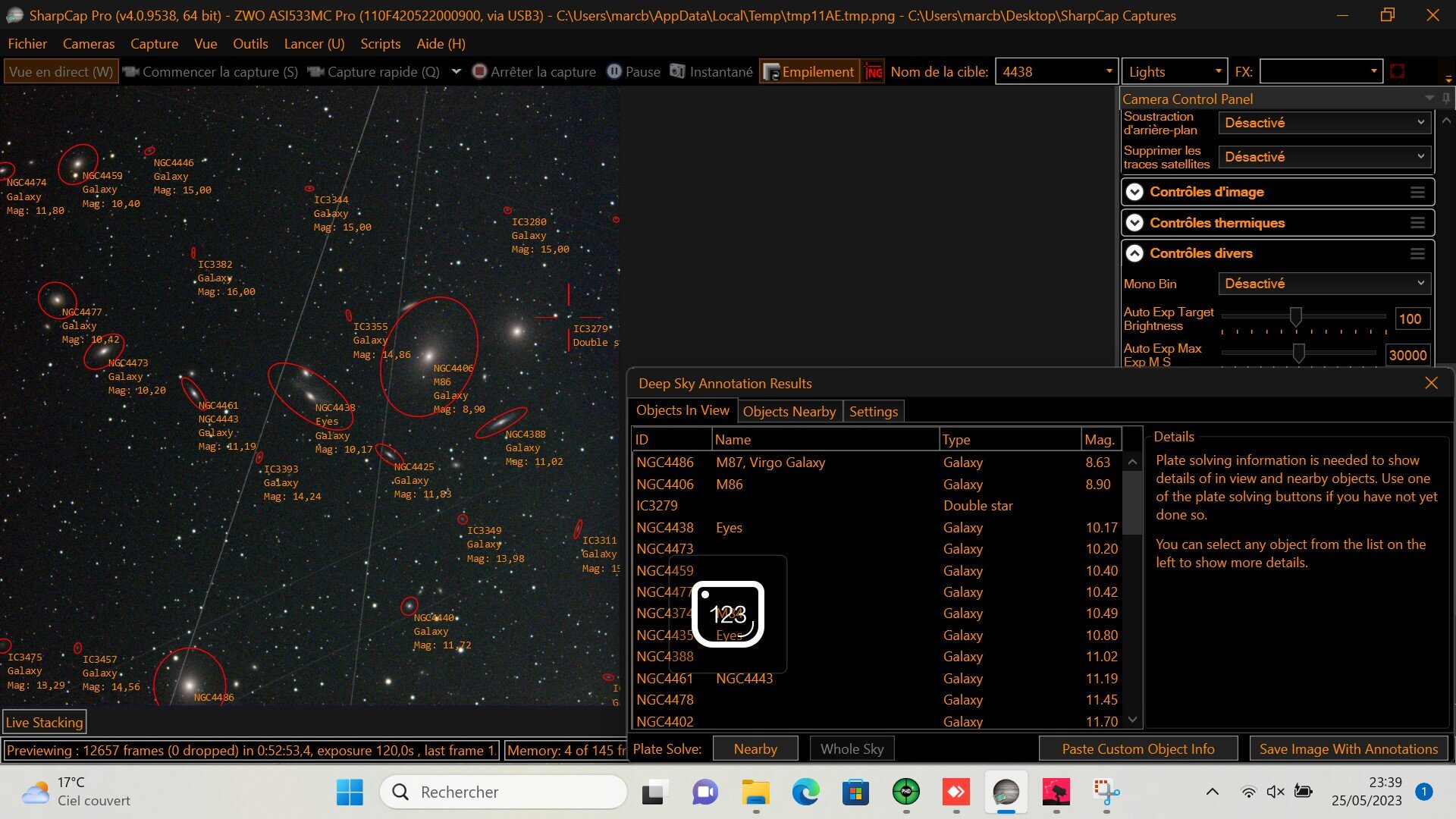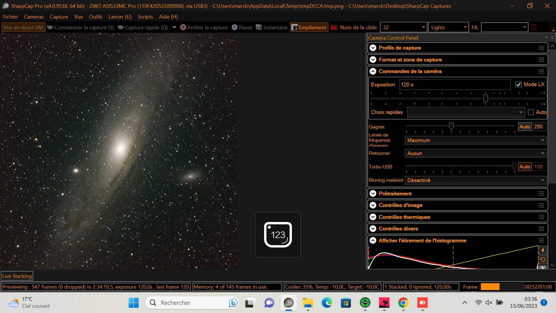 Bravo ! , j'aime beaucoup faire également du V.A avec sharpcap, d'ailleurs on peut mettre des flats et des darks assez facilement et utilisé l'analyse sensor permet aussi d'améliorer la rapporte gain/temps de pose.