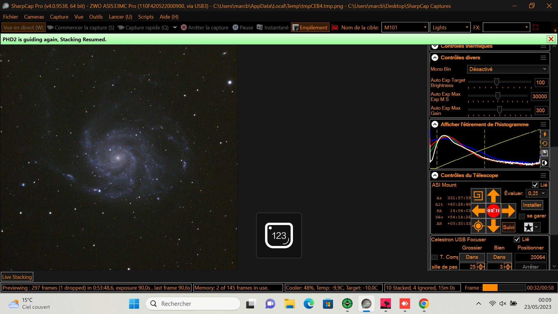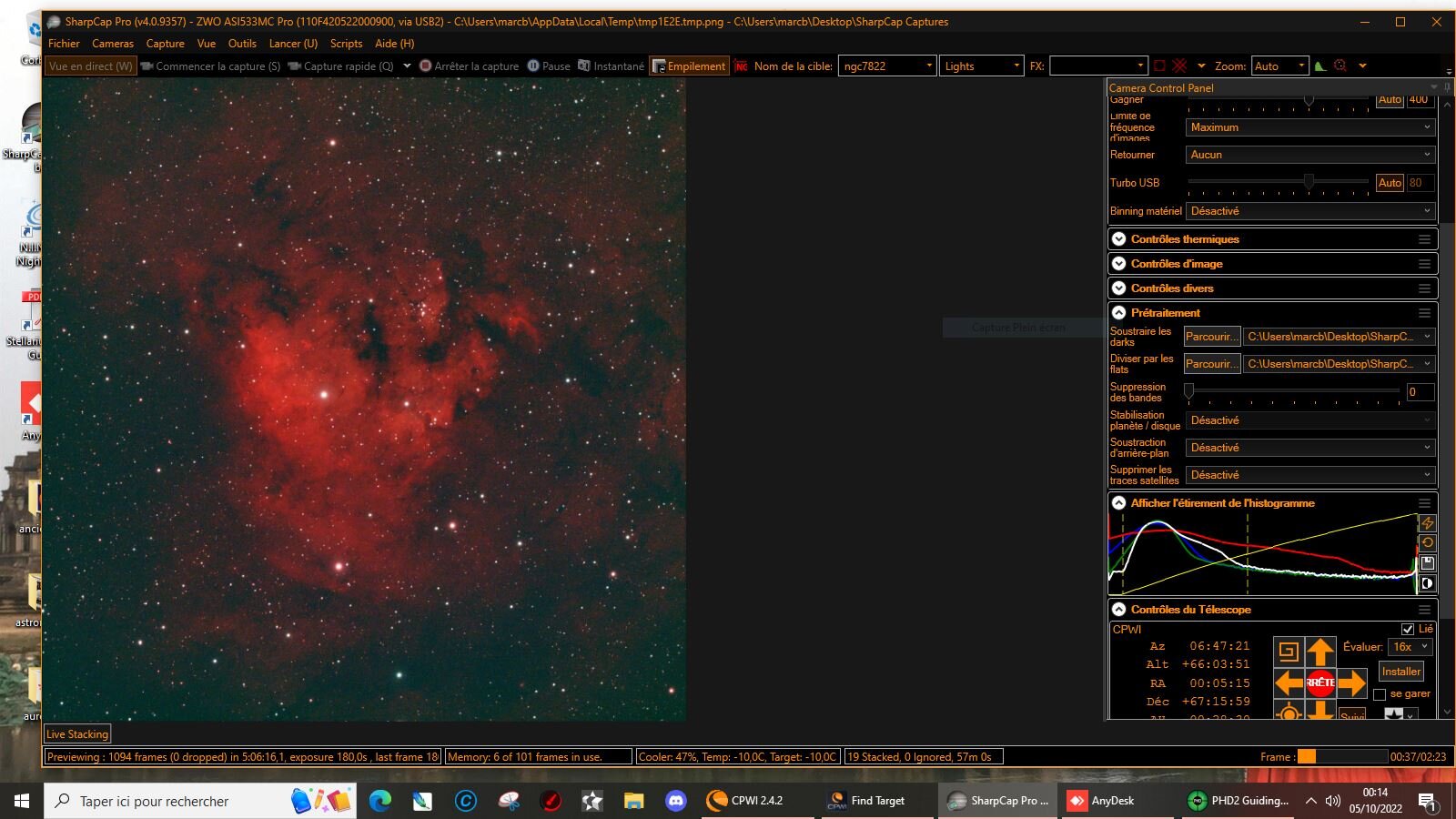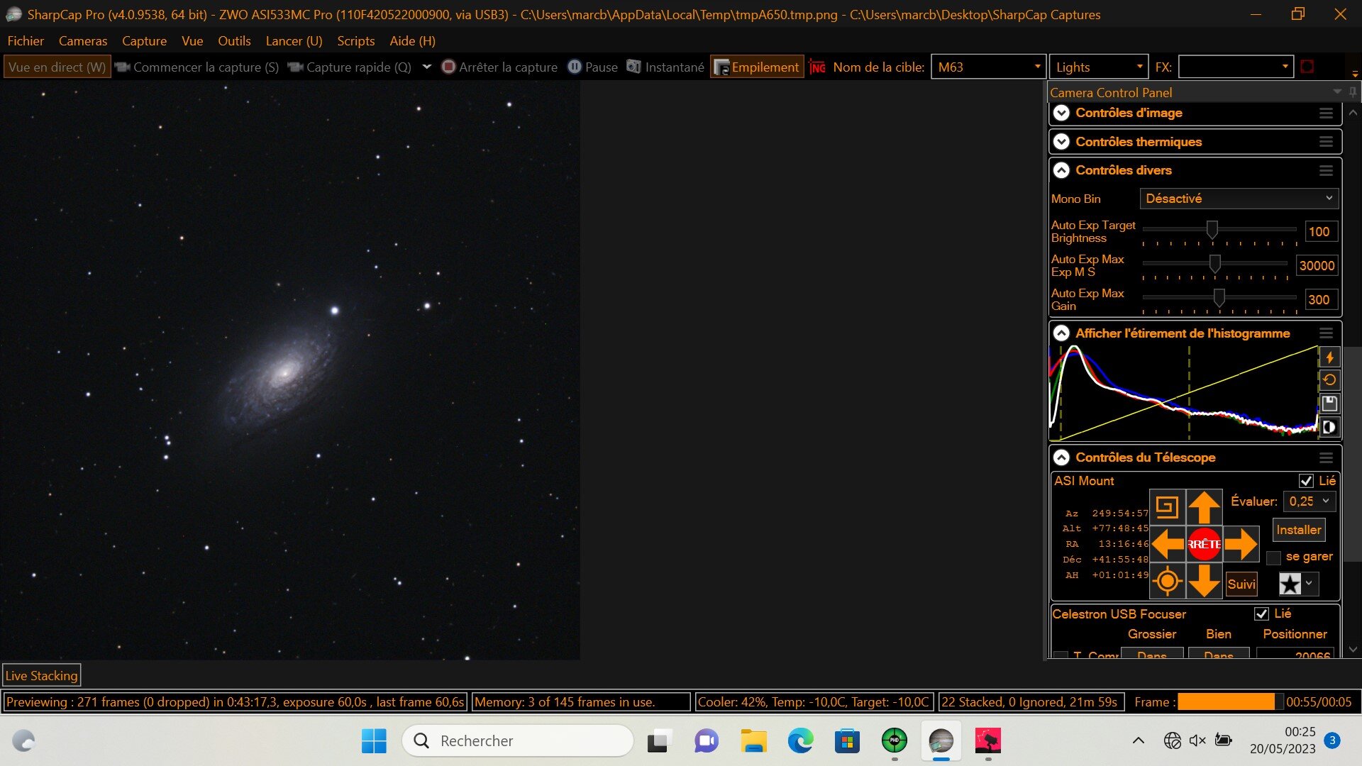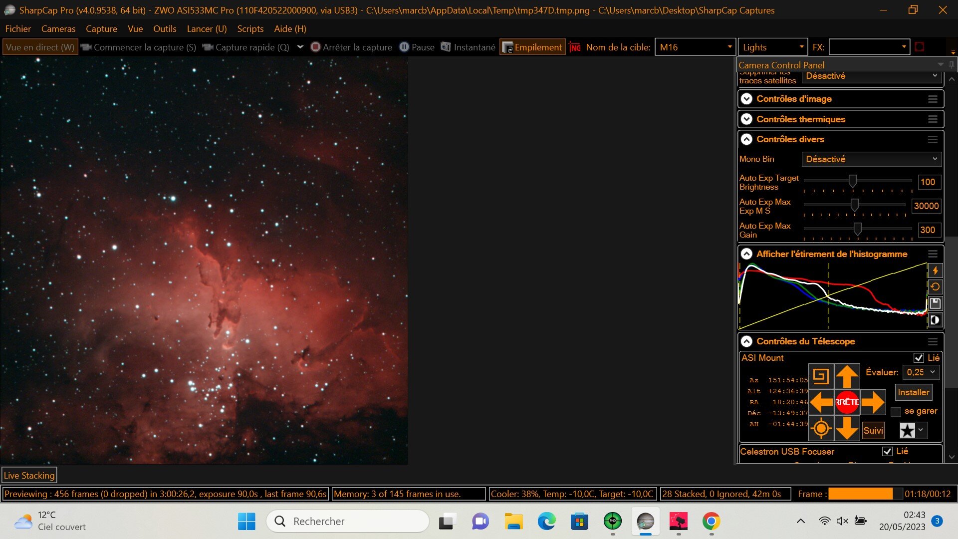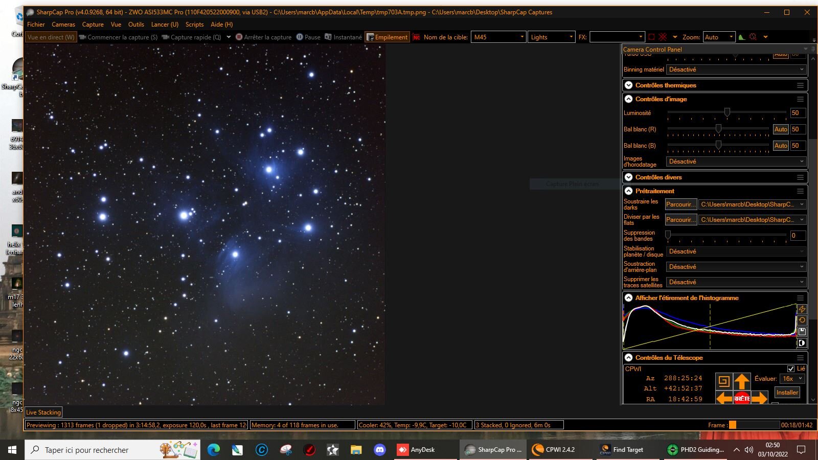 Bravo ! , j'aime beaucoup faire également du V.A avec sharpcap, d'ailleurs on peut mettre des flats et des darks assez facilement et utilisé l'analyse sensor permet aussi d'améliorer la rapporte gain/temps de pose.