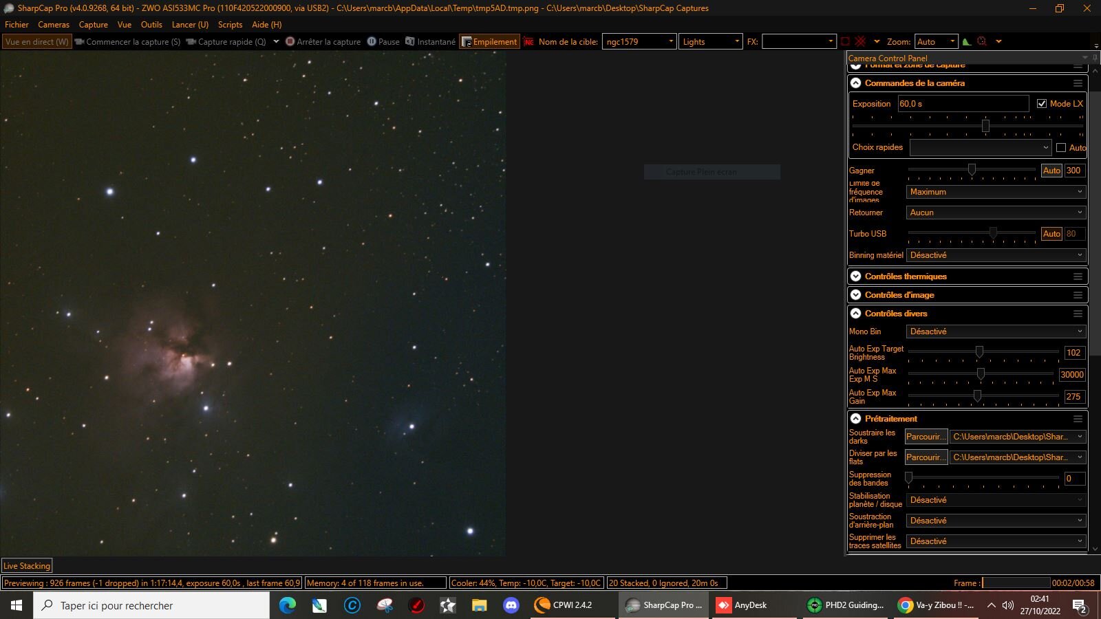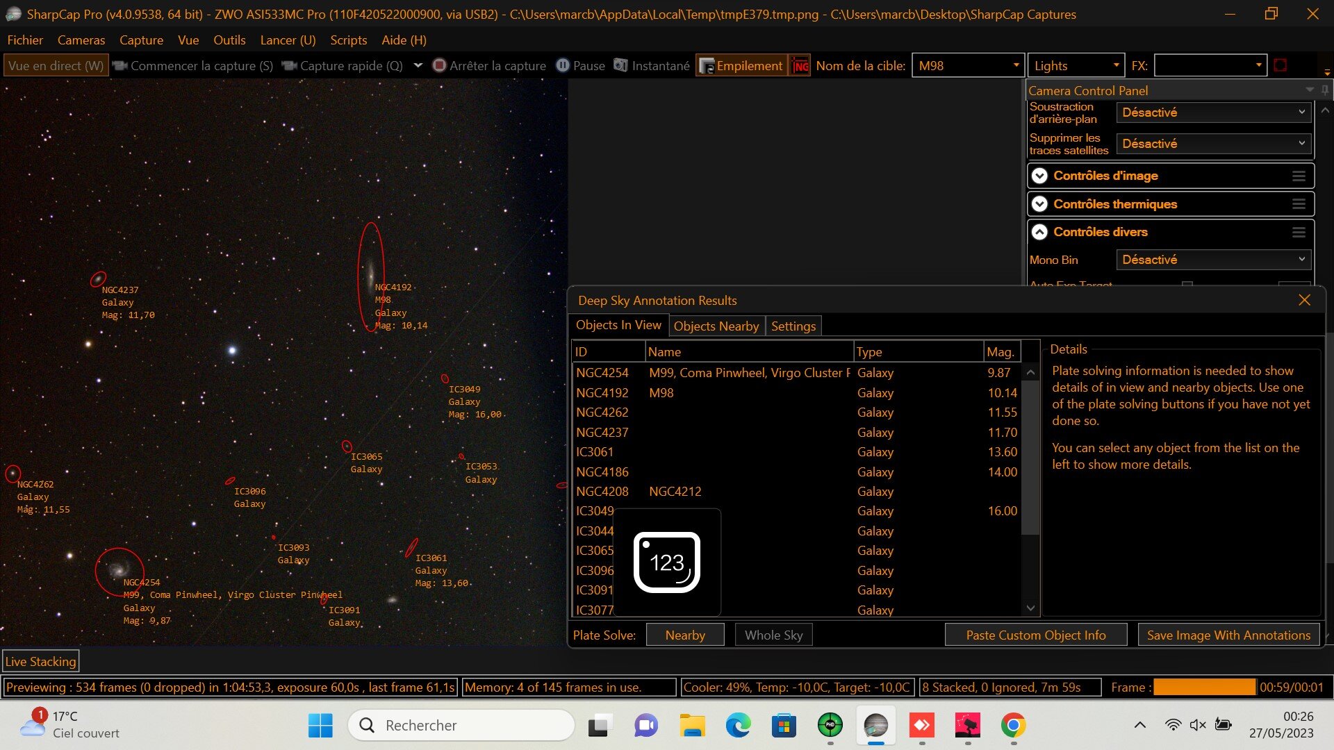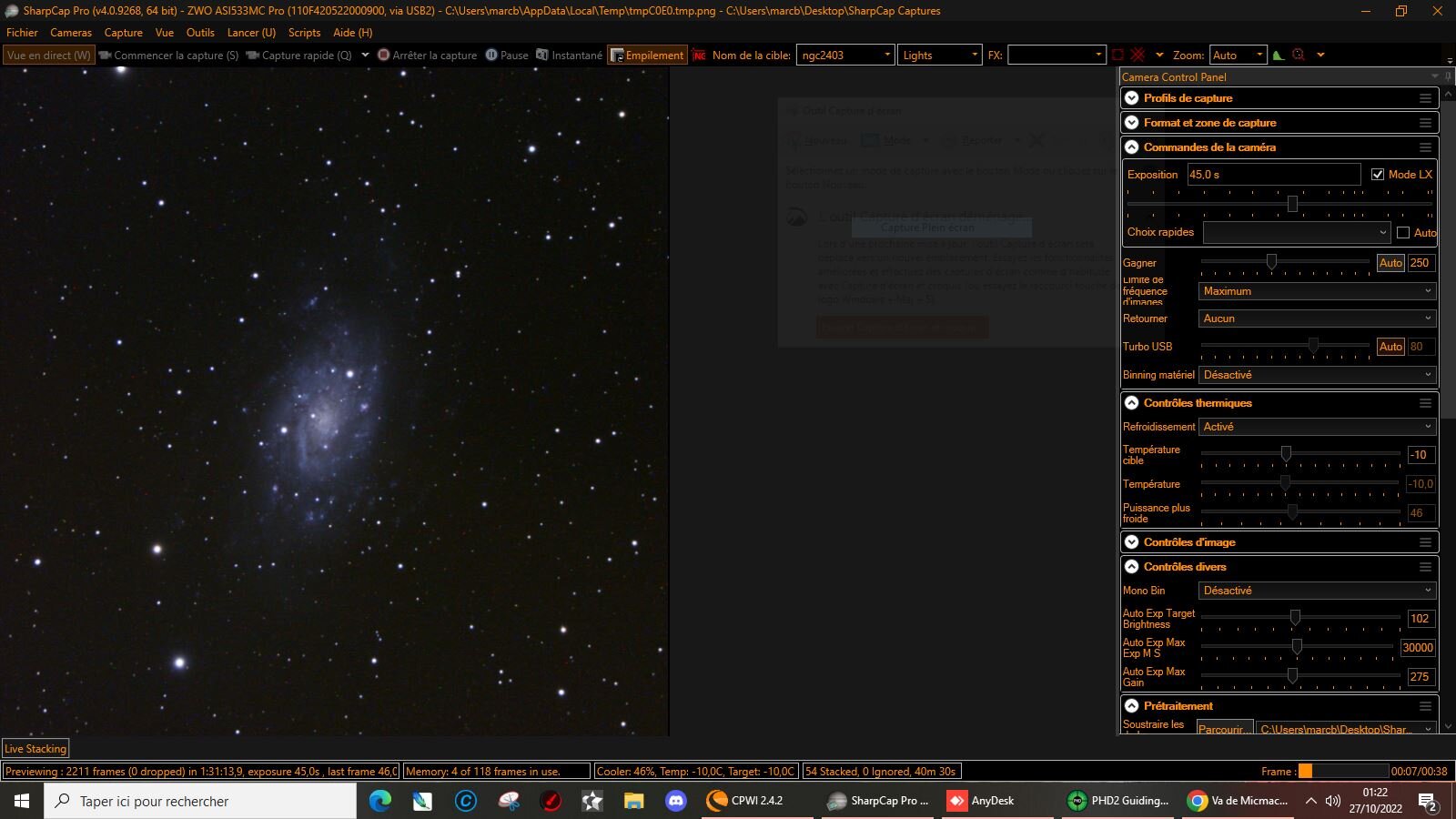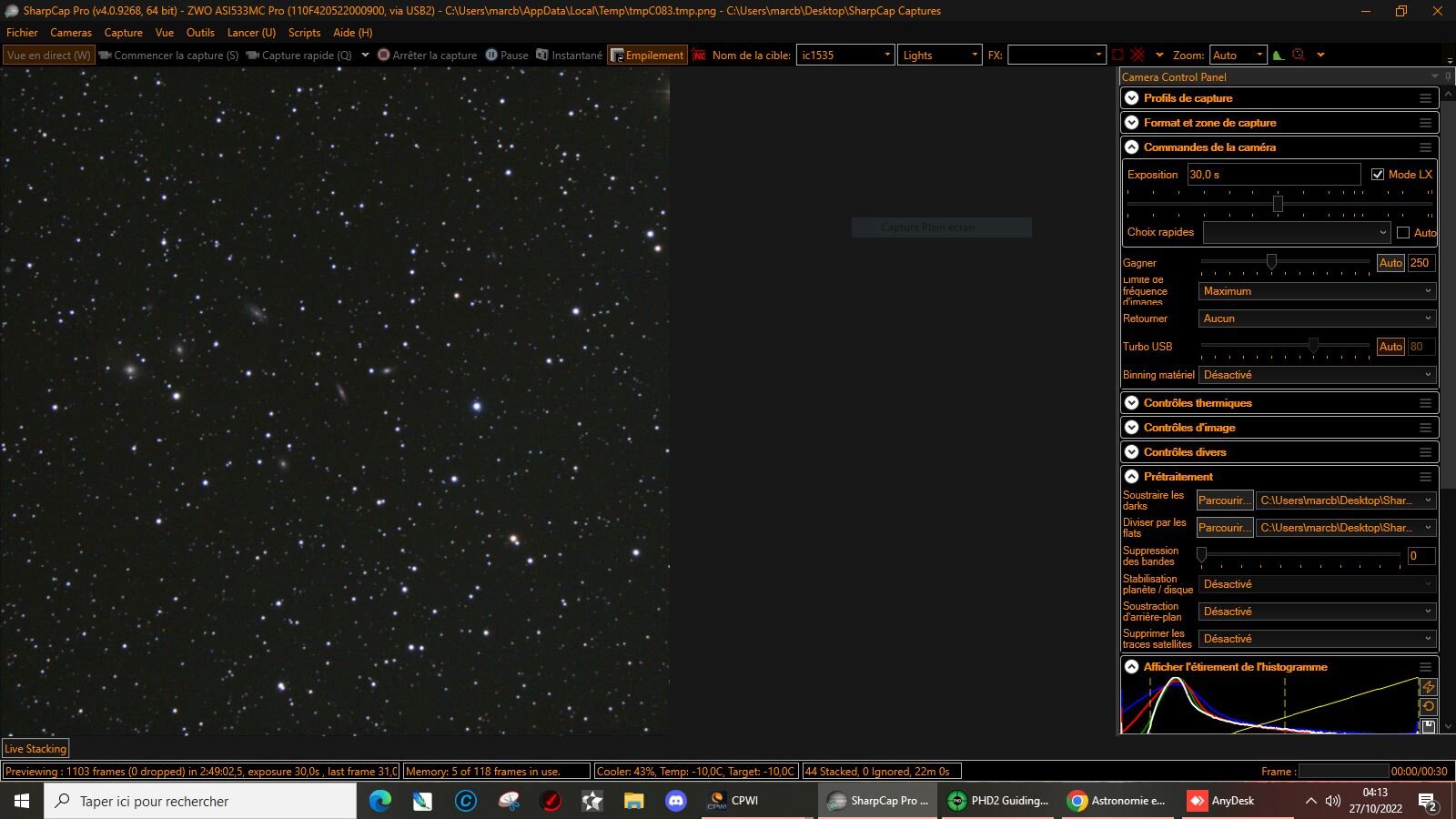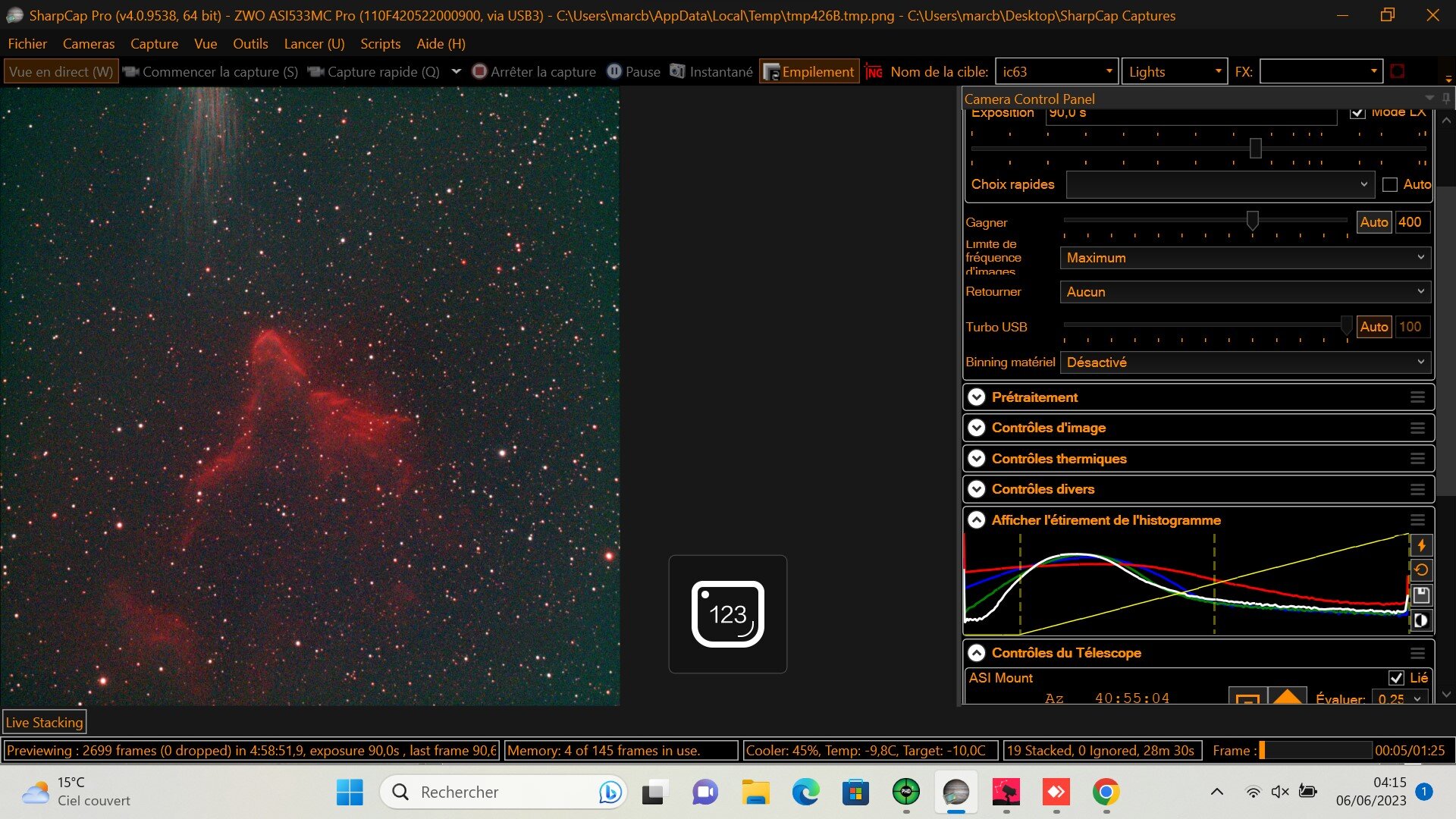 Bravo ! , j'aime beaucoup faire également du V.A avec sharpcap, d'ailleurs on peut mettre des flats et des darks assez facilement et utilisé l'analyse sensor permet aussi d'améliorer la rapporte gain/temps de pose.