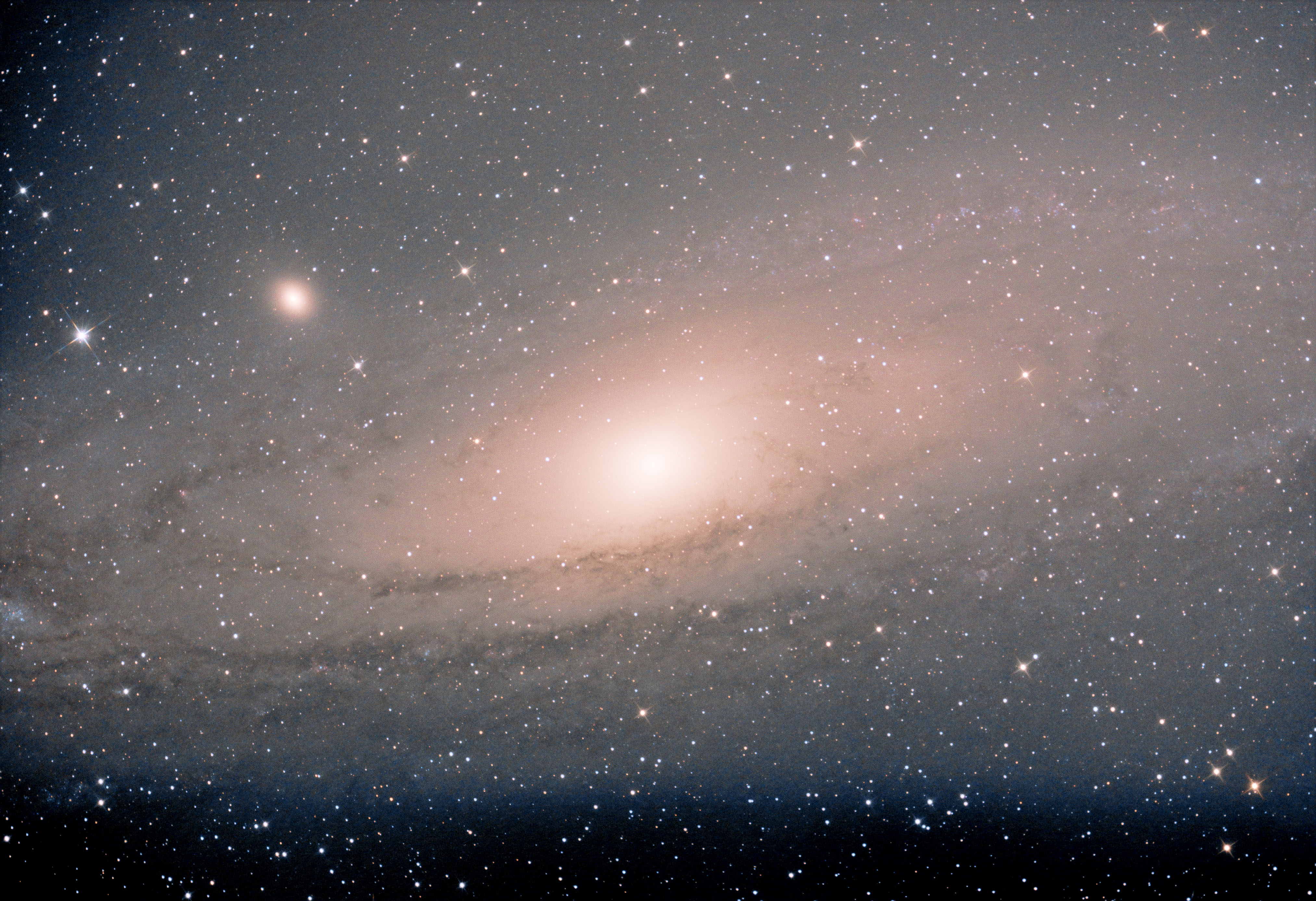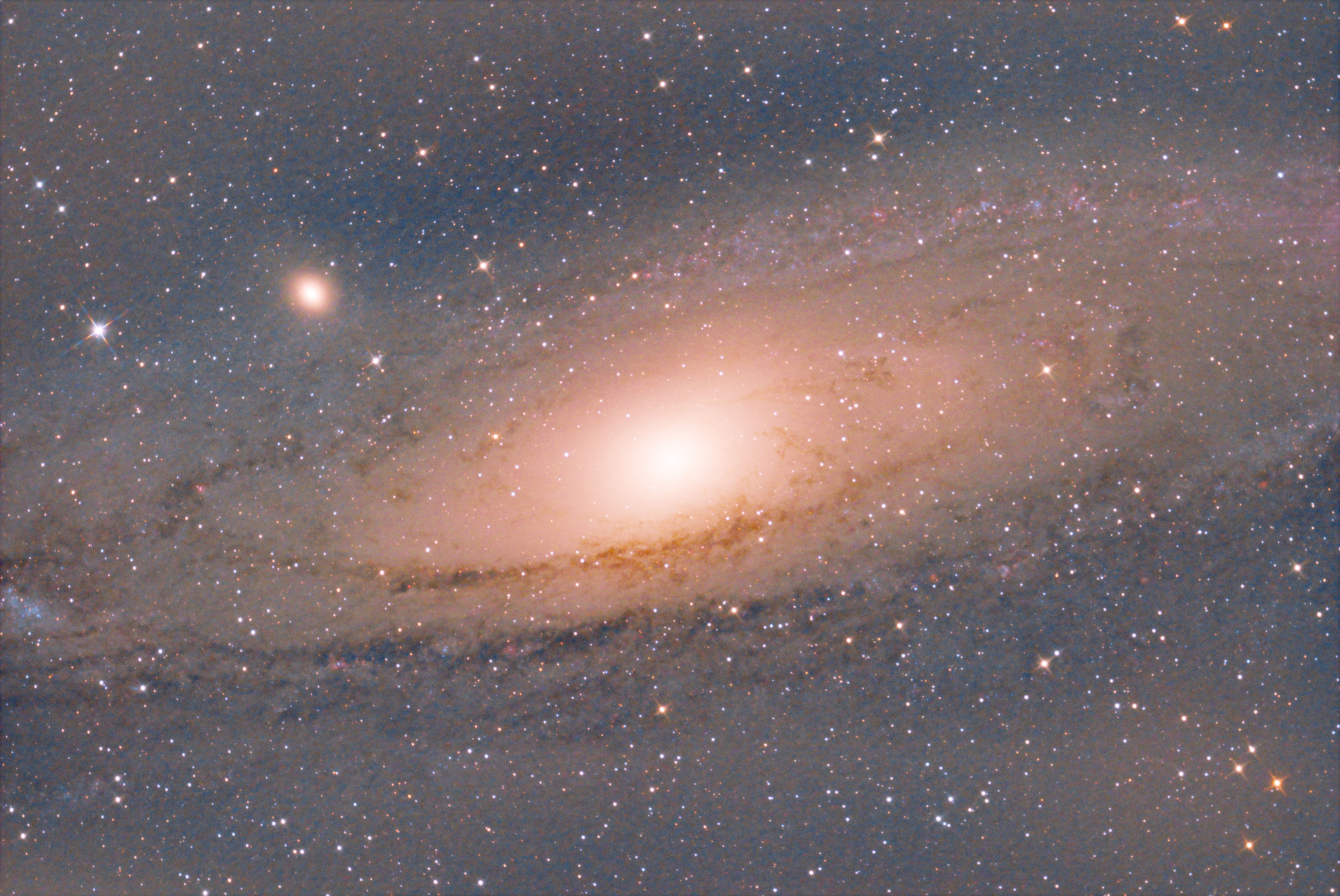 Phil49 Posté 10 janvier 2021 Auteur Posté 10 janvier 2021 (modifié) Bonjour 6ri.l Oui, j'avais essayé en mode linéaire, mais cela ne changeait rien ! Par contre, j'ai suivi ton conseil et je suis passé à 900 de focale et c'est passé... C'est quand même bizarre cette histoire, pourquoi ne peut-il reconnaitre avec les bonnes valeurs ? J'en profite pour demander s'il est normal que M31 ne se détache pas plus du fond ? Les parties entourées en rouge ne devraient pas être plus sombres ? Philippe Edit : Je viens de terminer le traitement, de l'image en suivant le tuto de Colmic, il y a vraiment un problème... J'avais ouvert un autre post suite à des problèmes de condensation à priori sur l capteur de ma camera ou sur le filtre, or là, j'ai utilisé un collier chauffant emmitouflant le porte filtre et l'avant de la camera, ce qui normalement doit assurer une température suffisante pour empêcher la condensation. Mon télescope est bien isolé aussi. Mais sur la photo ci-dessous, je ne comprends pas le manque de séparation de M31 avec le ciel profond et surtout cette bande noire en -dessous... La même avec le script sans DOF, il y a quand même quelque chose dans les DOF qui entraine une différence... : Modifié 10 janvier 2021 par Phil49
