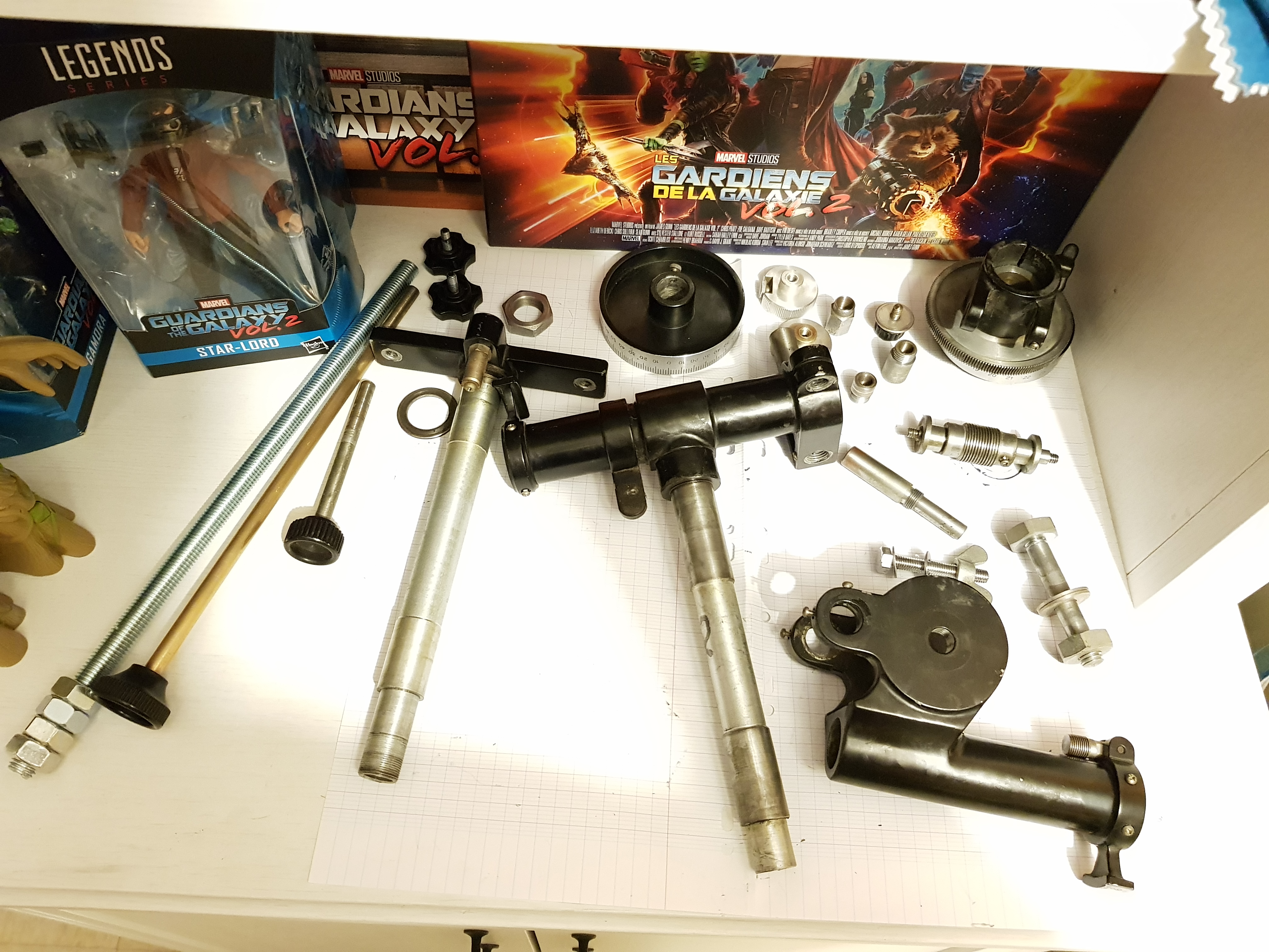 Jorris Posté 11 février 2021 Auteur Posté 11 février 2021 Demontage de la monture J'ai toutes les petites visses à gratter, elle sont rouillées, mais ça se rattrape bien. Je vais brosser certaines parties métalliques, pour faire apparaître la couleur du laiton (faudra que je trouve un vernis de protection contre l'oxydation) comme la grande manette de suivi que j'ai déjà brossé/poli. La monture, je vais la repeindre en noir mat pour faire ressortir la brillance du laiton des partie métals. Puis re graissage Le résultat devrait être chouette 2