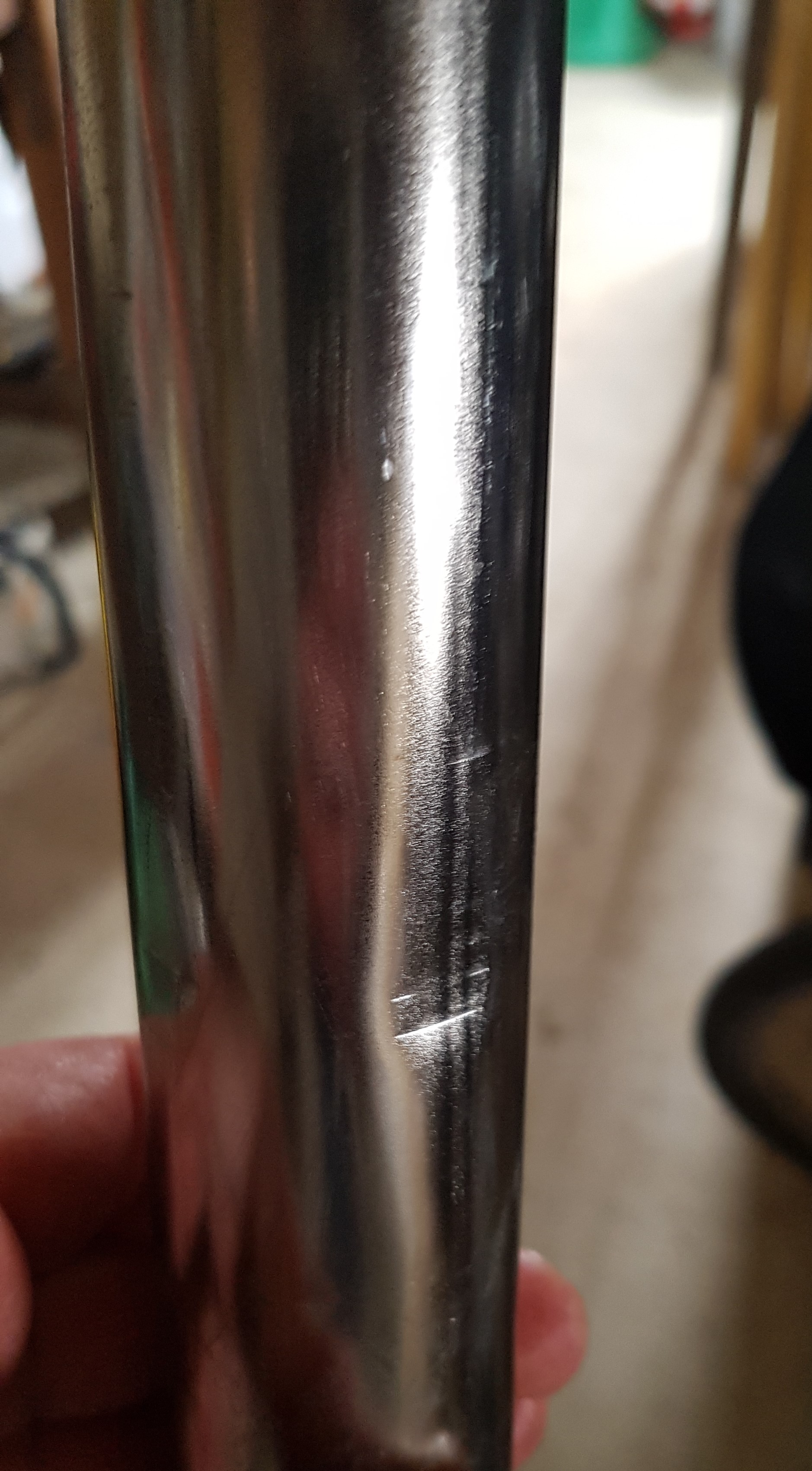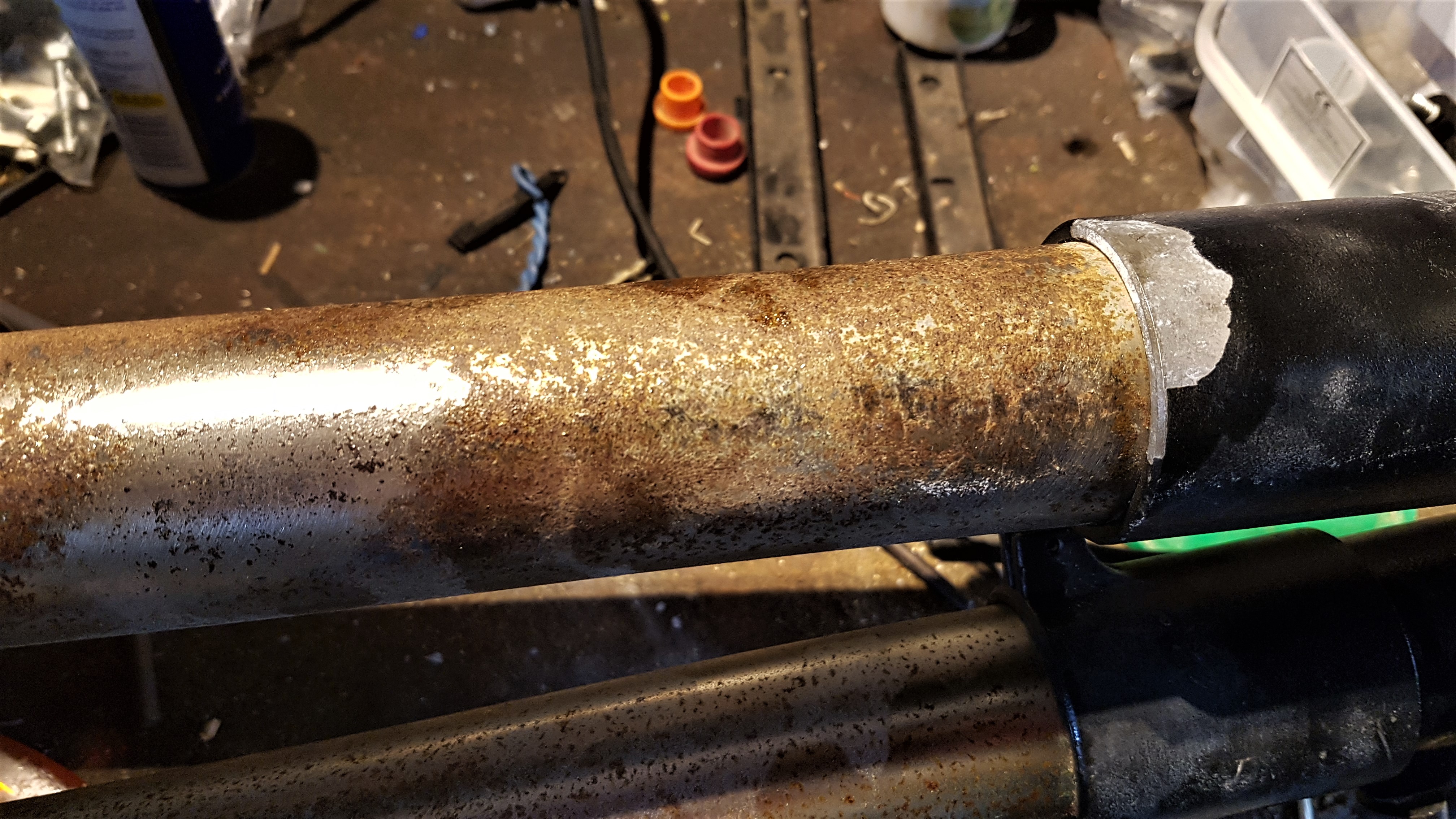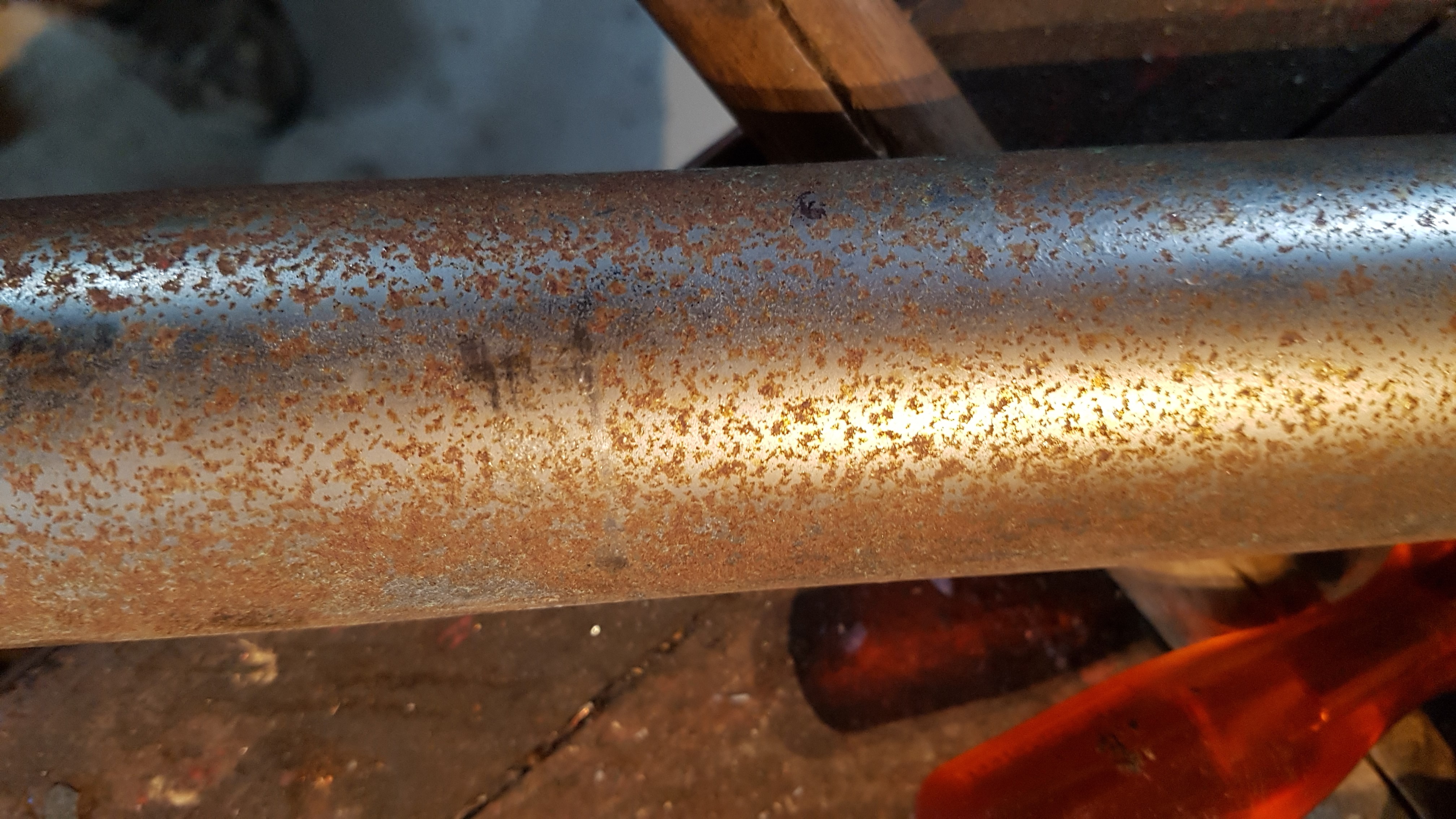 Les tubes sont tout rouillés et bien piqués. J'ai poncé le plus abimé pour voir et même si on récupère le brillant c'est attaqué assez profond par endroits. Les deux autres sont moins abimés mais c'est pas jojo quand même. J'ai trois solutions en tête, dans l'ordre de préférence :