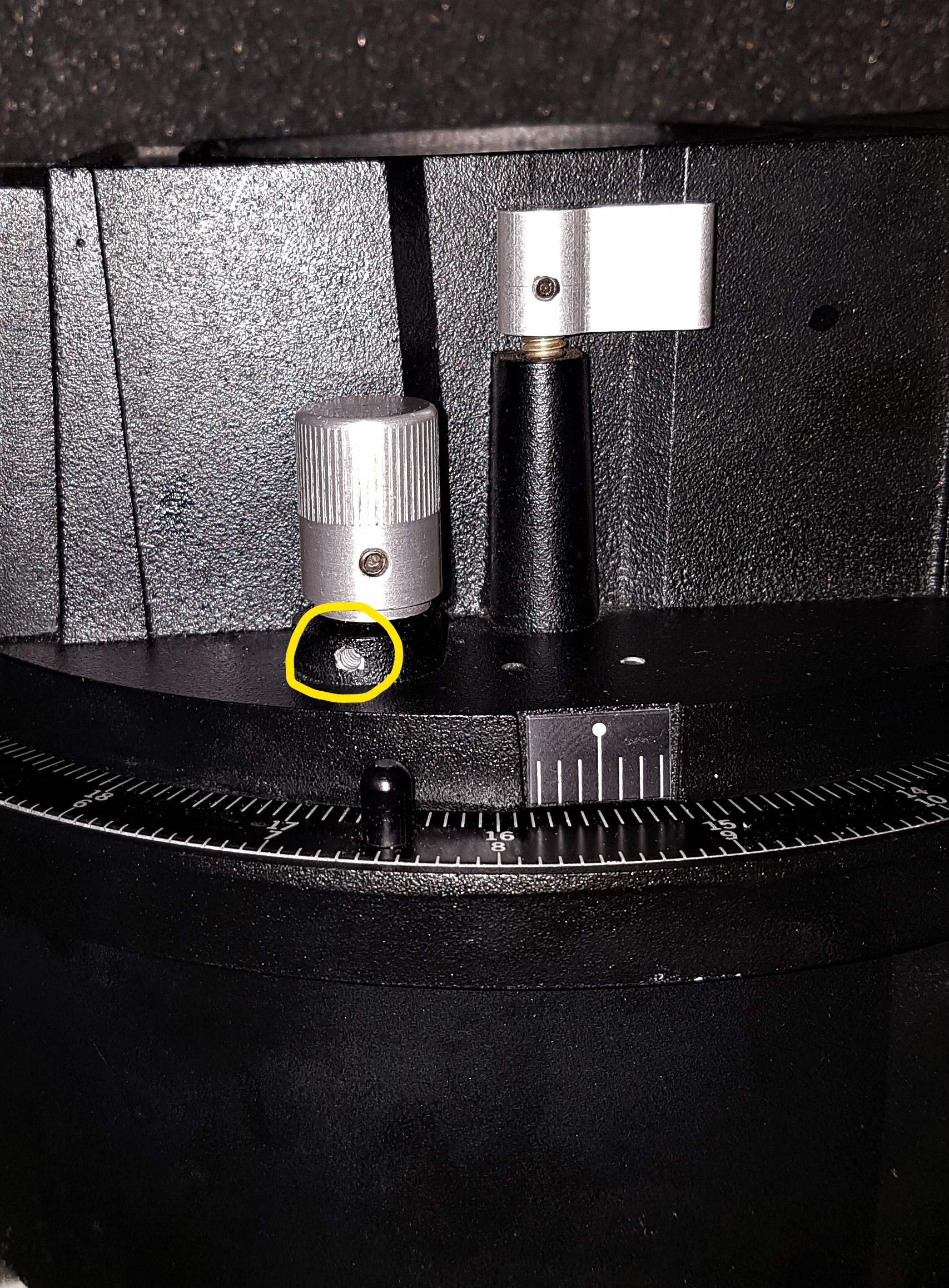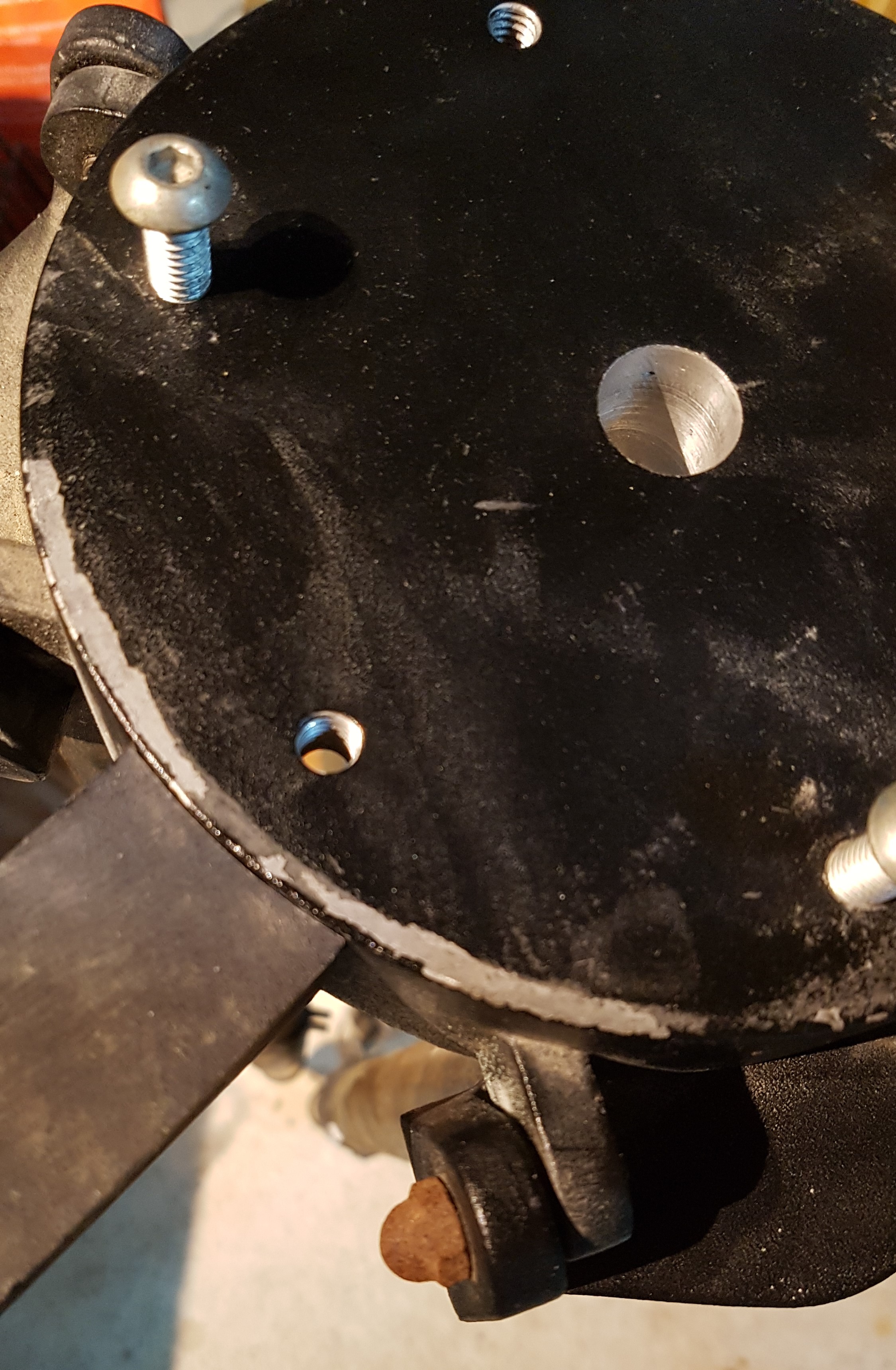Malheureusement j'ai perdu les 3 boulons de liaisons entre la base de la monture et le support de la plaque équatoriale.