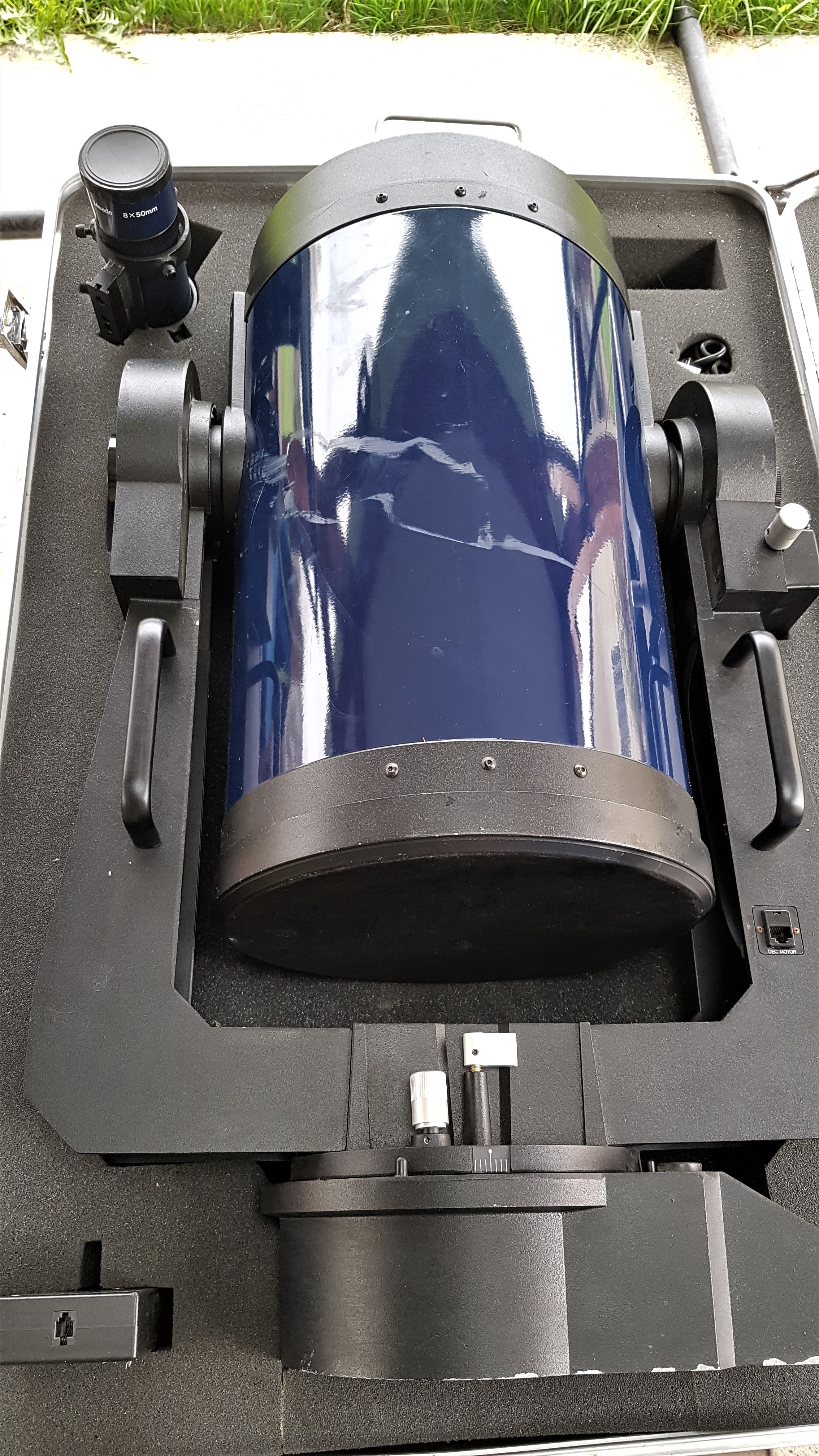 Il est complet, la motorisation fonctionne très bien ainsi que les commandes électroniques. L'optique semble ok (miroir primaire très propre) mais reste à tester et la lame de Schmidt est sale en surface extérieure.