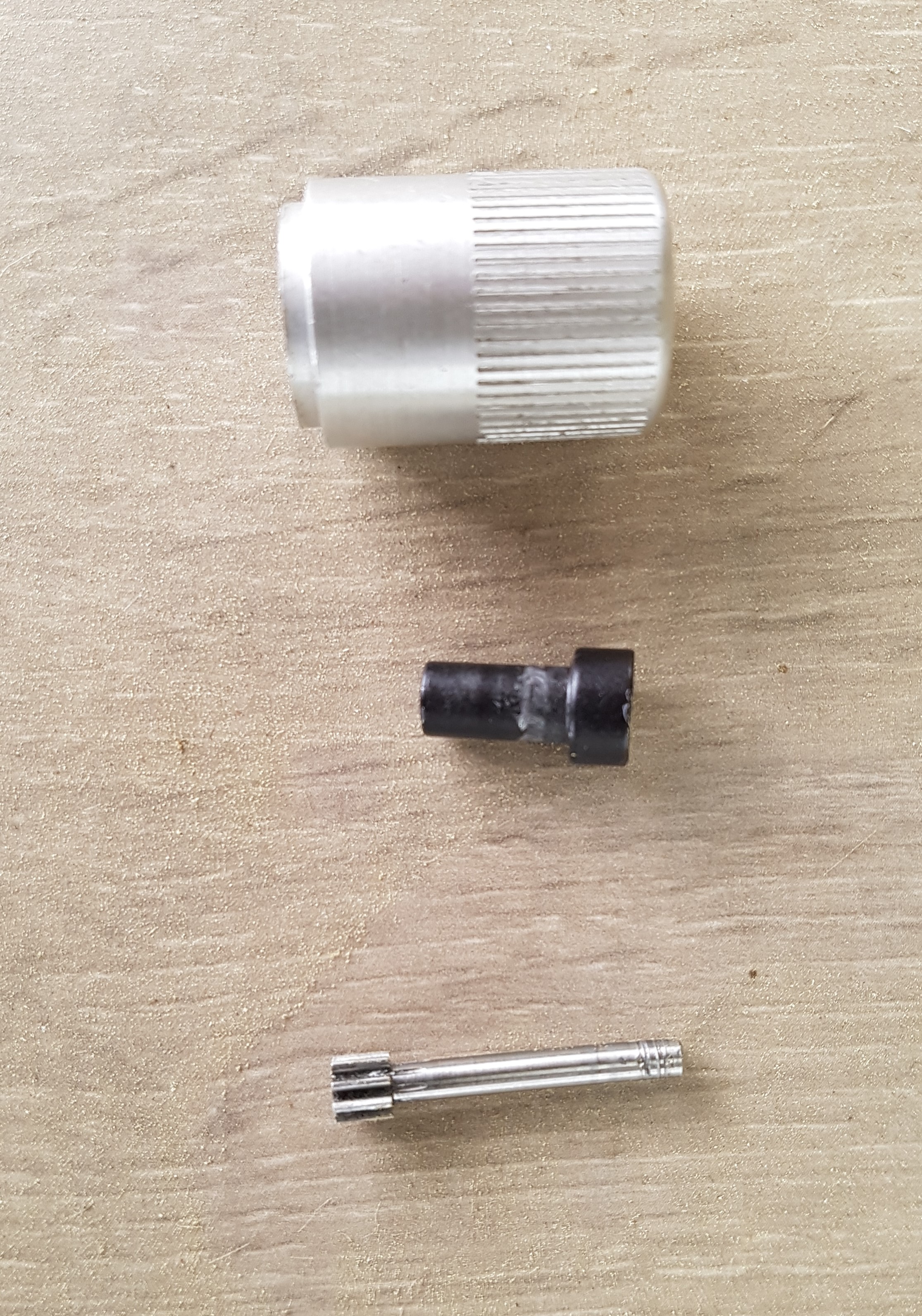 Et donc, le jeu se règle en faisant tourner cette pièce en plastique dans son trou support. Cela permet ainsi de rapprocher ou éloigner le petit cardan.