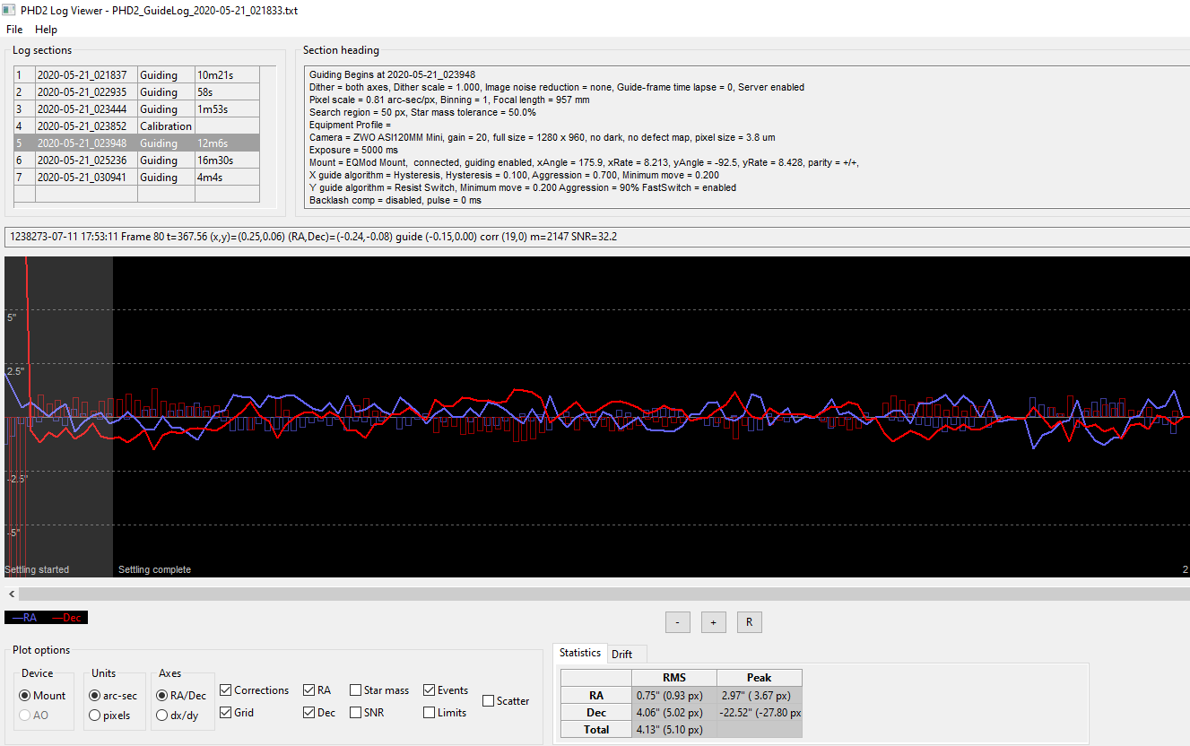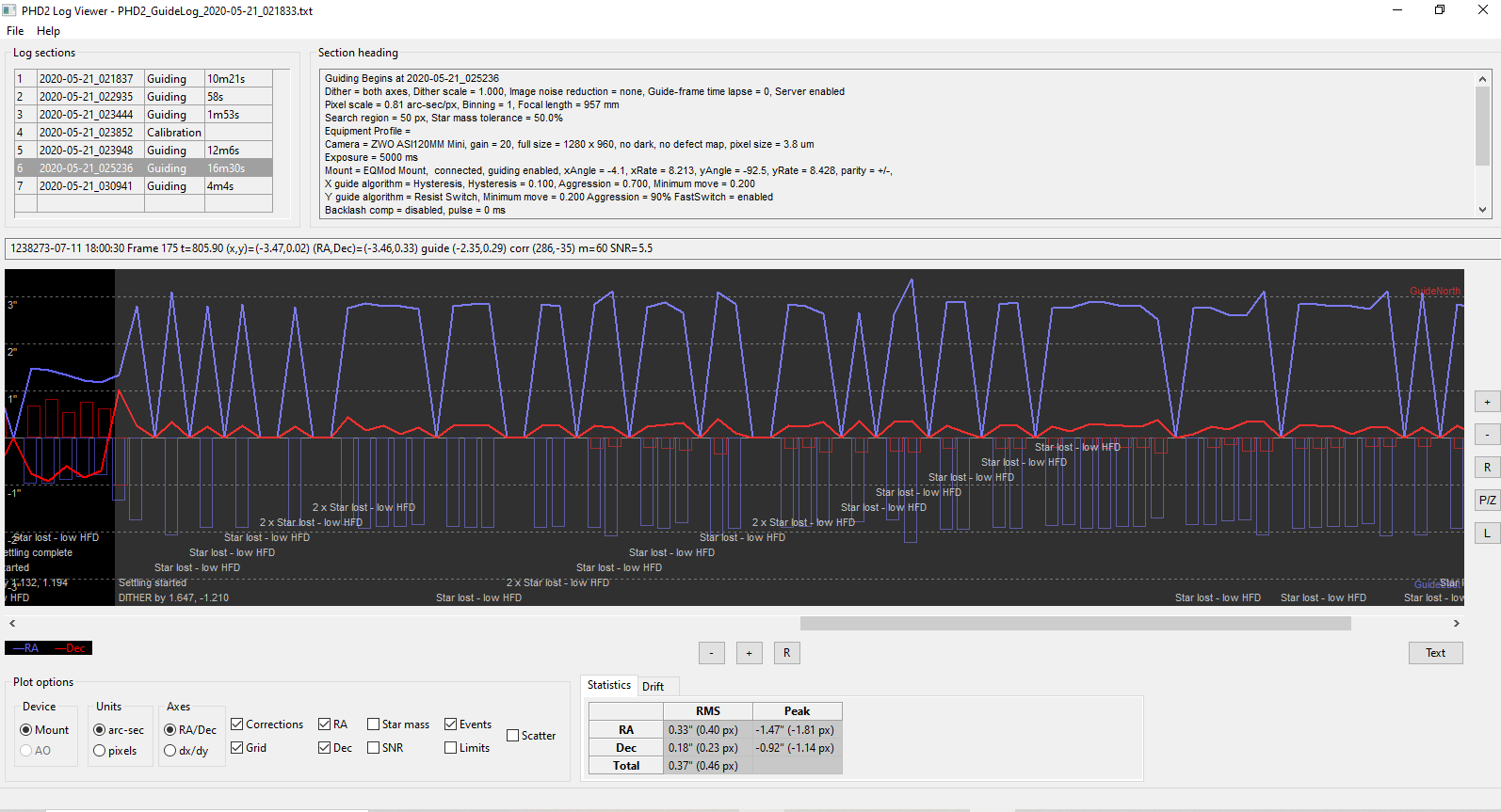 Pour les réglages de calibration, le RA et DEC max duration, idem j'ai rien touché.