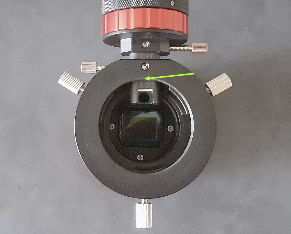 Du coup il faut regarder non pas au centre mais au niveau du cercle extérieur M48 et à peu près à la distance où se trouverait le correcteur pour voir si le prisme passe devant le capteur ou pas :
