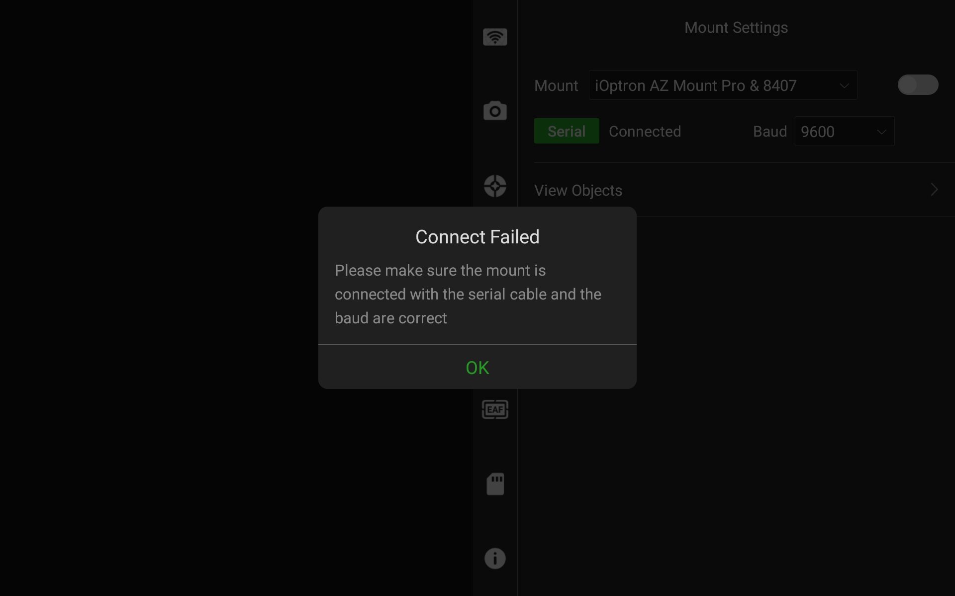 Bonjour. J'ai donc branché mon azmountpro à l'asiair ce jour (oui, jusqu'à présent je m'étais servi de l'azeq6) avec le câble cette fois ci, mais l'AAP ne veut pas détecter la monture :